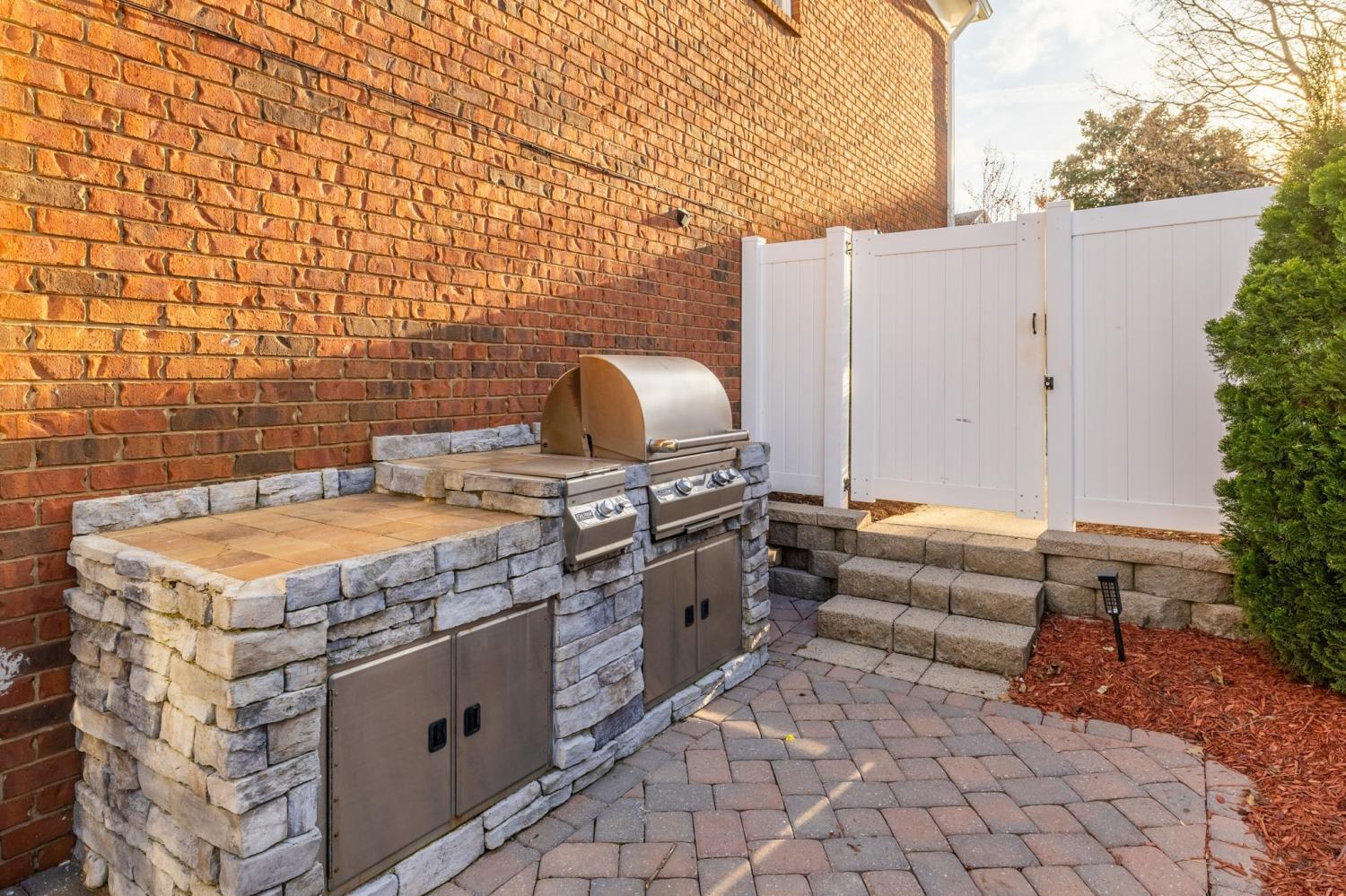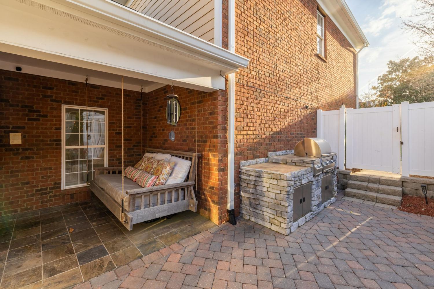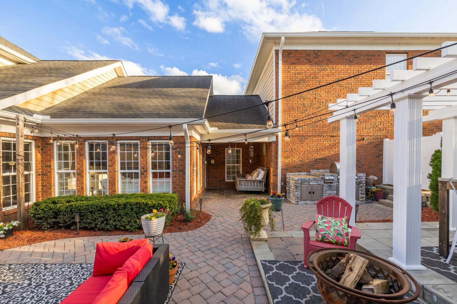 NEW PRICE/RARE OPPORTUNITY in the highly sought-after gated community of Ashton Park. This charming all-brick, two-story courtyard cottage home offers timeless Southern character paired with thoughtful design and versatile living spaces. The kitchen features stainless steel appliances, tiled floors, breakfast nook and abundant cabinet storage, with the dining room conveniently located just across the hall—perfect for both everyday meals and entertaining. The home offers multiple comfortable living and entertaining spaces, including a den with a gas fireplace and a bright great room with a wall of windows that fills the space with natural light. From here, step outside to your private courtyard oasis, complete with a partially covered patio, paver hardscaping, pergola, and a built-in gas grill. It is one of the largest and prime courtyards in the community. Perfect for relaxing or entertaining guests. The primary suite features a spacious walk-in closet with custom California Closets built-ins. Upstairs, the second bedroom opens to a charming private balcony through French doors, while a third bedroom and full bath provide comfortable accommodations for family or guests. A second-level bonus room with additional California Closets custom built-ins offers flexible space for an office, or hobby area. Above the garage, a large private suite serves perfectly as a bonus room or fourth bedroom, complete with its own full bath, closet, and kitchenette area/wet bar—ideal for guests, in-laws, or extended stays. Also great for a game room/media room or even great space for a private office. The choice is yours!!! Enjoy low-maintenance living with irrigation in both the front and back yards, while the HOA covers ground maintenance for both, allowing you more time to relax and enjoy the community. Buyer or Buyer's agent to verify all pertinent information. Room sizes are approximate.