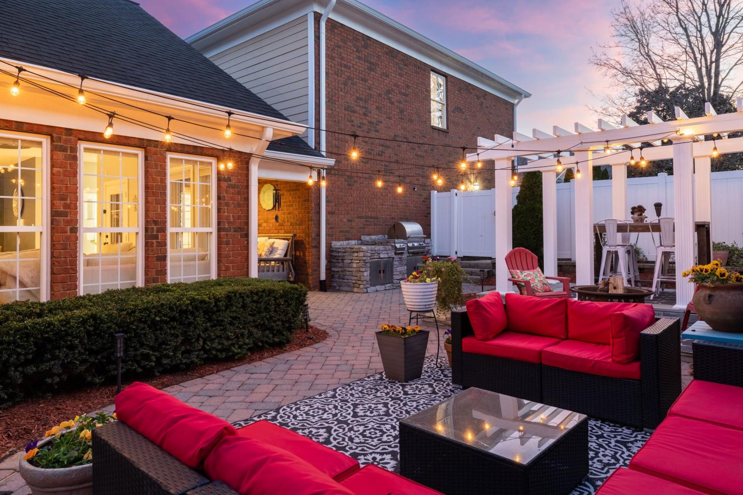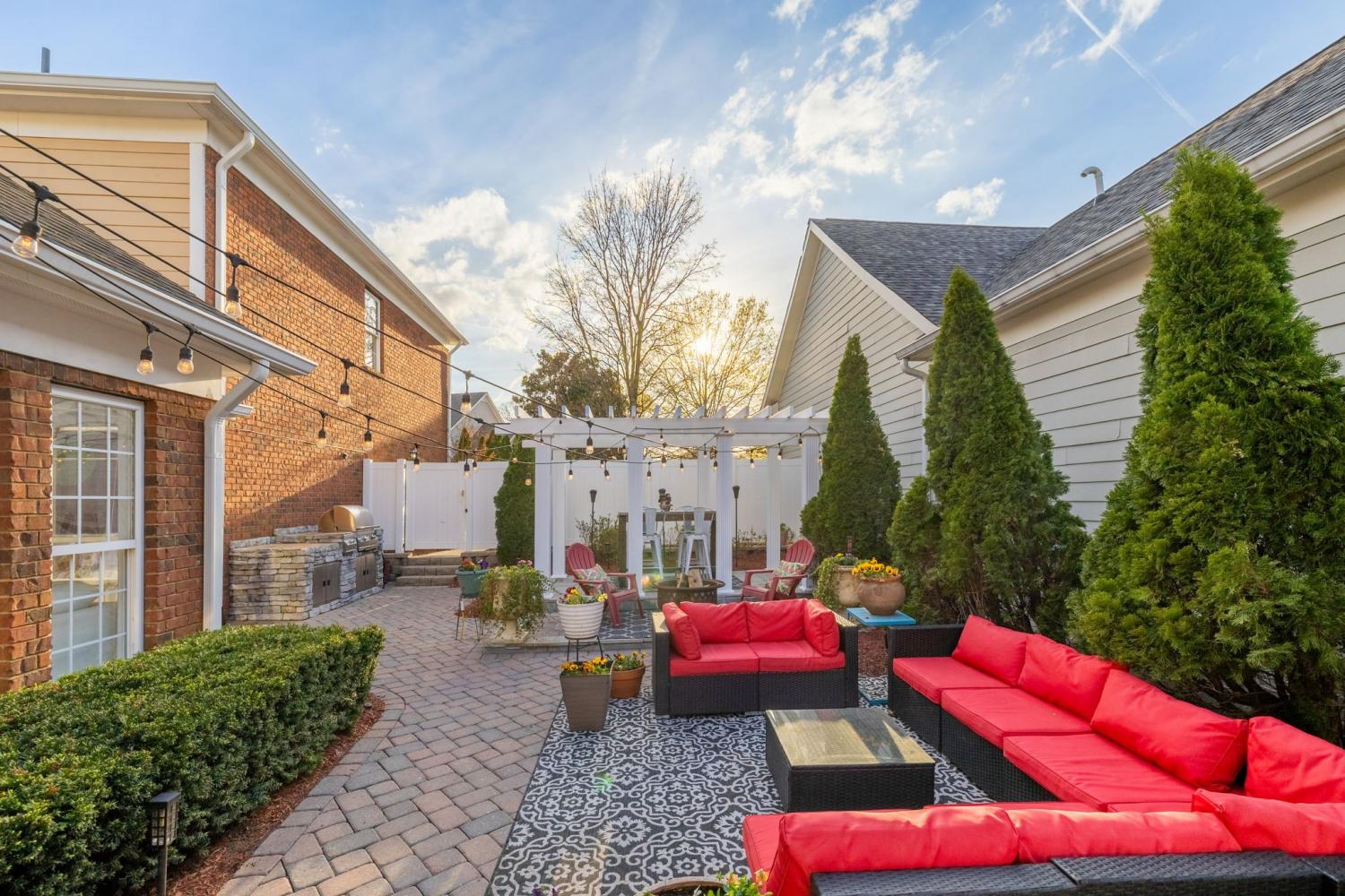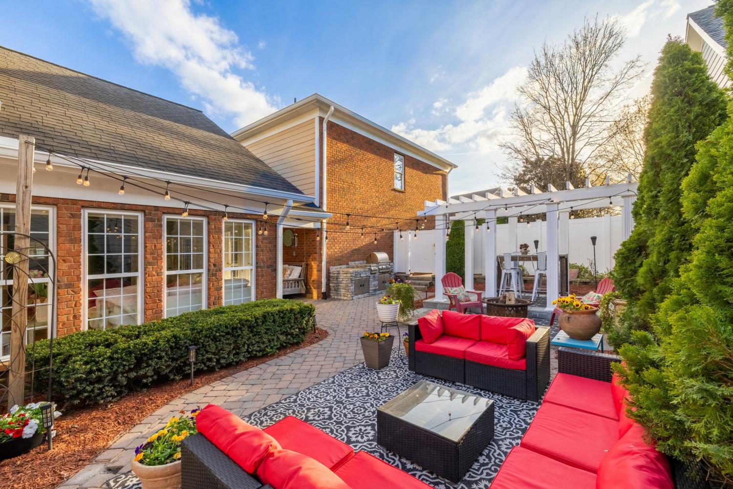 NEW PRICE/RARE OPPORTUNITY in the highly sought-after gated community of Ashton Park. This charming all-brick, two-story courtyard cottage home offers timeless Southern character paired with thoughtful design and versatile living spaces. The kitchen features stainless steel appliances, tiled floors, breakfast nook and abundant cabinet storage, with the dining room conveniently located just across the hall—perfect for both everyday meals and entertaining. The home offers multiple comfortable living and entertaining spaces, including a den with a gas fireplace and a bright great room with a wall of windows that fills the space with natural light. From here, step outside to your private courtyard oasis, complete with a partially covered patio, paver hardscaping, pergola, and a built-in gas grill. It is one of the largest and prime courtyards in the community. Perfect for relaxing or entertaining guests. The primary suite features a spacious walk-in closet with custom California Closets built-ins. Upstairs, the second bedroom opens to a charming private balcony through French doors, while a third bedroom and full bath provide comfortable accommodations for family or guests. A second-level bonus room with additional California Closets custom built-ins offers flexible space for an office, or hobby area. Above the garage, a large private suite serves perfectly as a bonus room or fourth bedroom, complete with its own full bath, closet, and kitchenette area/wet bar—ideal for guests, in-laws, or extended stays. Also great for a game room/media room or even great space for a private office. The choice is yours!!! Enjoy low-maintenance living with irrigation in both the front and back yards, while the HOA covers ground maintenance for both, allowing you more time to relax and enjoy the community. Buyer or Buyer's agent to verify all pertinent information. Room sizes are approximate.