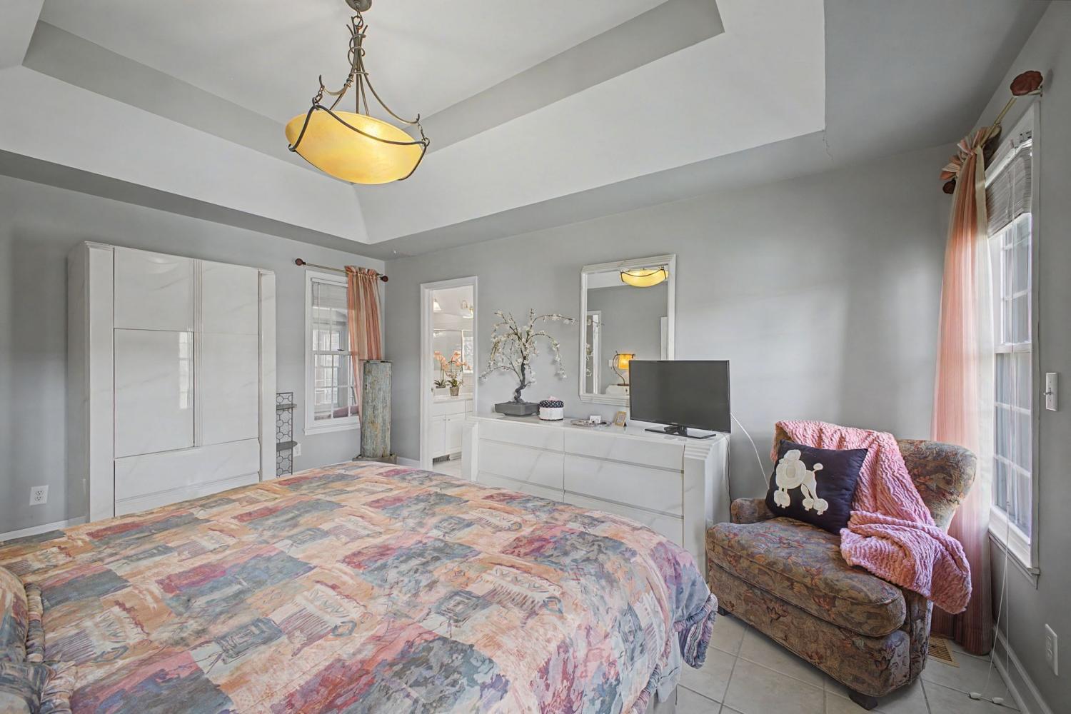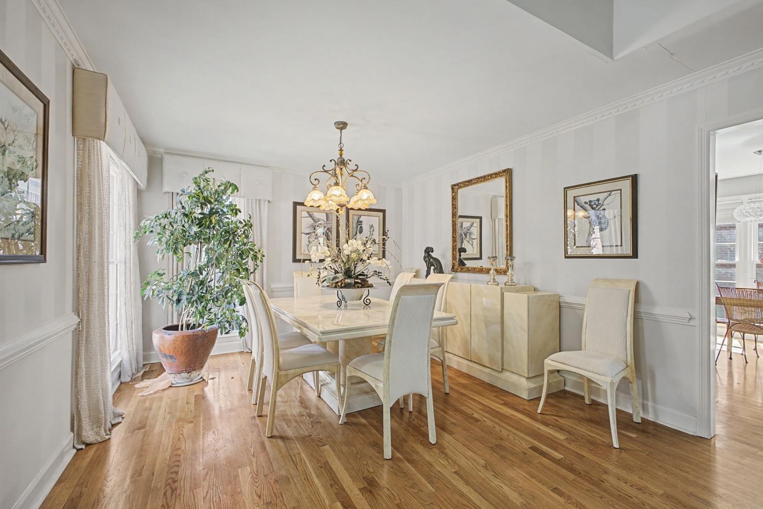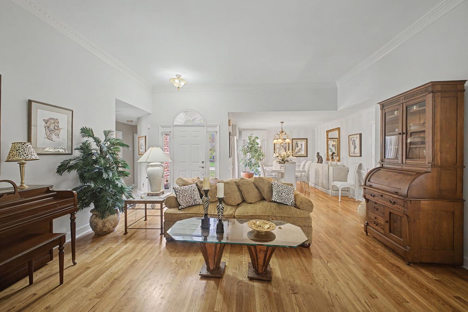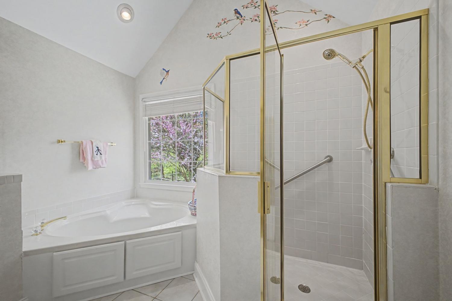 Welcome to your new home. Featuring all three bedrooms on the main level, this thoughtfully designed brick home offers comfort and convenience for families at any stage. The spacious kitchen opens to a vaulted main living area, creating an inviting space for everyday living and entertaining. Additional highlights include a large garage and a separate dining room. Inside, you’ll find vaulted ceilings, hardwood floors, abundant natural light, and charm throughout. The primary suite features a spacious bathroom with a jacuzzi tub, glass shower, and walk-in closet. Step outside to enjoy the large screened-in back porch with ceiling fans, perfect for year-round relaxation. The peaceful backyard is shaded by a canopy of mature trees and includes a patio ideal for grilling. A gentle creek runs along the property line, providing a tranquil setting to enjoy your morning coffee or unwind at sunset.