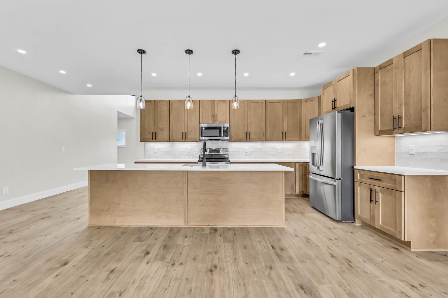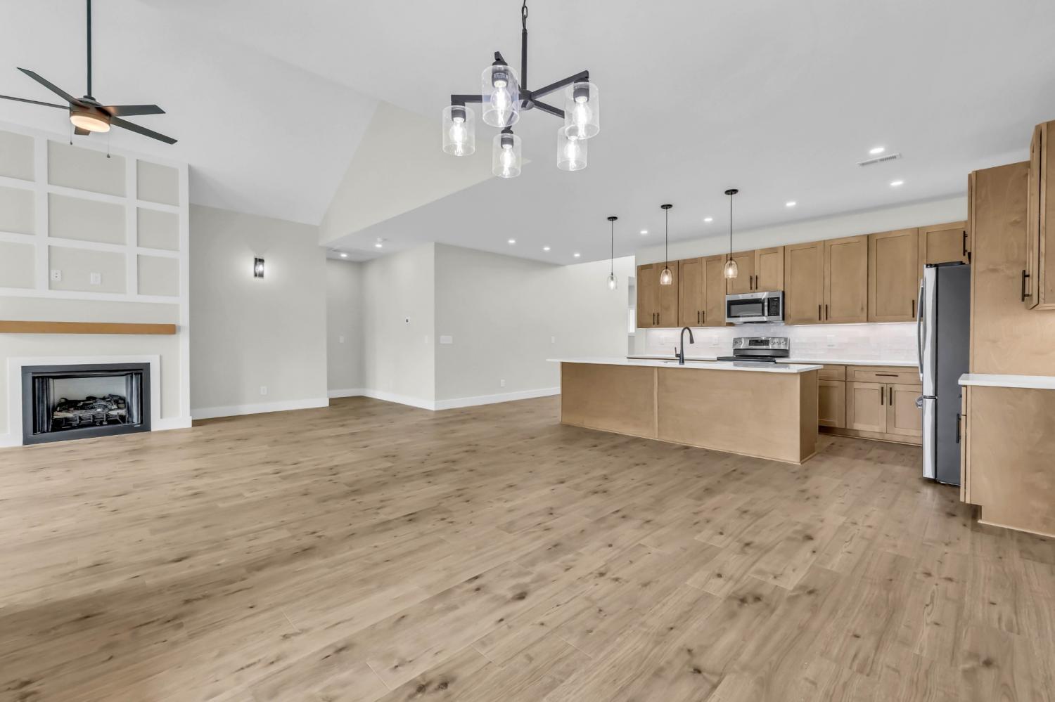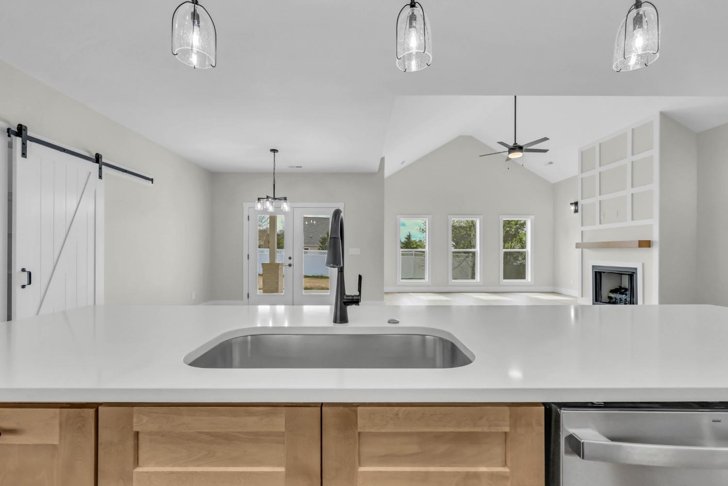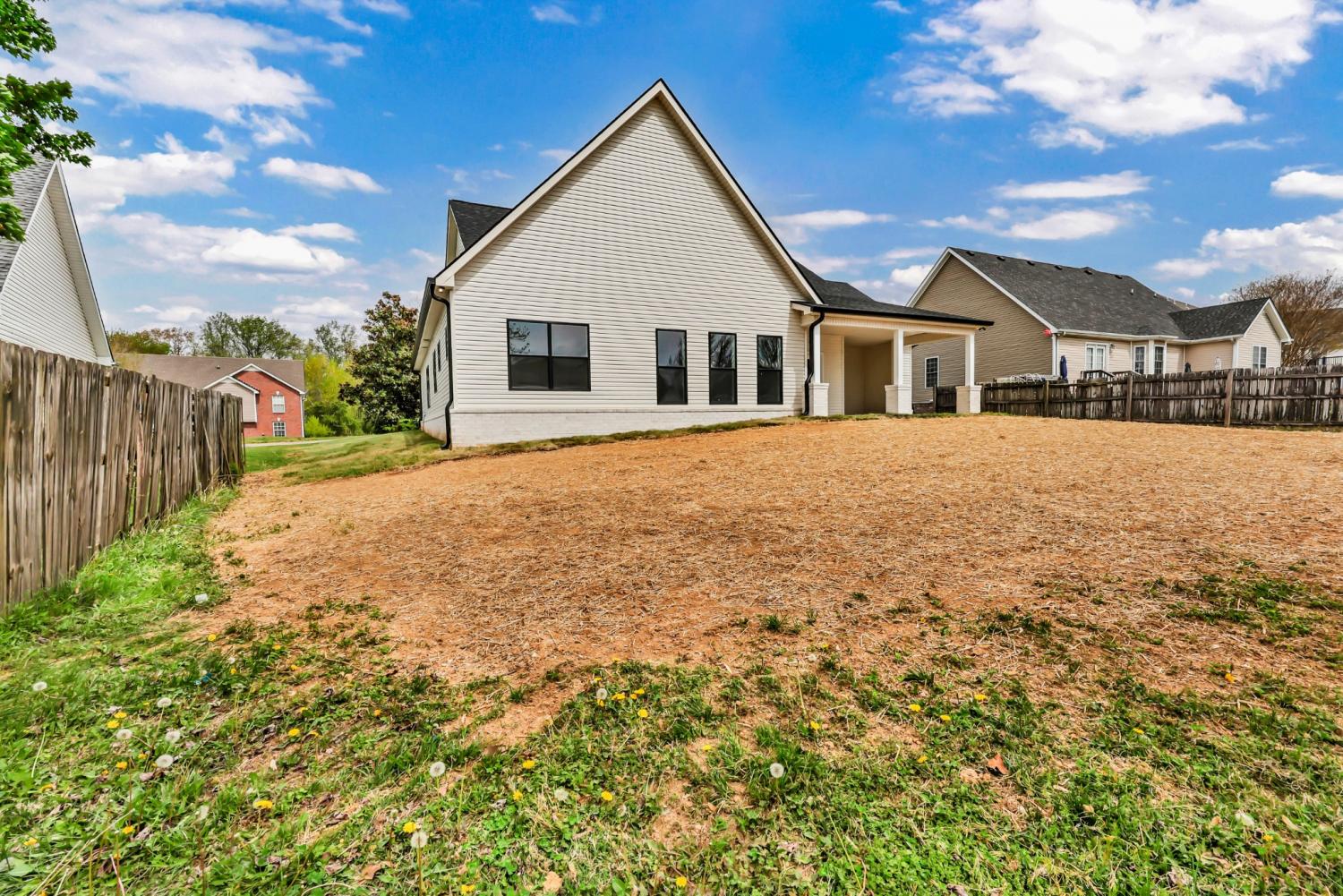 Location, location, location—this one puts you right in the heart of Sango, new construction tucked inside an established neighborhood. This home offers the best of both worlds: modern finishes and design without sacrificing the convenience and charm of a well-established area. Step inside to a bright, open living space where a vaulted ceiling, LVP flooring, and a cozy fireplace create a welcoming focal point that flows seamlessly into the kitchen. Designed for both everyday living and entertaining, the kitchen features quartz countertops, an island with bar seating and pendant lighting, double oven range, and a spacious pantry with a modern sliding barn door to keep everything organized and within reach. The primary suite continues the elevated feel with its own vaulted ceiling and a well-appointed bath complete with a double vanity, walk-in shower, and a separate soaking tub—perfect for unwinding at the end of the day. Two additional bedrooms and a total of 2.5 baths provide a functional layout for family or guests. Thoughtful details set this home apart, including not one but two drop zones—one at the spacious 2-story foyer and another off the laundry—making it easy to keep life organized as you come and go. Out back, enjoy a covered porch that extends your living space outdoors—ideal for relaxing or entertaining—overlooking a partially fenced backyard that offers both privacy and flexibility for pets, play, or future customization. New construction in Sango, in an established neighborhood, with this level of finish and functionality—this is the kind of opportunity buyers wait for.