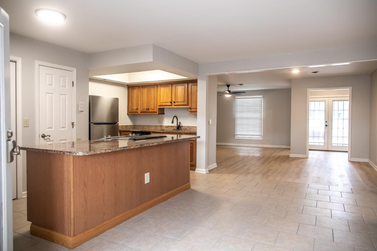 This single-story brick end unit offers a seamless move-in experience with its functional open floor plan. The interior is highlighted by a spacious living area, walk-in closets, and a kitchen equipped with a new refrigerator. Outside, enjoy a private patio space perfect for relaxation, plus the added convenience of a two-car attached carport with extra storage. Residents also have access to community amenities including a clubhouse, tennis courts, and an in-ground pool.