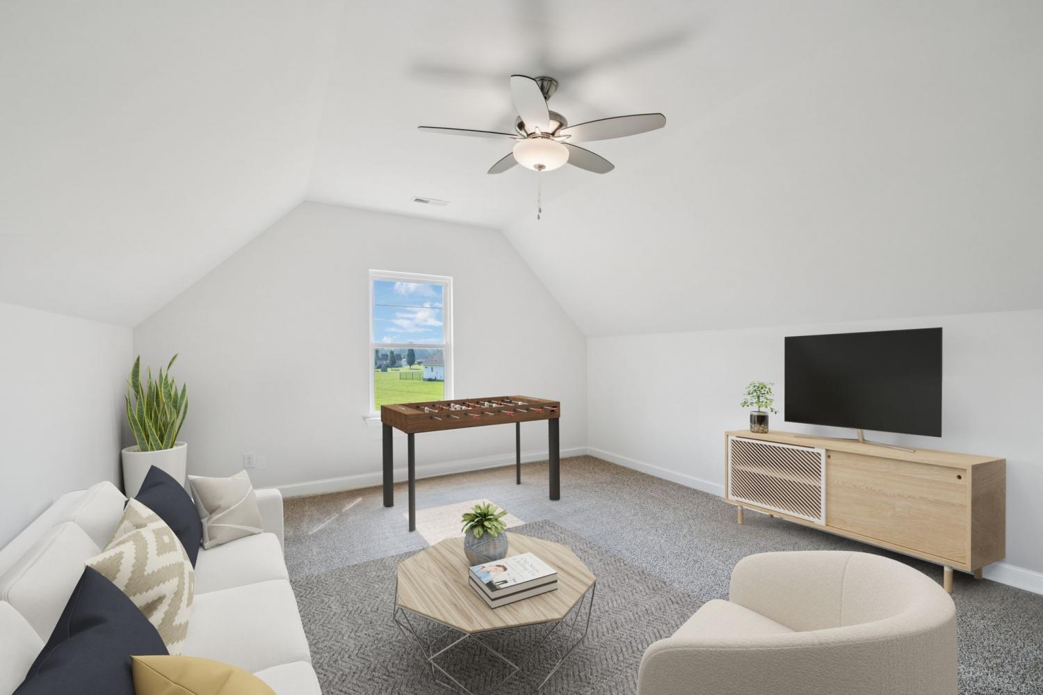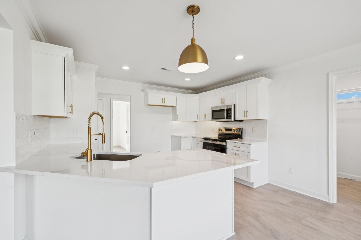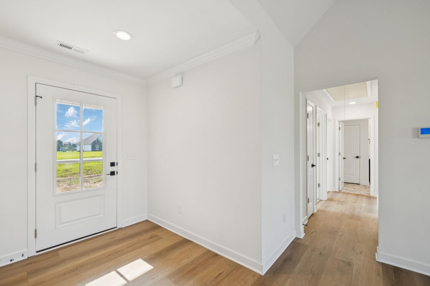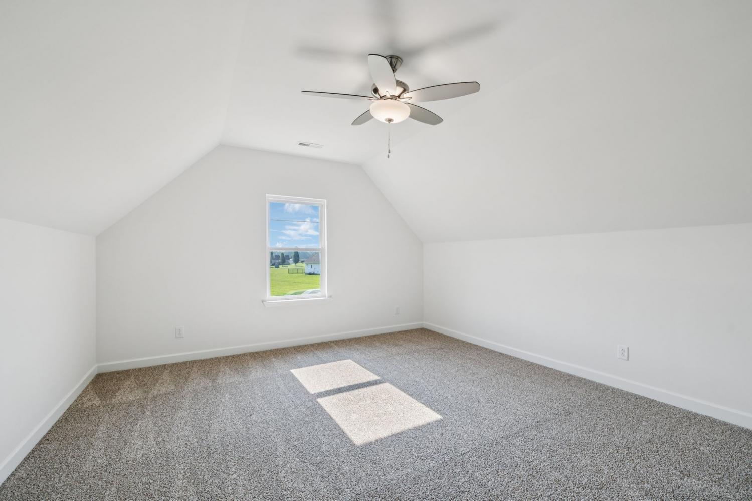 Brand new home on large lot in neighborhood with large lots which allows for privacy. The home features a brick front, black edged windows, 3/4 glass French front door, BI blinds in back door, large covered back porch, white cabinets with brushed gold handles and quartz tops, gorgeous designer brushed gold kitchen faucet, large 06x06 flex room for pantry or office space, top of the line 7" LVP flooring, mosaic tile baths and utility room flooring, large tile master shower with niche and penny tile floor, black bathroom cabinets with quartz tops, upscale lighting, large bonus room, pedestrian door to garage. Andersen single hung windows, interior door levers, farmhouse sink, quartz tops in baths, upgraded insulated garage door with pedestrian entry, linen closet in both baths, raised height bath cabinets, edgeless shower door, under cabinet lighting in kitchen. Quality construction.
