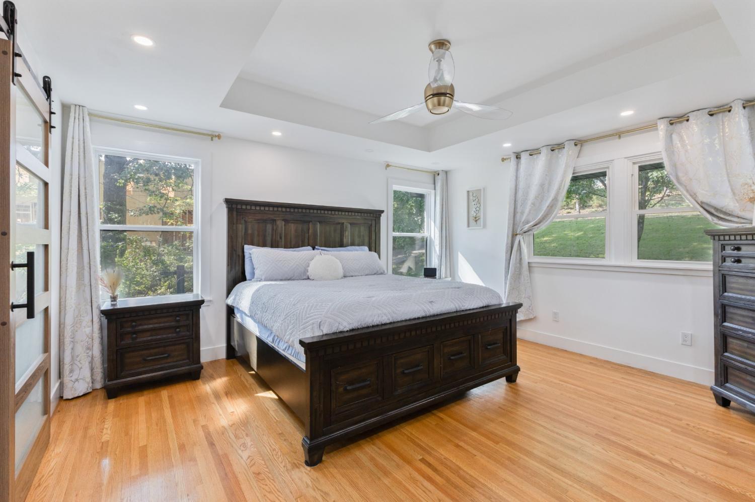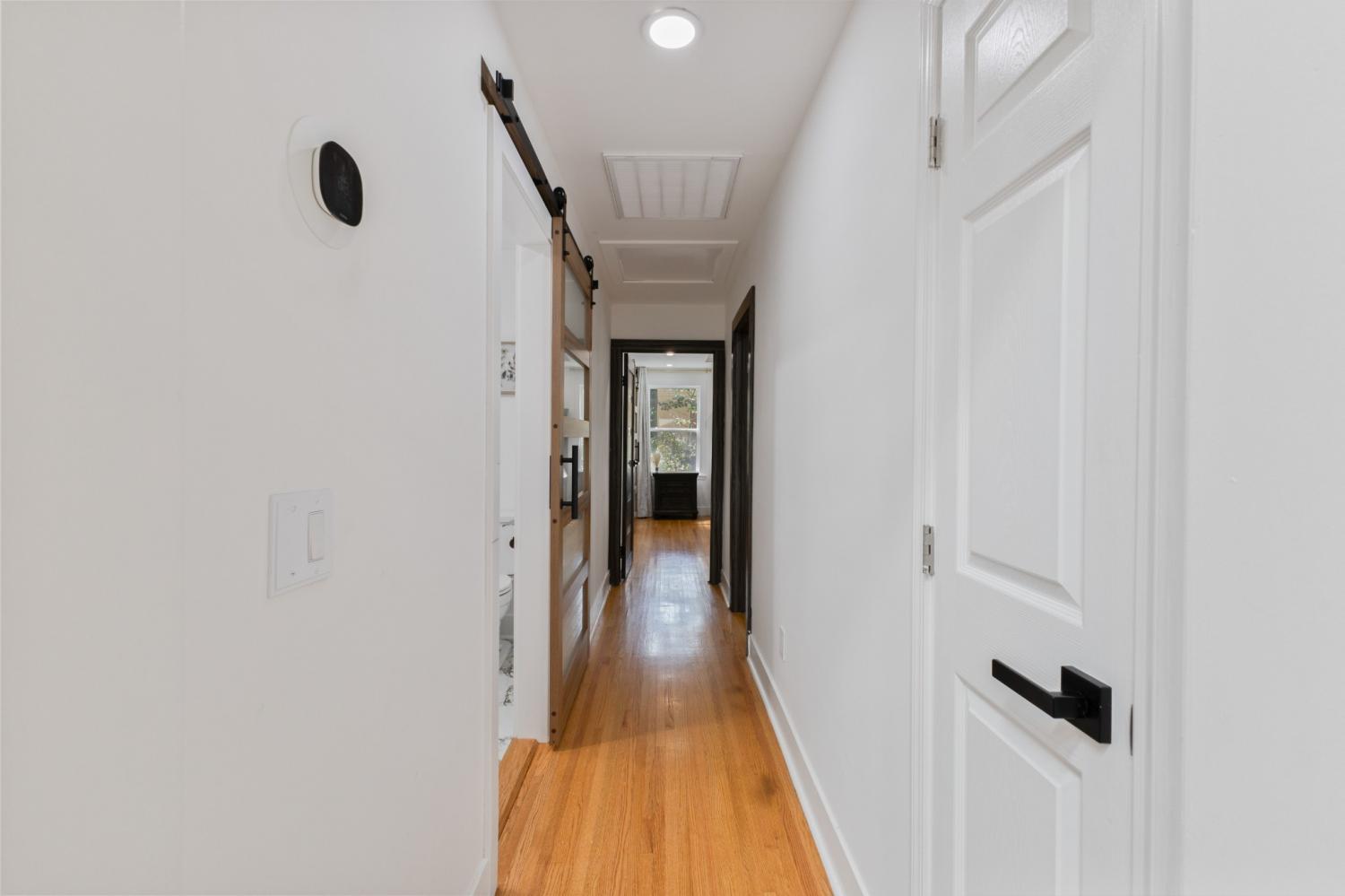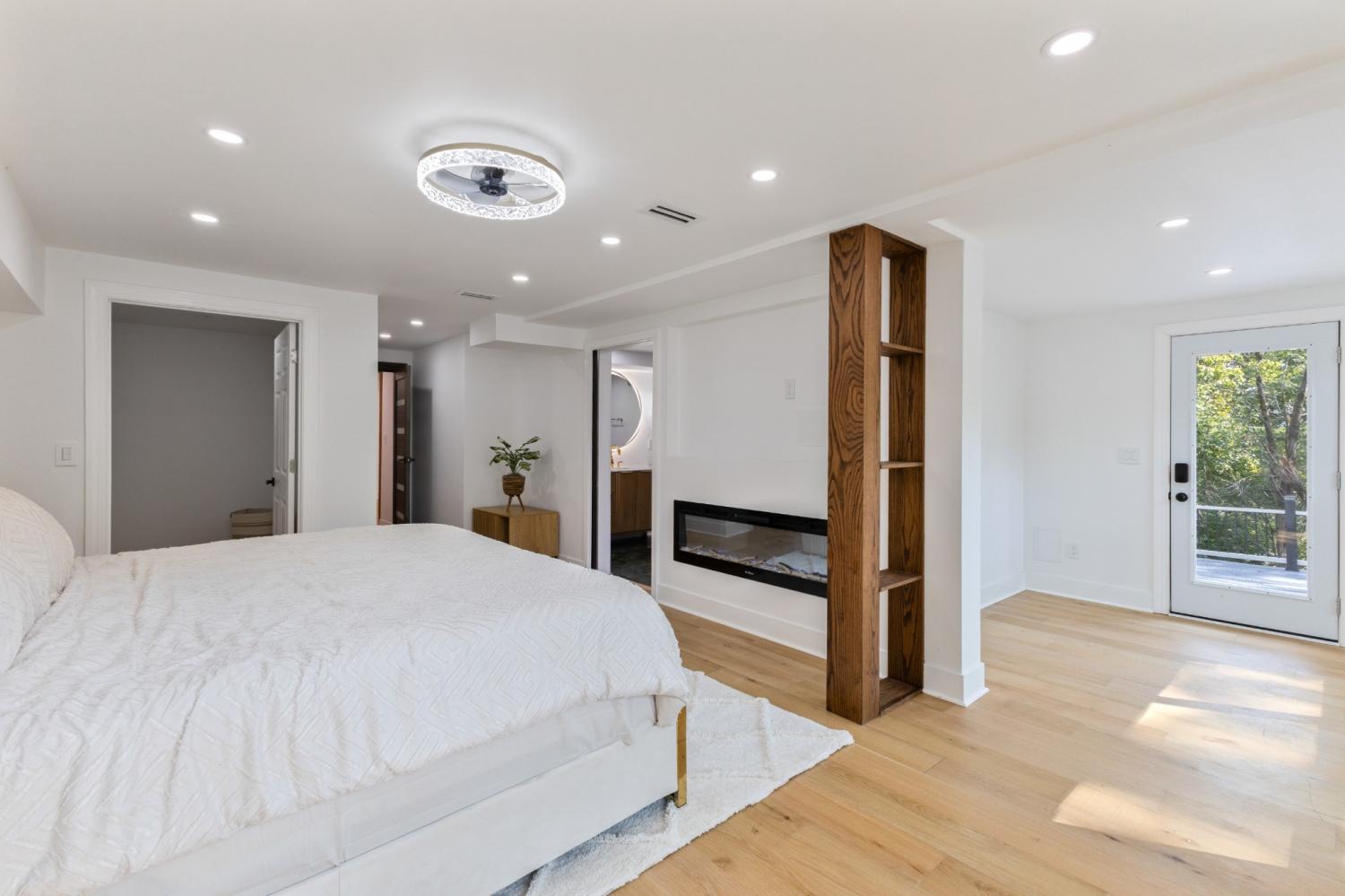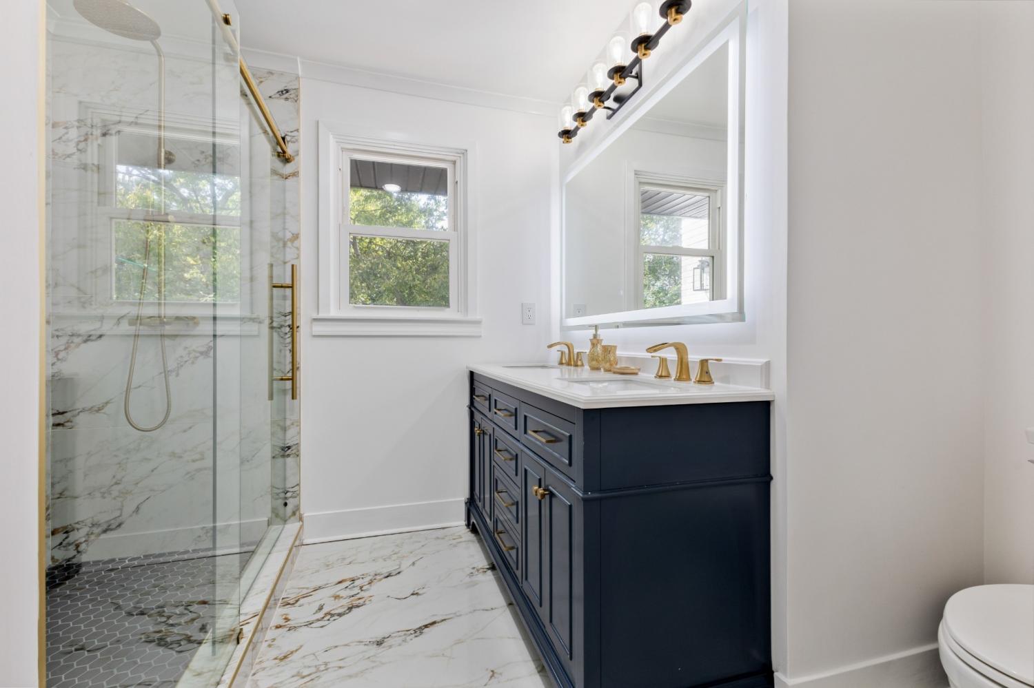 This remodeled 4-bedroom, 4-bath home in the West Meade area of Nashville offers a functional layout with two spacious living areas, hardwood flooring throughout, and tile finishes in all bathrooms. Each bathroom includes a walk-in shower, with two also featuring soaking tubs. The upper level includes high ceilings, a red oak beam, and multiple skylights that bring in natural light. The kitchen is equipped with custom cabinetry, stainless steel appliances, and a tile backsplash, and opens into the main living space for everyday use or entertaining. Two fireplaces are located in the main living areas. Situated on approximately 1 acre at the end of a dead-end street, the property offers added privacy and space. The home also features a large composite deck providing room for outdoor seating or gatherings. Conveniently located near shopping, dining, and major roadways, with approximately a 15-minute drive to downtown Nashville.