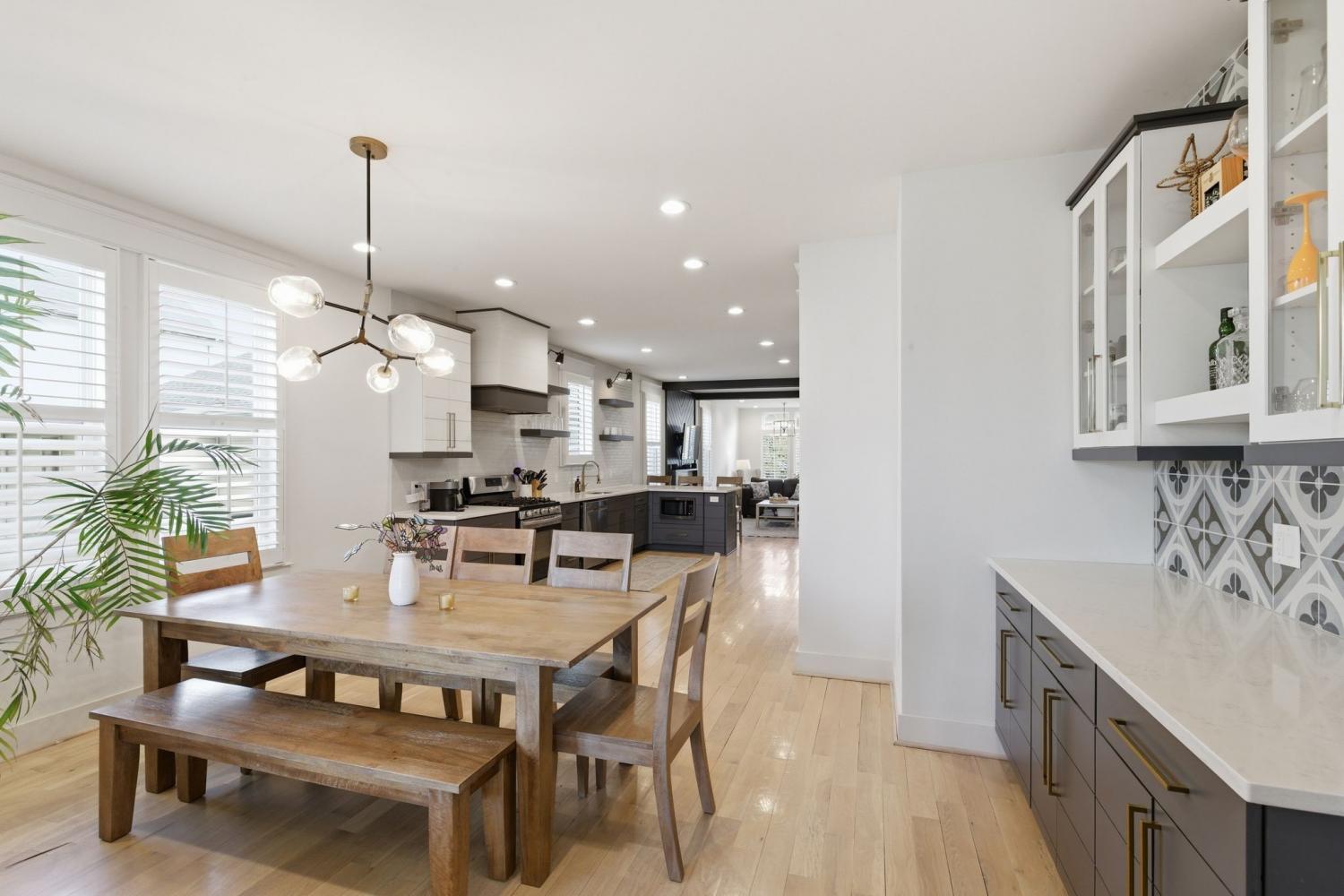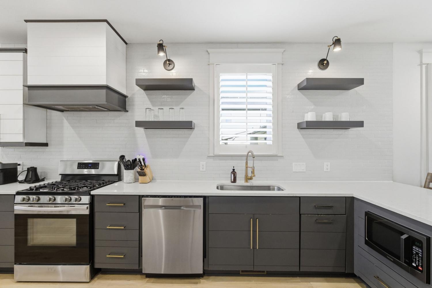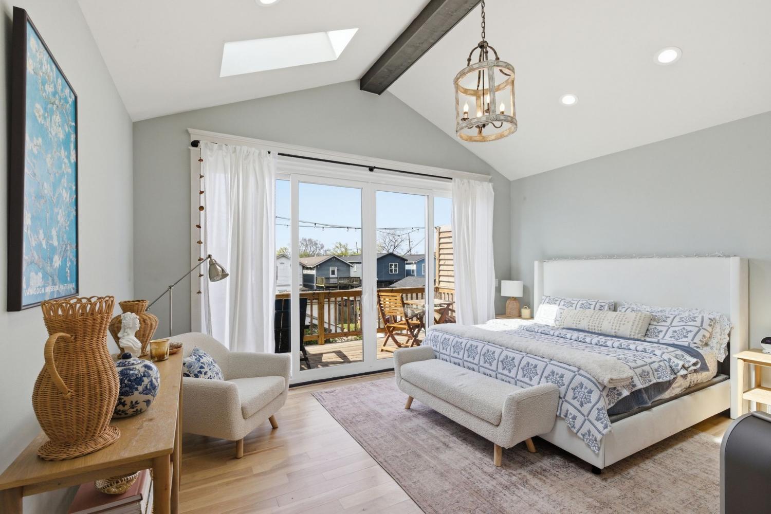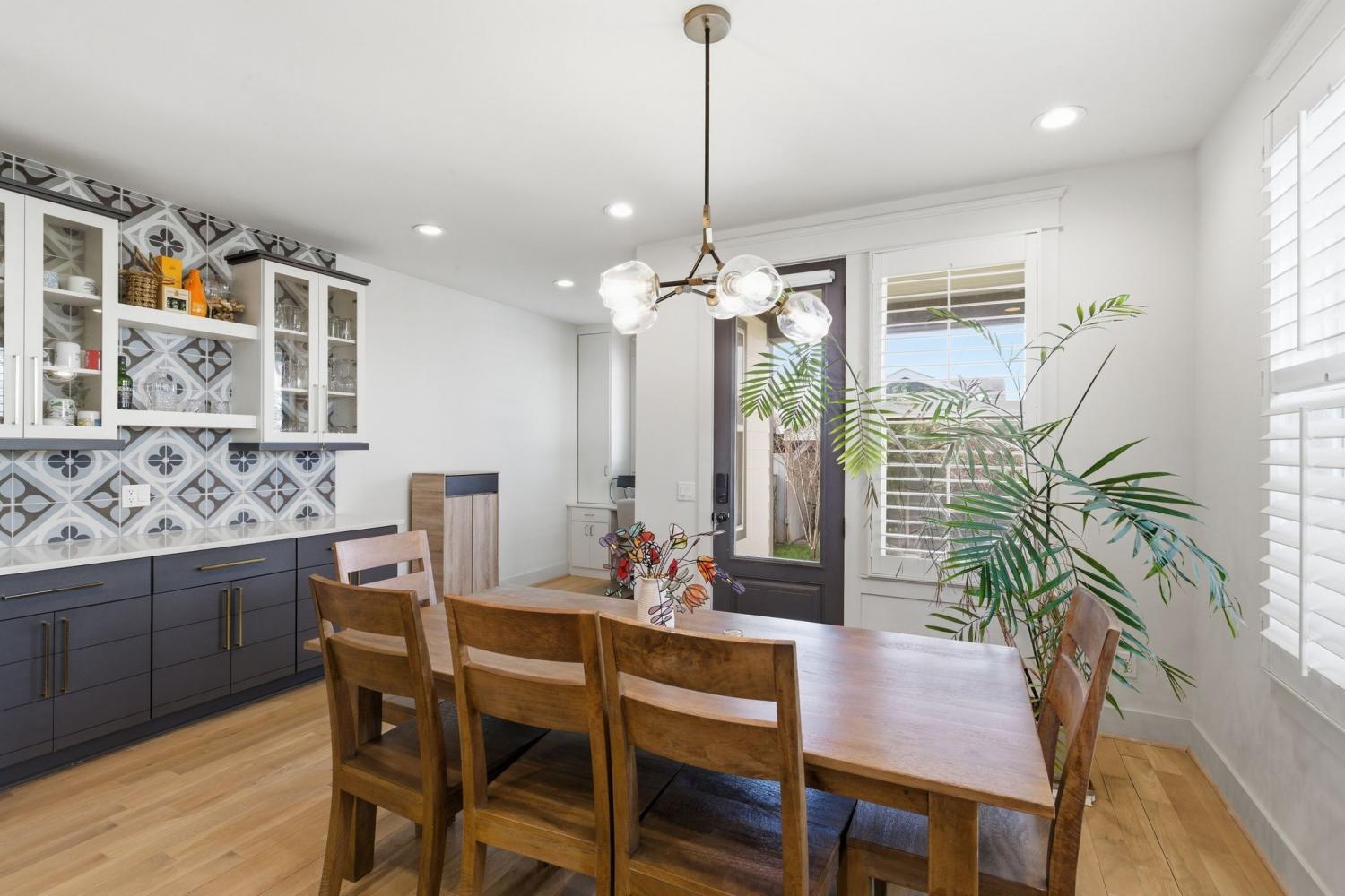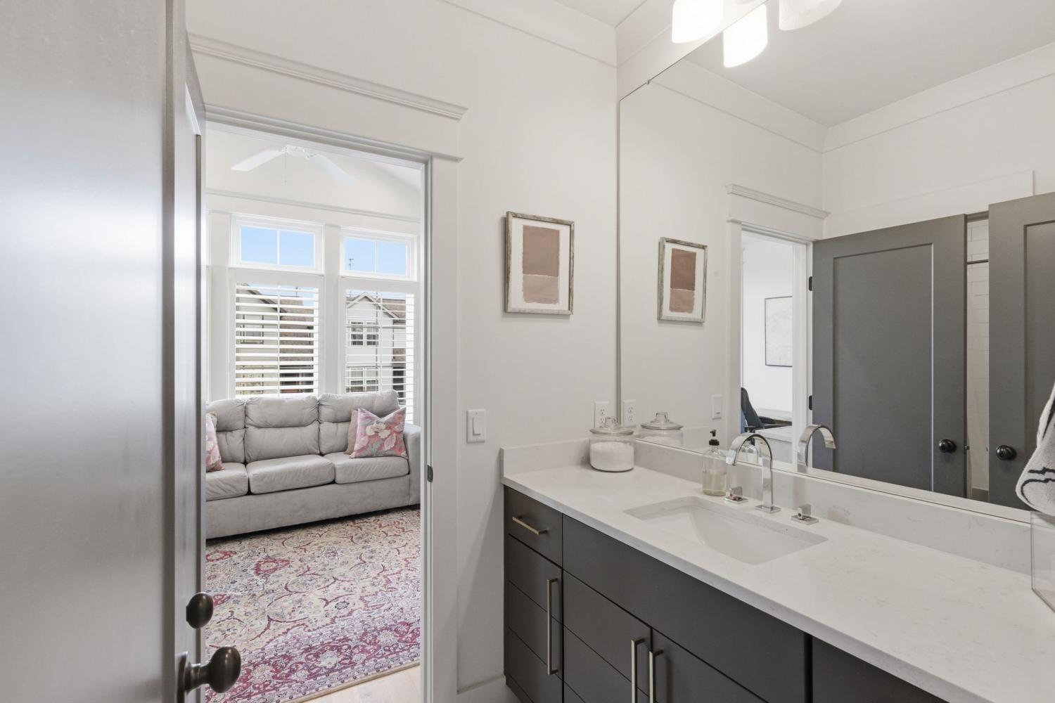 Step into a home where clean design meets everyday comfort in the heart of The Nations. Wide-plank hardwood floors, custom builder trim, and plantation shutters set the tone, while natural light fills every space. The Living Room features a cozy reading nook space, and a designer wall surrounding the gas fireplace. The kitchen features quartz countertops, custom cabinetry, designer hardware, and a stylish eat-at counter that flows seamlessly into the dining and living areas—perfect for entertaining or relaxed daily living. The huge pantry offers extra storage under the stairs. The dining room has a custom wet-bar/coffee bar area and a built-in desk for a home office. Upstairs, the vaulted primary suite offers a true retreat with a skylight and full sliding doors that open to a spacious balcony. The ensuite bath includes dual vanities, a beautifully tiled walk-in shower, and a spacious walk-in closet with custom built-ins. The other two upstairs bedrooms share a jack-and-jill bath and custom closets. The 3rd BR has vaulted ceilings and makes a great extra office space or guest bedroom. The laundry room is also conveniently located on the 2nd level - washer & dryer are included. Enjoy a fully fenced yard, plus the convenience of a garage/carport setup. Located just minutes from all that The Nations has to offer—local favorites like Frothy Monkey, 51st Deli, and easy access to parks, shopping, and downtown Nashville.