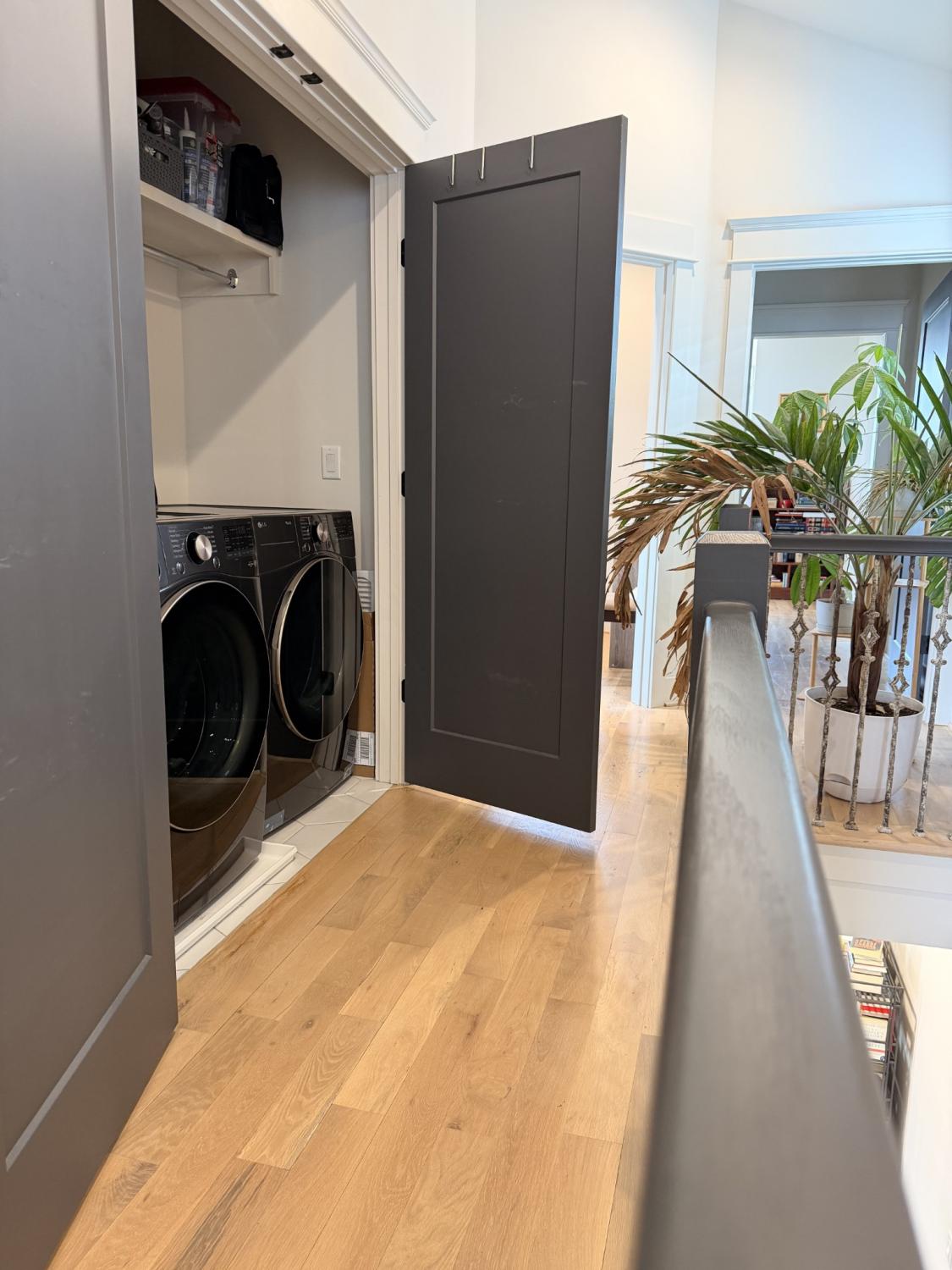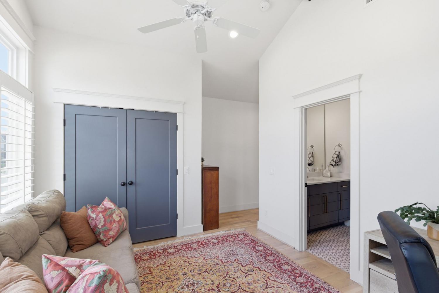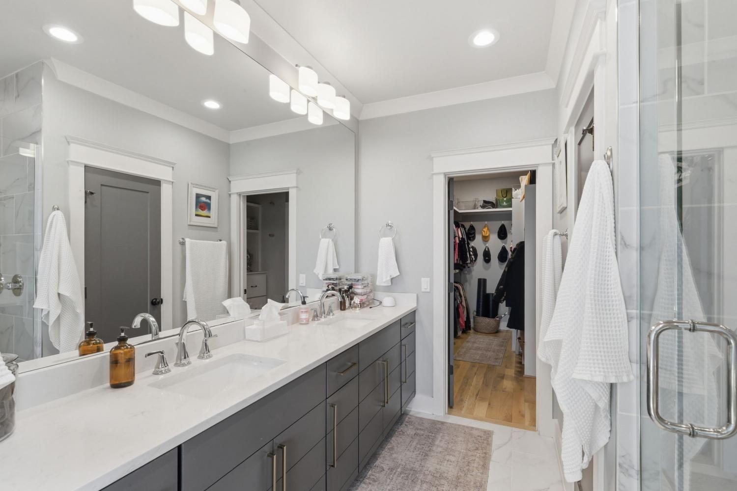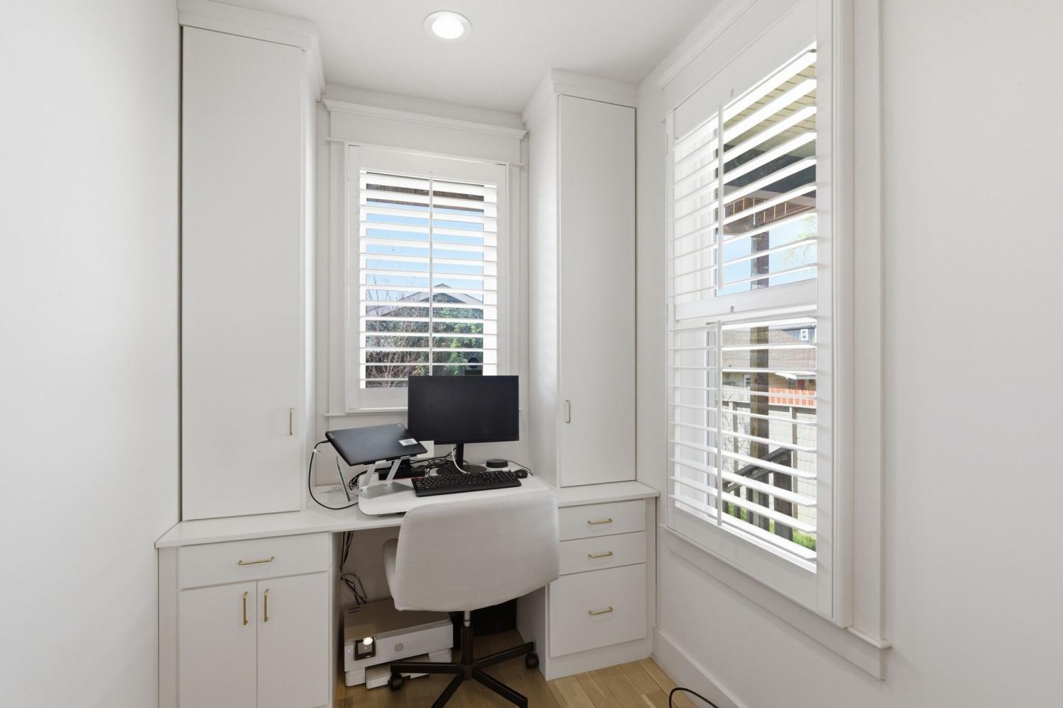 Step into a home where clean design meets everyday comfort in the heart of The Nations. Wide-plank hardwood floors, custom builder trim, and plantation shutters set the tone, while natural light fills every space. The Living Room features a cozy reading nook space, and a designer wall surrounding the gas fireplace. The kitchen features quartz countertops, custom cabinetry, designer hardware, and a stylish eat-at counter that flows seamlessly into the dining and living areas—perfect for entertaining or relaxed daily living. The huge pantry offers extra storage under the stairs. The dining room has a custom wet-bar/coffee bar area and a built-in desk for a home office. Upstairs, the vaulted primary suite offers a true retreat with a skylight and full sliding doors that open to a spacious balcony. The ensuite bath includes dual vanities, a beautifully tiled walk-in shower, and a spacious walk-in closet with custom built-ins. The other two upstairs bedrooms share a jack-and-jill bath and custom closets. The 3rd BR has vaulted ceilings and makes a great extra office space or guest bedroom. The laundry room is also conveniently located on the 2nd level - washer & dryer are included. Enjoy a fully fenced yard, plus the convenience of a garage/carport setup. Located just minutes from all that The Nations has to offer—local favorites like Frothy Monkey, 51st Deli, and easy access to parks, shopping, and downtown Nashville.