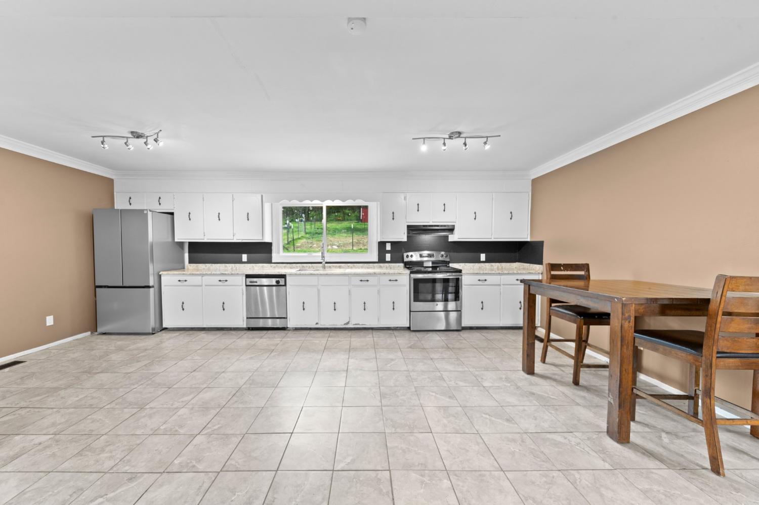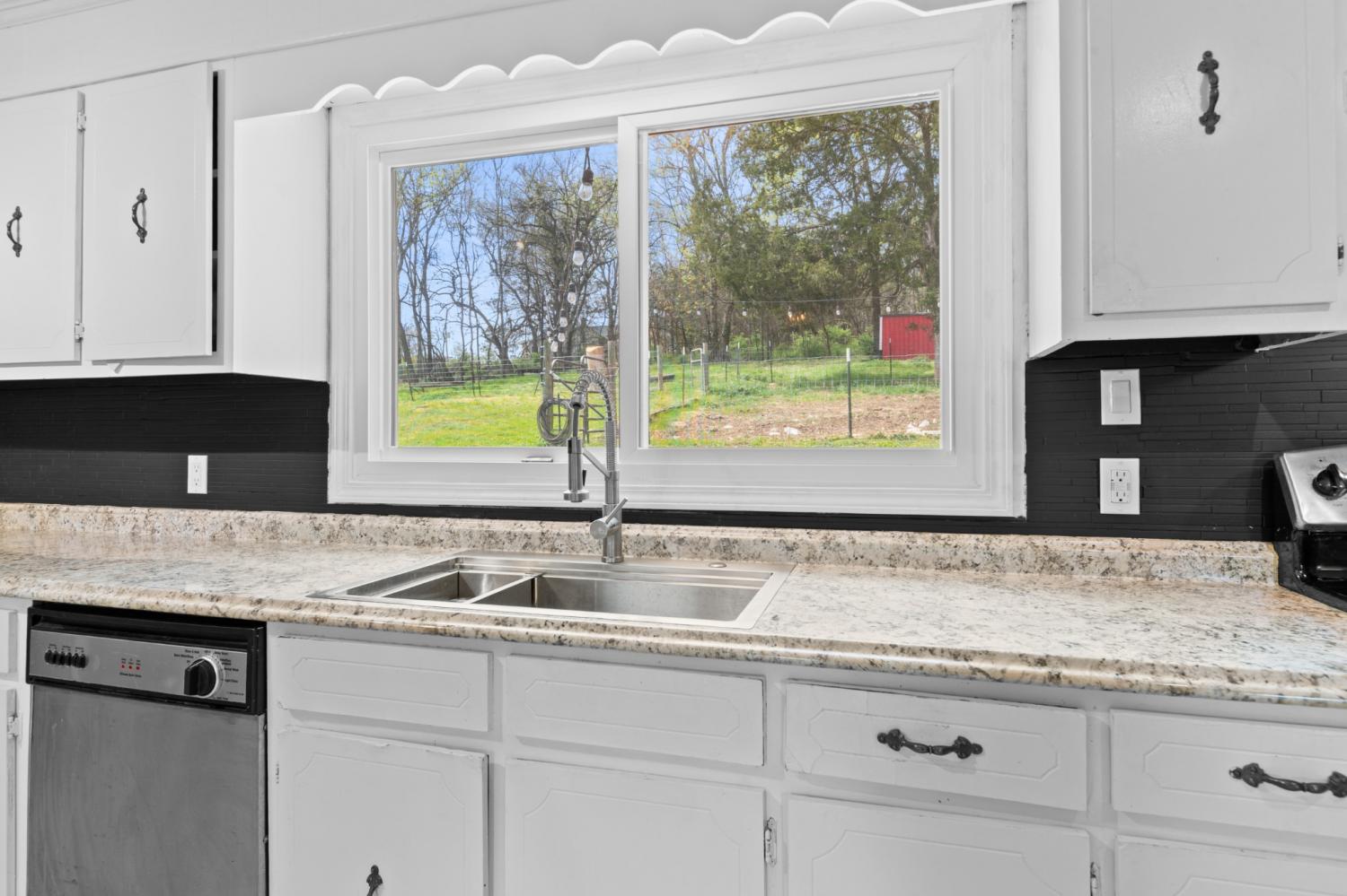 Charming 3 bedroom 2 bath spacious home nestled on a beautiful 1.32 acre lot. Enjoy breathtaking countryside views from the front as you savor the tranquility of rural living. Step inside to discover an inviting open floor plan. The kitchen boasts stainless steel appliances and a stylish backsplash. New windows, new sink, new water heater. The large back patio offer a serene outdoor space. It features a tastefully designed stone retaining wall that not only enhances the aesthetic appeal but also provides structural support. Additional highlights of this property include several storage buildings, ideal for all your outdoor equipment and hobbies. Conveniently located near schools, I-65, and local shops, such as Tractor Supply, Walmart, Kroger. This home combines privacy with easy access to essential amenities. Don't miss your chance to own this beautiful home with plenty of space and stunning views!