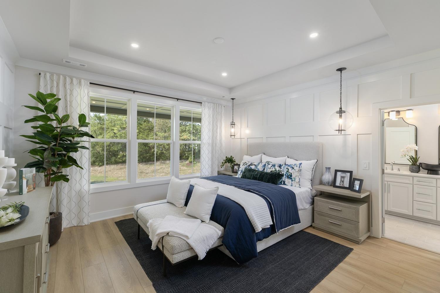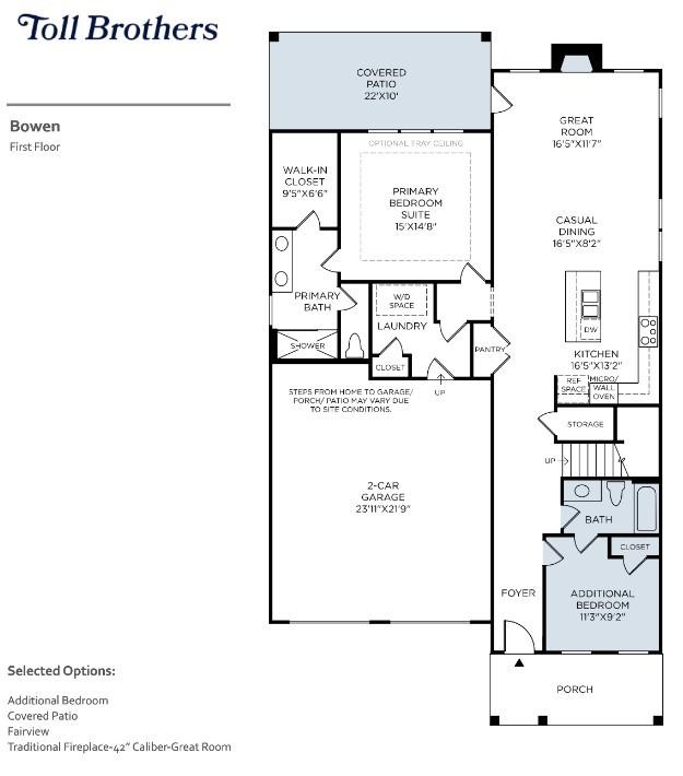 Welcome to the Carlow Collection at Tomlinson Pointe by Toll Brothers! This homesite has been preselected for a Bowen Fairview floor plan and offers the unique opportunity to experience working with our design team to hand pick your design finishes. This home comes with 5 bedrooms and 4.5 bathrooms. The primary suite, located on the first floor, is complete with a large stand-up shower, private water closet and an exceptional walk-in closet. There is an additional bedroom with full bathroom on the main level, a perfect guest suite away from all other rooms. A gas fireplace is included in the downstairs great room. Enjoy a large covered patio, perfect for entertaining guests! On the second level you'll find a large second living room. There is also a guest suite with a full bath ensuite, and two additional spacious bedrooms with walk in closets that share a dual vanity bathroom on the second level. Enjoy community amenities such as sidewalks, streetlights, a pool, firepit, tot-lot playground, and walking trail. This community offers quick access to I-40, Providence Shopping Center, Costco and Sprouts. Turn the Bowen into your dream home by choosing your own interior finishes! *Photos are of decorated model and for representational purposes only. Advertised price is the starting base price.* Community Model Home is open Wed-Sun. Ask us about our design incentives!