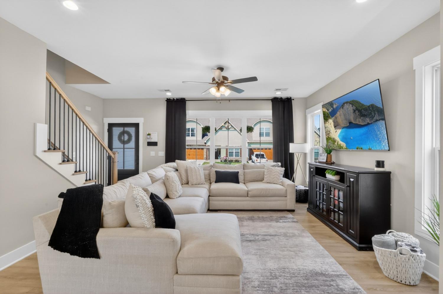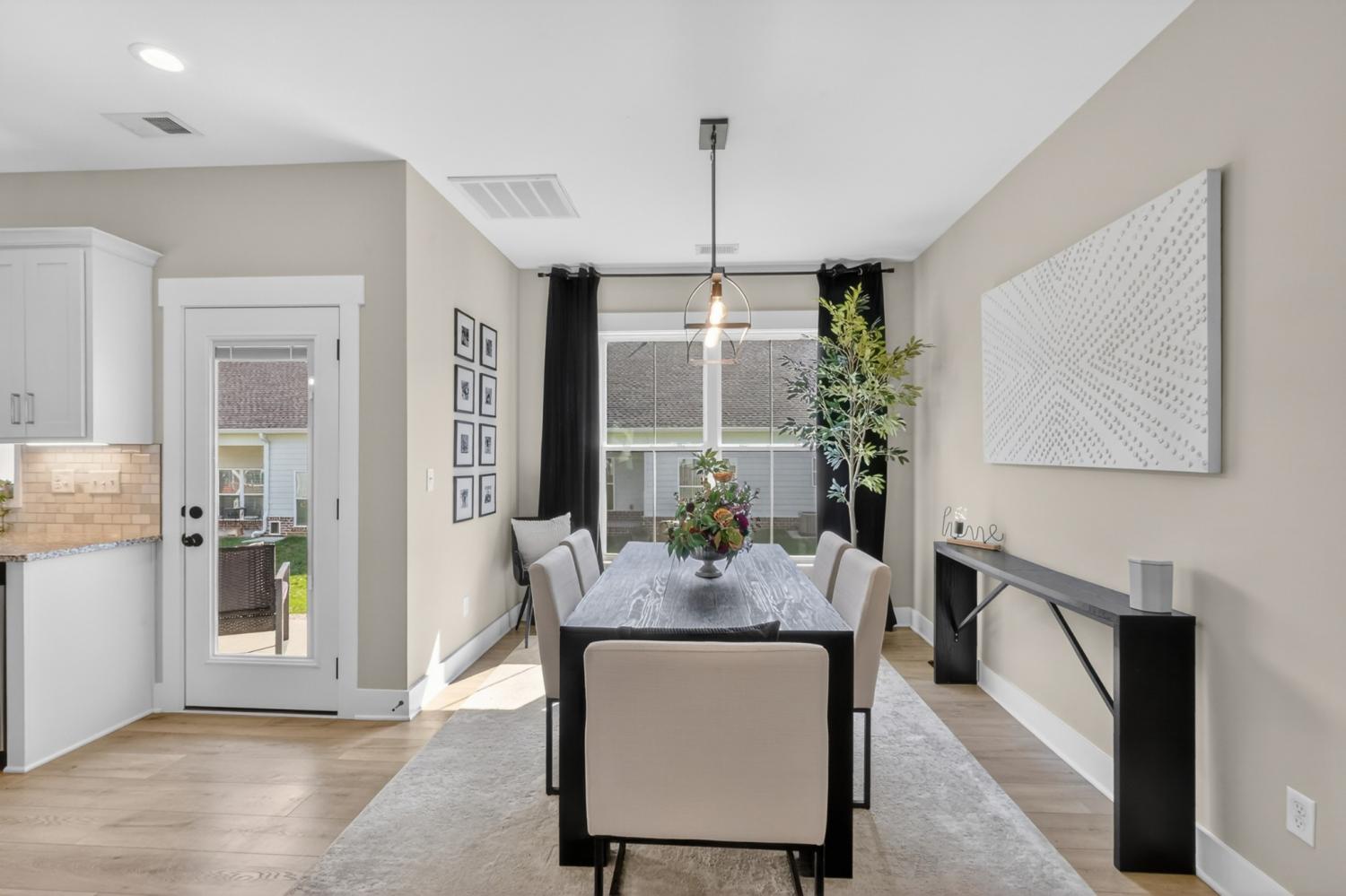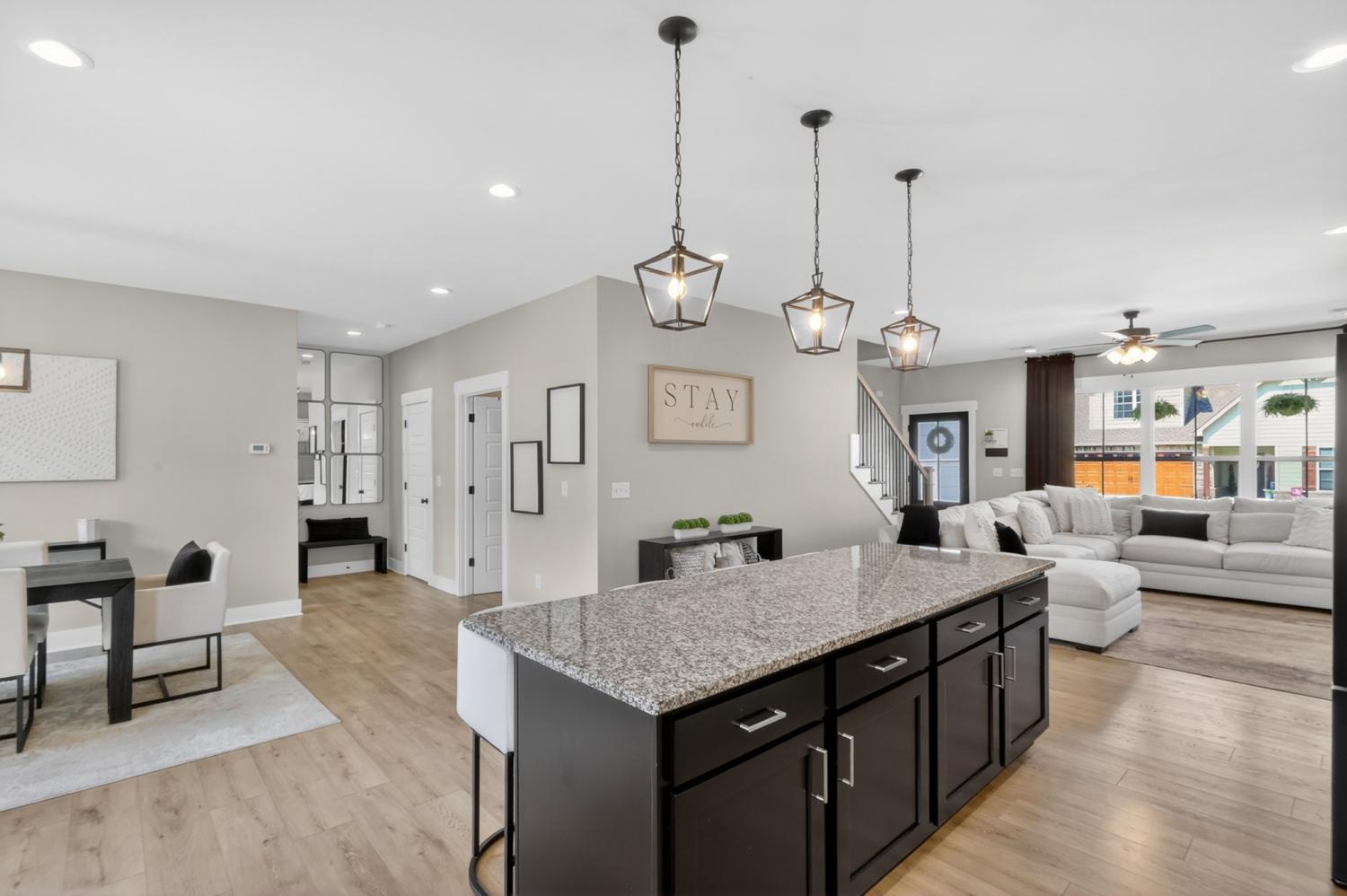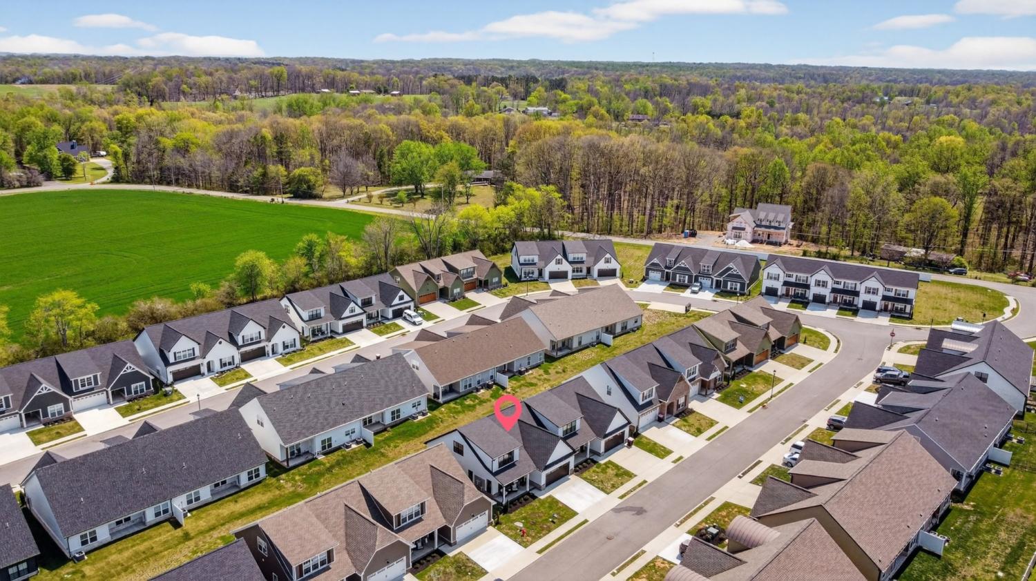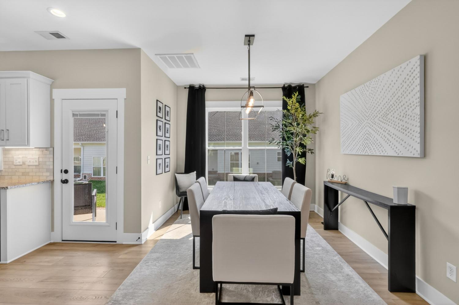 Priced below appraisal with new PRICE! One of the largest floor plans in the subdivision with over 1,900 sq ft, this immaculate 3-bedroom, 2.5-bath townhome offers a main-level primary suite and open-concept living. The spacious kitchen features an oversized island, granite throughout, soft-close cabinetry, and flows seamlessly into the dining and family rooms filled with natural light. Upstairs, a versatile bonus space with built-in bench and designer accents is perfect for an office, exercise room, or quiet retreat. Additional highlights include luxury laminate flooring in main areas, a laundry room with drop zone, abundant storage, and a 2-car garage. Enjoy both a front porch and covered rear porch, plus a patio door with built-in blinds. Durable Hardie board and brick exterior. Conveniently located to North Nashville and approximately 30 minutes to downtown Nashville. Flex space photos are virtually staged.