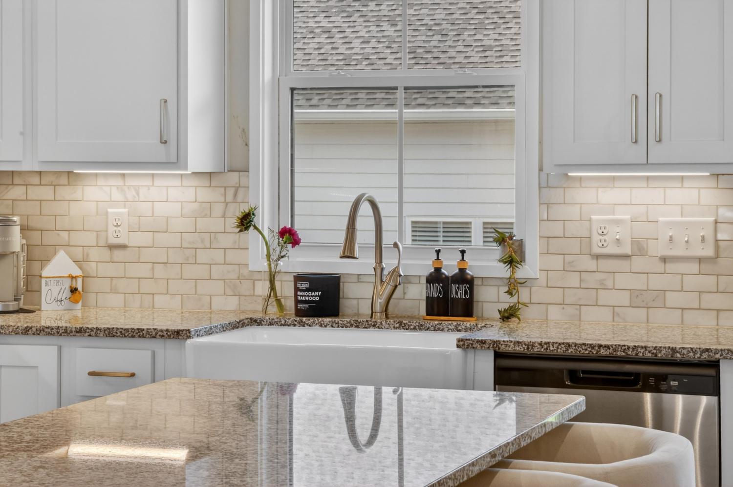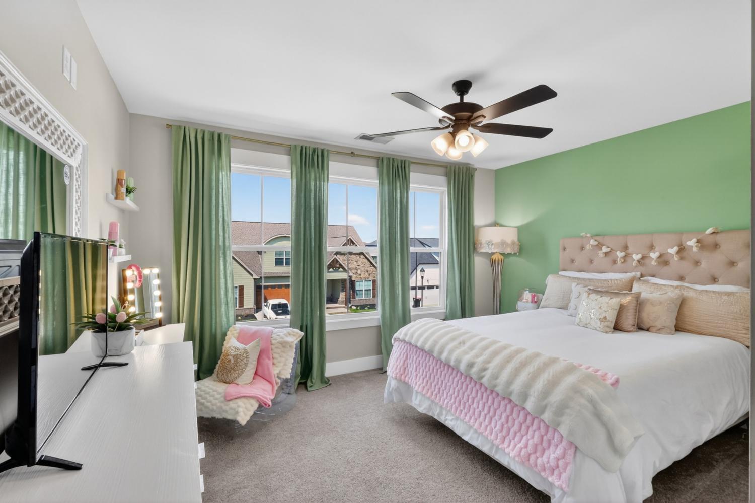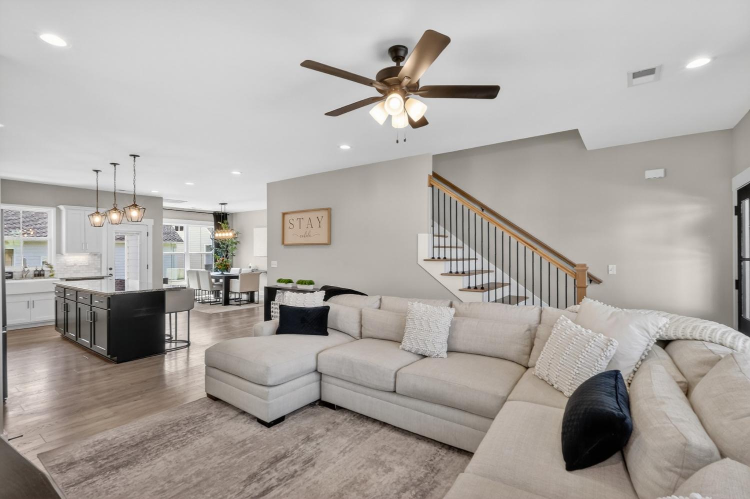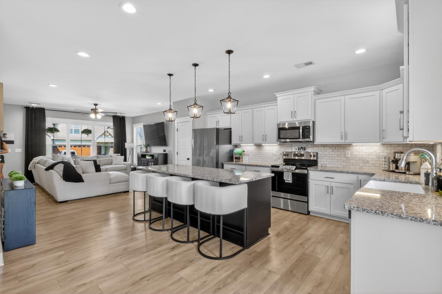 Priced below appraisal with new PRICE! One of the largest floor plans in the subdivision with over 1,900 sq ft, this immaculate 3-bedroom, 2.5-bath townhome offers a main-level primary suite and open-concept living. The spacious kitchen features an oversized island, granite throughout, soft-close cabinetry, and flows seamlessly into the dining and family rooms filled with natural light. Upstairs, a versatile bonus space with built-in bench and designer accents is perfect for an office, exercise room, or quiet retreat. Additional highlights include luxury laminate flooring in main areas, a laundry room with drop zone, abundant storage, and a 2-car garage. Enjoy both a front porch and covered rear porch, plus a patio door with built-in blinds. Durable Hardie board and brick exterior. Conveniently located to North Nashville and approximately 30 minutes to downtown Nashville. Flex space photos are virtually staged.