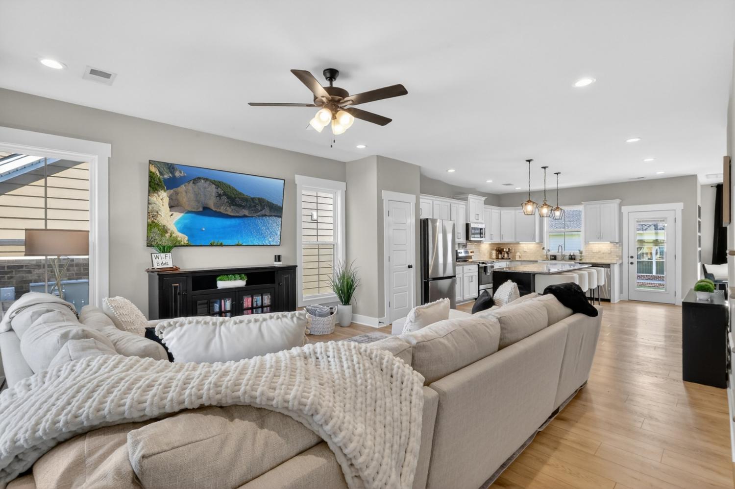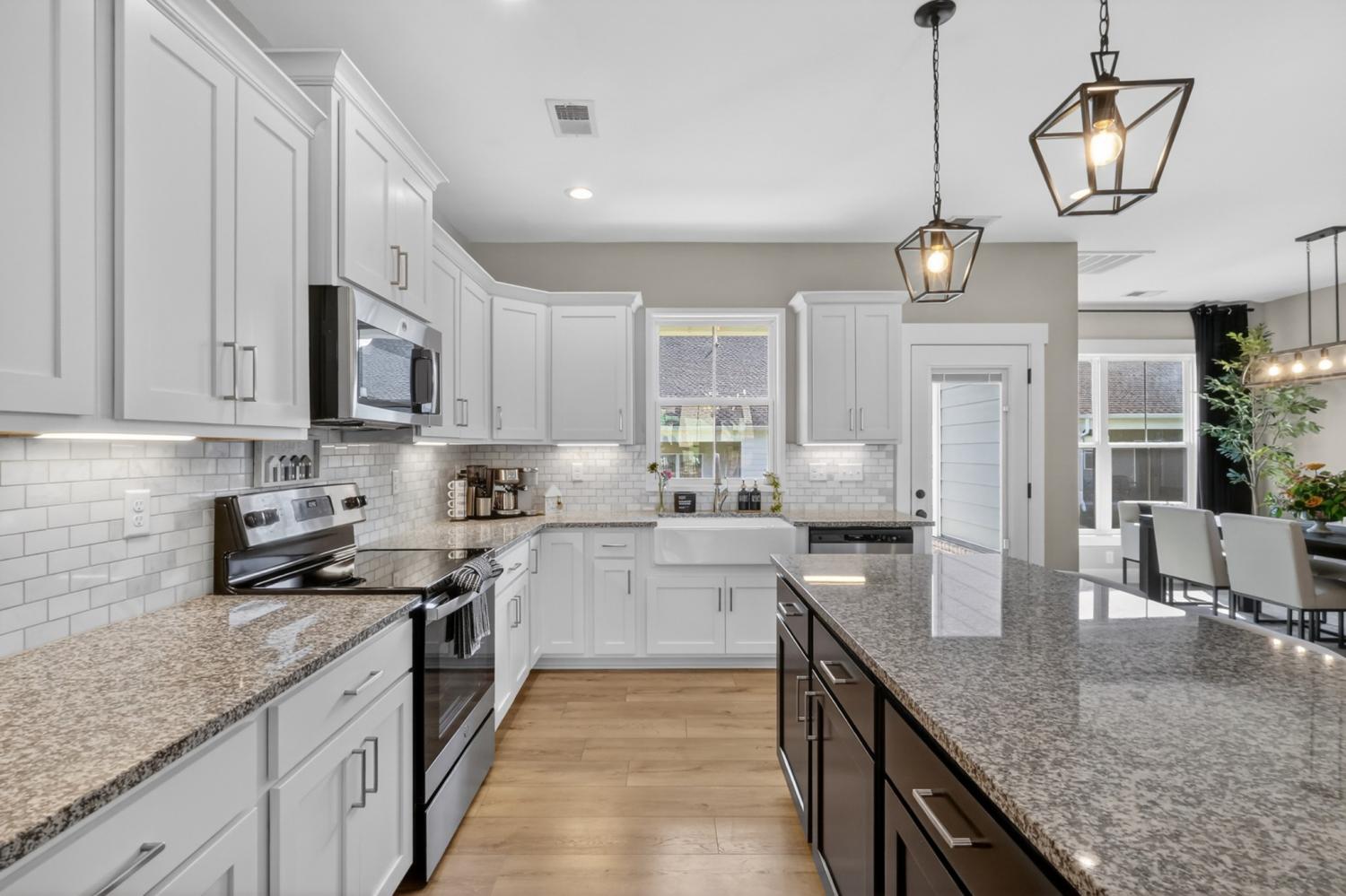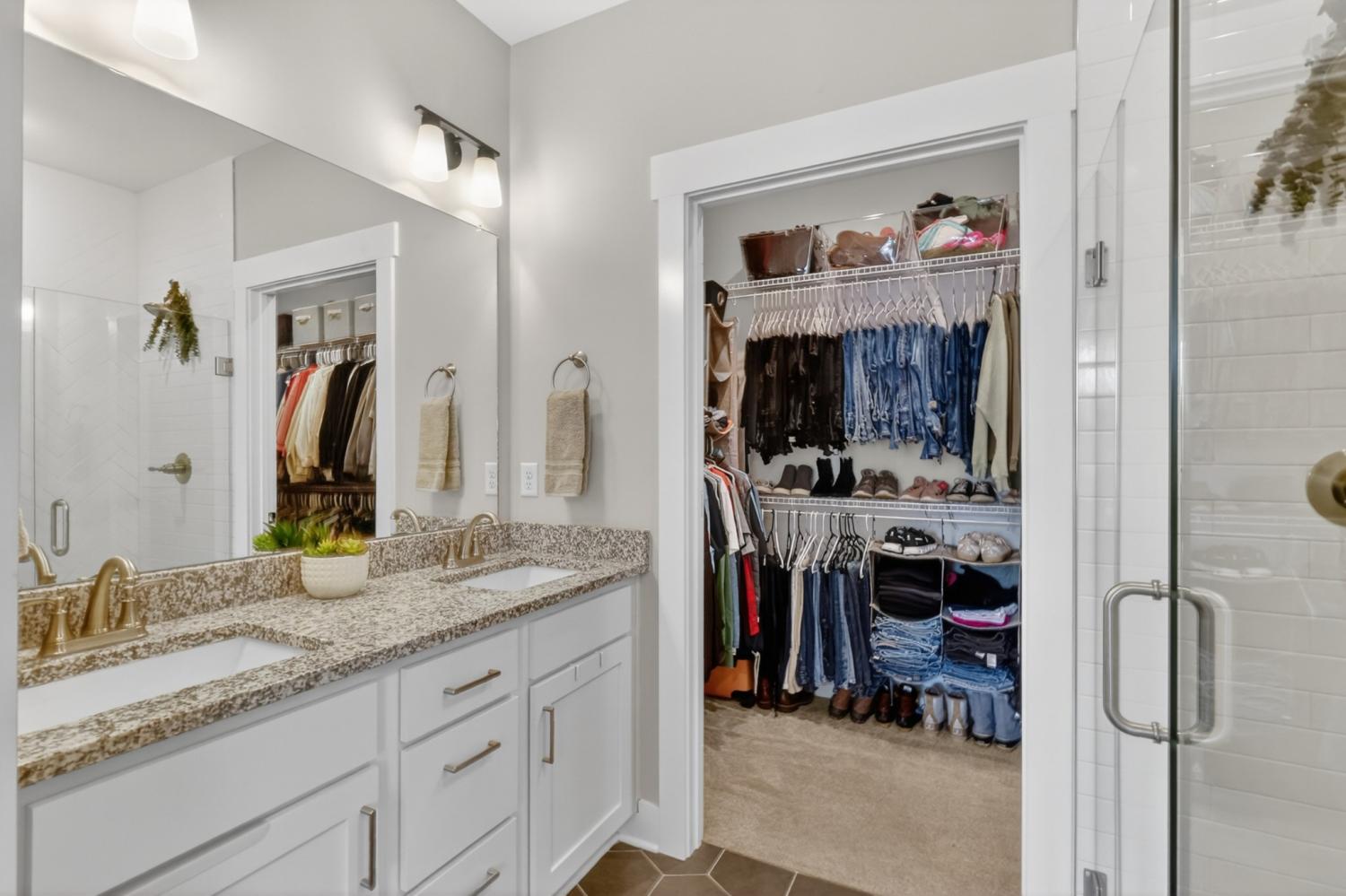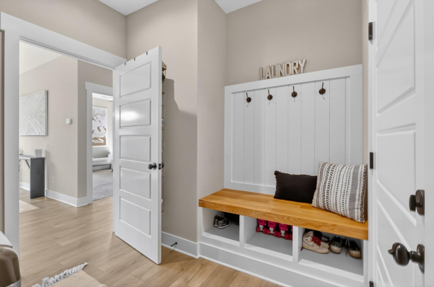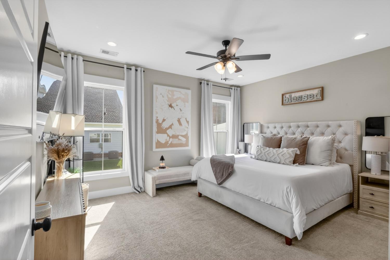 Priced below appraisal with new PRICE! One of the largest floor plans in the subdivision with over 1,900 sq ft, this immaculate 3-bedroom, 2.5-bath townhome offers a main-level primary suite and open-concept living. The spacious kitchen features an oversized island, granite throughout, soft-close cabinetry, and flows seamlessly into the dining and family rooms filled with natural light. Upstairs, a versatile bonus space with built-in bench and designer accents is perfect for an office, exercise room, or quiet retreat. Additional highlights include luxury laminate flooring in main areas, a laundry room with drop zone, abundant storage, and a 2-car garage. Enjoy both a front porch and covered rear porch, plus a patio door with built-in blinds. Durable Hardie board and brick exterior. Conveniently located to North Nashville and approximately 30 minutes to downtown Nashville. Flex space photos are virtually staged.