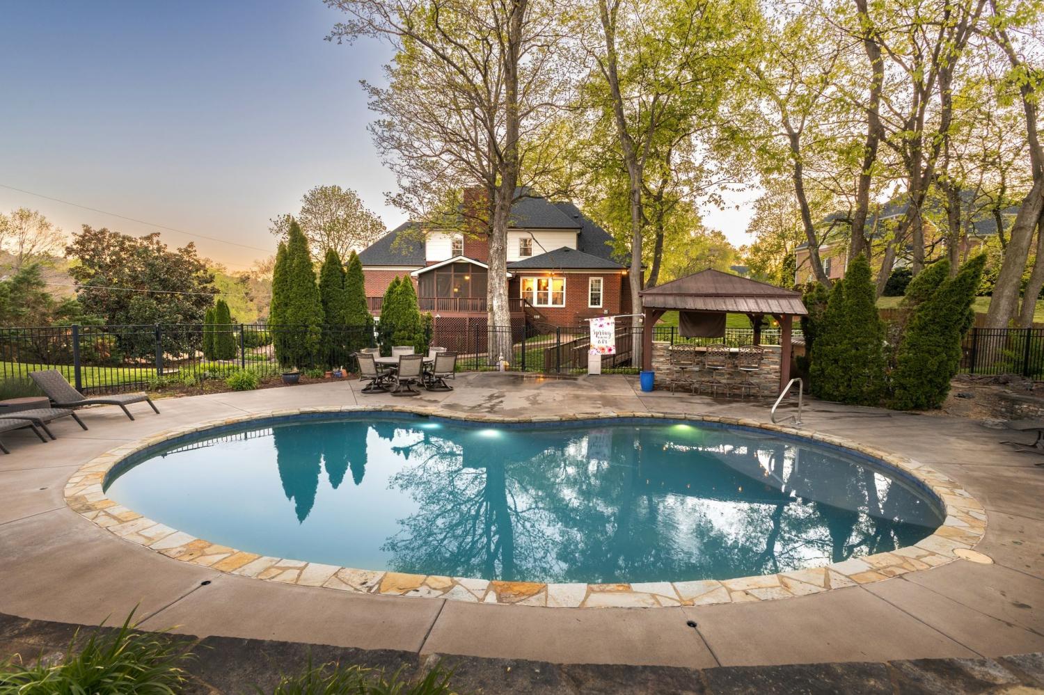 Lovely traditional home surrounded by majestic trees and conveniently located in desirable Beech Farms subdivision. With four bedrooms and three and one half bathrooms, there is plenty of room for everyone. Fabulous outdoor living & entertaining spaces!Backyard pool area is simply magazine picture worthy! Gorgeous pool, fire pit, gazebo area,etc. This elegant home is thoughtfully designed and decorated and has been maintained beautifully. With Cool Srinpgs area 10 min. away and you can also en joy Brentwood's nearby " retail "therapy", restaurants,grocery stores, etc. Medi cal facilities and 15 minutes away to 'Award winning"Williamson Medical Center. The Williamson County School s are nationally recognized for their excellence. Interstate 65 access is only 3 miles west and that means that BNA (Nashville's airport), is about 20 minutes away. Please see " Special Features and Home Highlights "in document secion below. Enjoy the lifestyle of Brentwood living at its best!