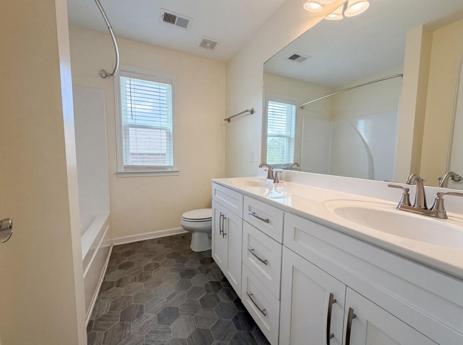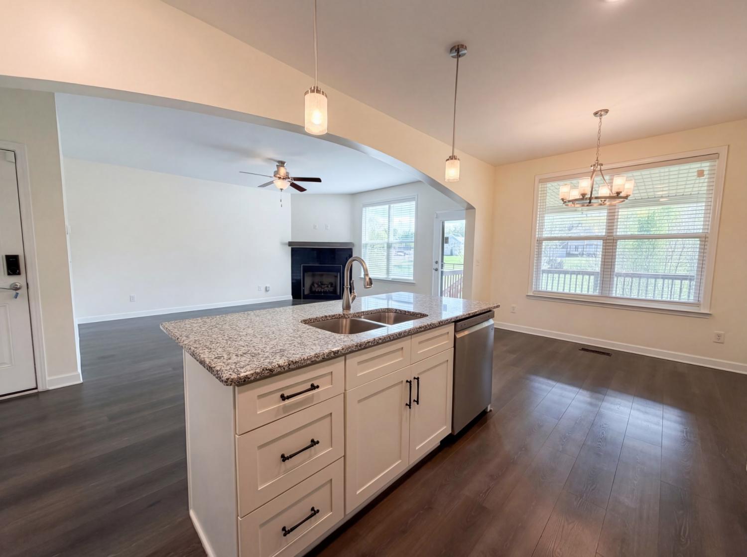 Experience 210 Hickory Pointe Dr, recently enhanced with fresh interior paint and a kitchen featuring all stainless steel appliances, an accent backsplash, and a functional island. A fireplace in the living area and a deck extending outdoor space provide utility. The primary bathroom has double sinks and a separate tub and shower, alongside the primary bedroom's walk in closet. This home is a perfect blend of style and functionality, making it a must-see.