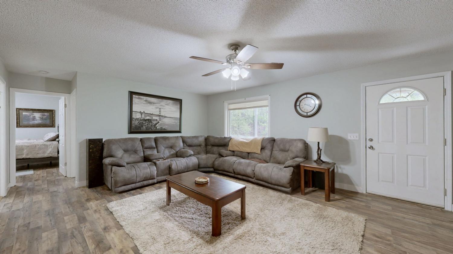 Welcome to your own slice of country living! This beautifully remodeled 3 bedroom, 2 bath home sits on 3.2 picturesque acres, offering the perfect blend of comfort, functionality, and peaceful outdoor living. Inside, you’ll find thoughtful updates throughout, including new flooring, cabinetry, and fixtures. Major system improvements provide added peace of mind, with a new water heater (2022), HVAC (2020), and water softener (2021). The HVAC has also been recently serviced and is ready for the summer months ahead. The home continues to impress with a fully remodeled handicap-accessible primary bathroom (2025) and a complete set of stainless steel kitchen appliances, including a brand new stove with air fryer feature (2026), refrigerator (2023), dishwasher, and microwave (2025). Step outside and take in everything this property has to offer. A scenic walking trail wraps around the back of the property, creating the perfect setting for morning walks or relaxing evenings. The backyard is fully fenced (approximately 760 feet of chain link, 2025), with an additional fenced dog pen (2025) for your pets. Recent exterior improvements also include a new roof (2022) a new metal roof over the back porch (2025) and a newly added 2-car carport (2024). Bonus features include a riding mower (purchased in 2023 and recently serviced) that will remain with the property. There is also an active termite contract with Servall, and the seller will provide a letter of clearance. A home warranty is being offered for added buyer confidence. This one is priced to sell, so come see it while you still can!
