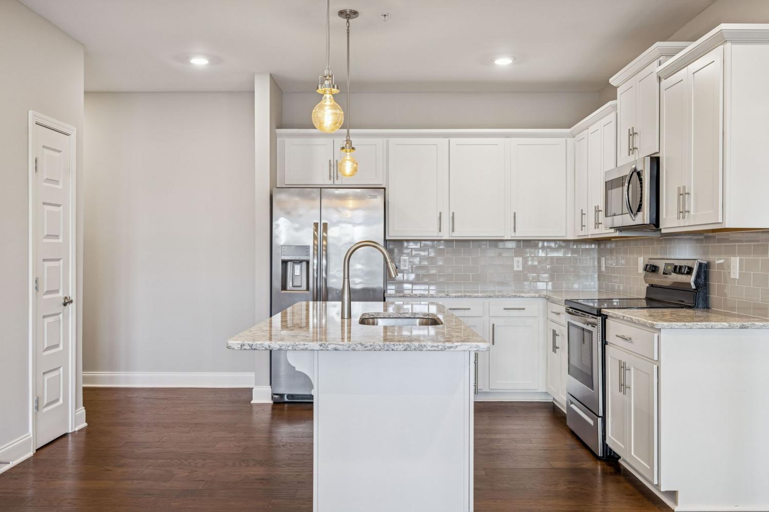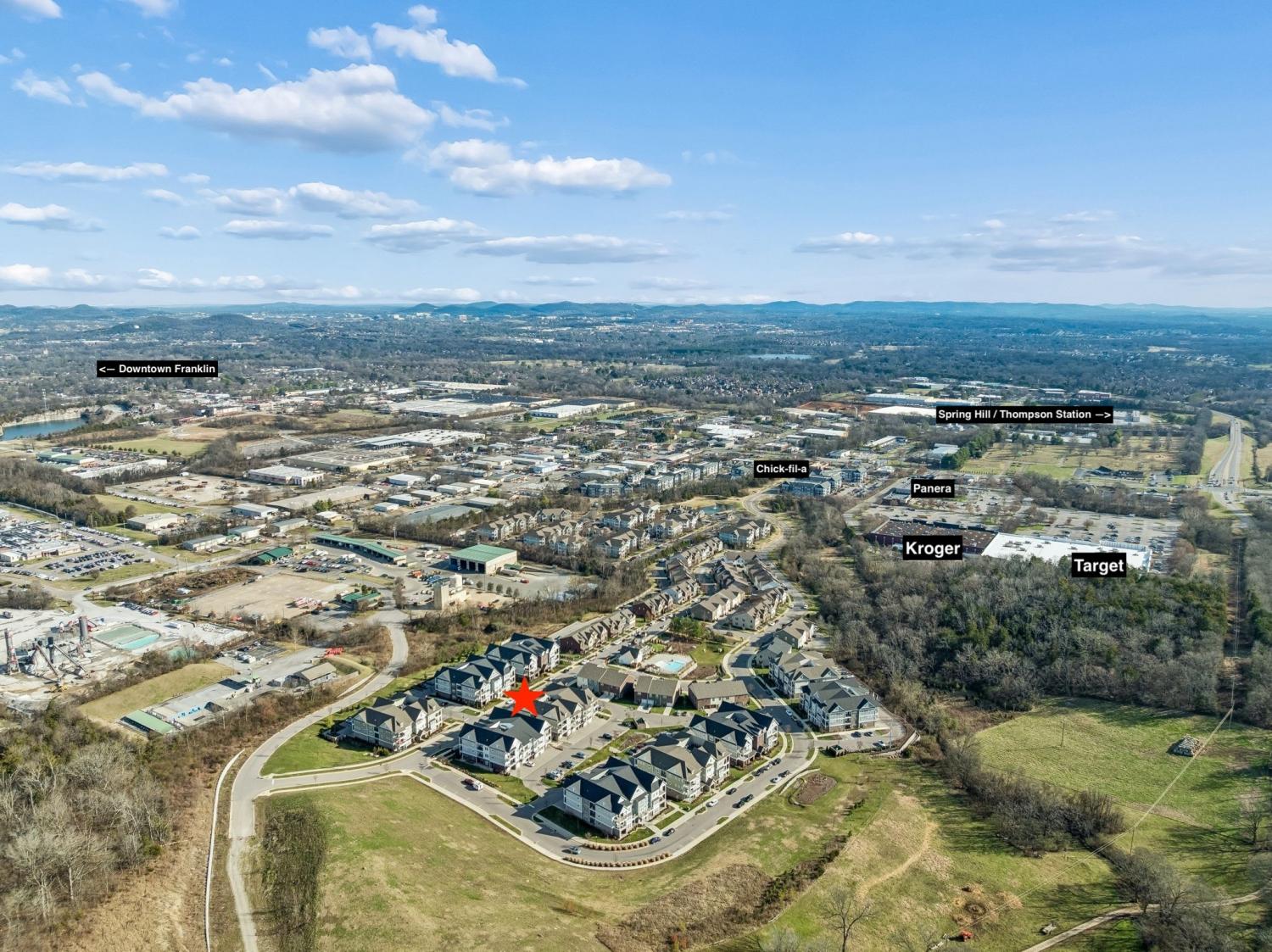 First-floor, single-story living just off Columbia Avenue in Franklin is available now! This light-filled home features an open-concept layout with a modern kitchen, stainless steel appliances, granite countertops, and hardwood flooring throughout the main living areas. The unit includes two covered porches, one of which provides private exterior access, creating a rare sense of separation and ease for guests, dogs, or daily comings and goings. An attached private garage—available for parking, additional storage, workout space, studio, etc.—is included, a highly sought-after feature not currently offered with other units in the community. The convenient location allows you to be near downtown Franklin, Kroger, Target, Chick-fil-a, additional shopping, dining, and major commuter routes. The community provides access to a pool, sidewalks, walking trails and a dog park. If you are looking for single-story living with easy access to the outdoors - look no further!