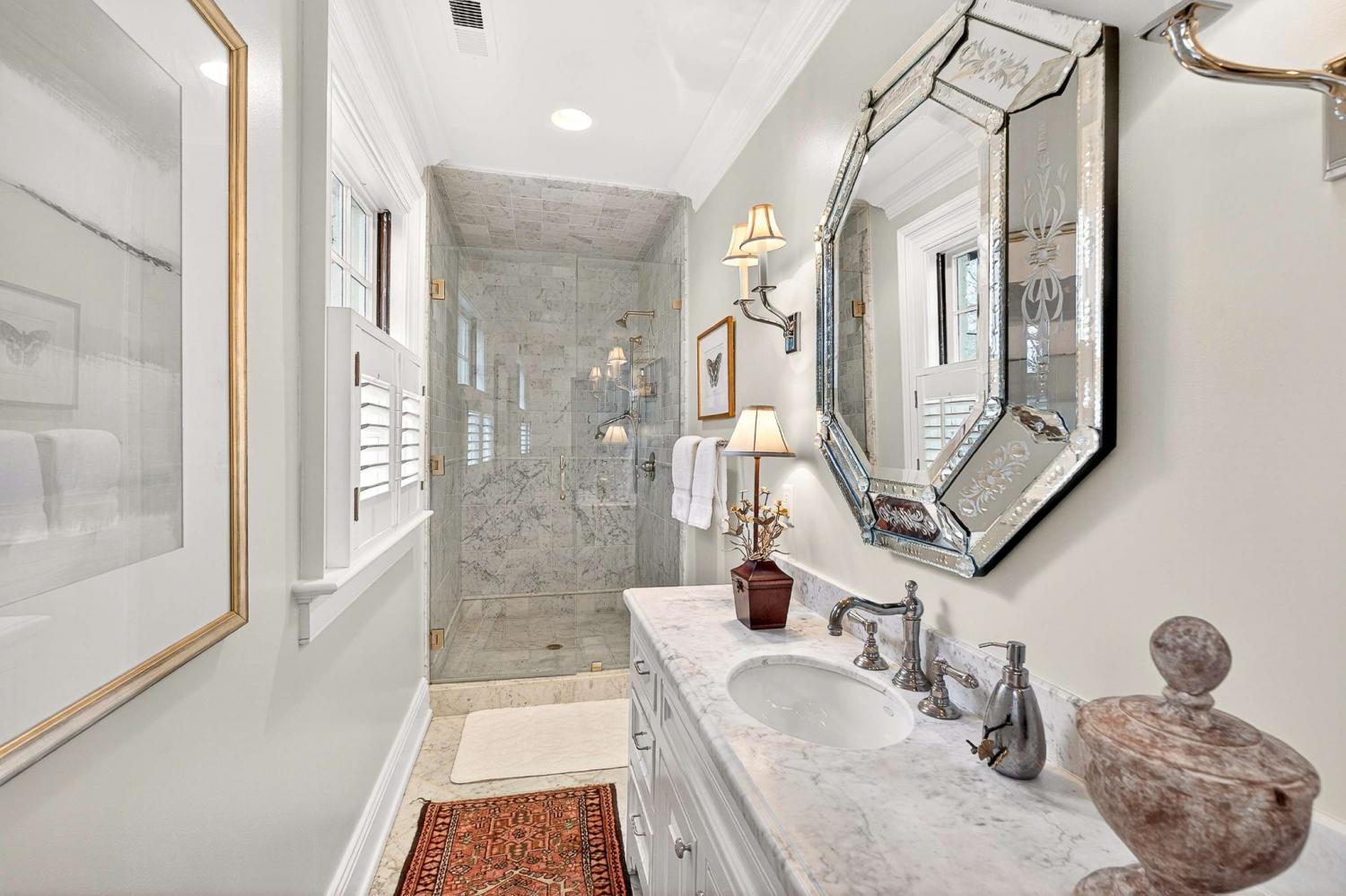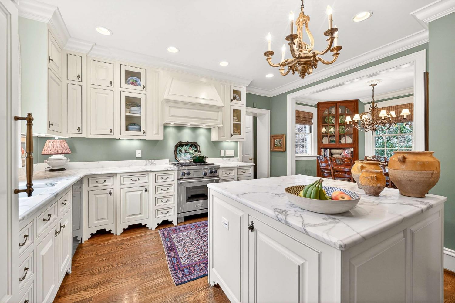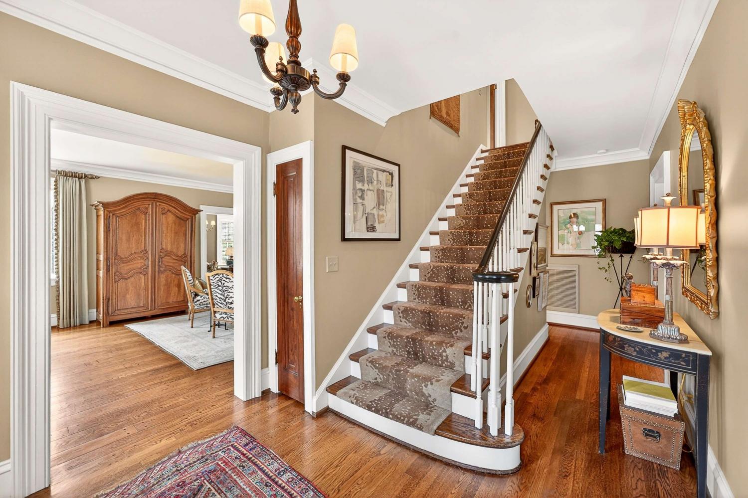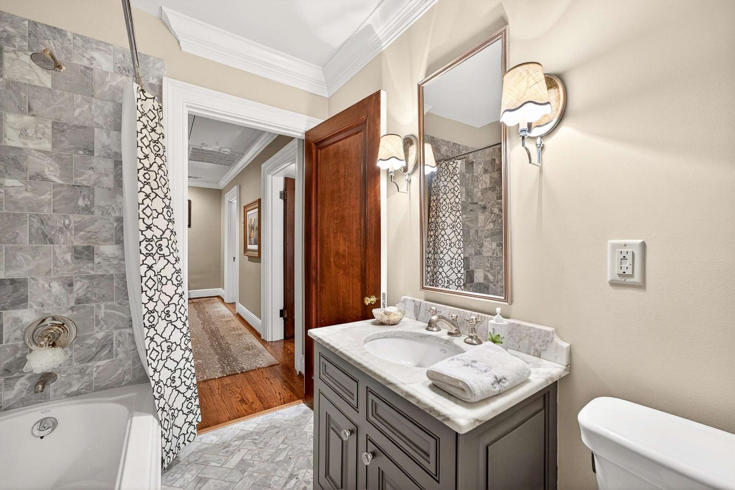 A distinguished Georgian estate, circa 1935, thoughtfully restored, expanded, and modernized for today’s luxury buyer in one of Nashville’s most coveted locations at Woodmont and Bowling, situated just minutes from Green Hills, Belle Meade, and West End. Set behind a 400-foot private drive and surrounded by mature landscaping, this architectural residence offers exceptional privacy, presence, and timeless curb appeal. The home features a traditional yet highly livable floor plan with expansive, well-proportioned rooms designed to accommodate both elevated entertaining and everyday living. Notable interior features include premium oak hardwoods, Marvin wood windows, heavy custom millwork, antique French and English chandeliers, and a seamless flow between formal and informal living spaces. The main level includes a formal dining room, living room, sunroom, family room, kitchen, and breakfast room, along with a primary suite wing inspired by historic Charleston architecture. A true standout is the lower-level limestone retreat, featuring original 18–24” thick stone walls, arched openings, antique iron sconces, and a dramatic family/game room with a limestone fireplace and herringbone brick flooring. Additional spaces include a library, wine cellar, rec room, and spacious laundry. All major systems have been extensively updated. Exterior highlights include copper gutters, a historically proportioned hipped roof, renovated front porch with Crab Orchard stone, Bevolo lantern, custom ironwork, irrigation, and landscape lighting. This is a rare opportunity to acquire a legacy property with architectural integrity and modern livability. *Side yard is level and could easily be fenced-in for more private green space - this area abuts Hilldale.*