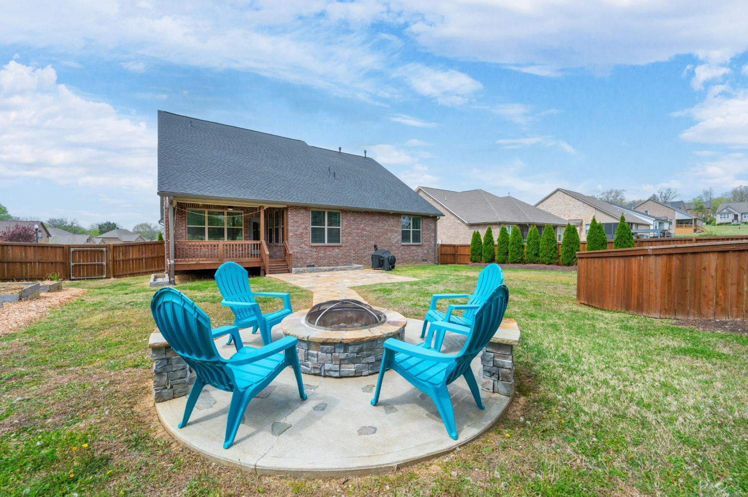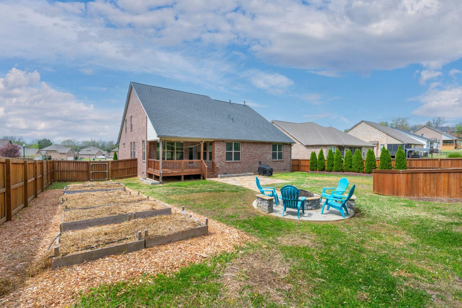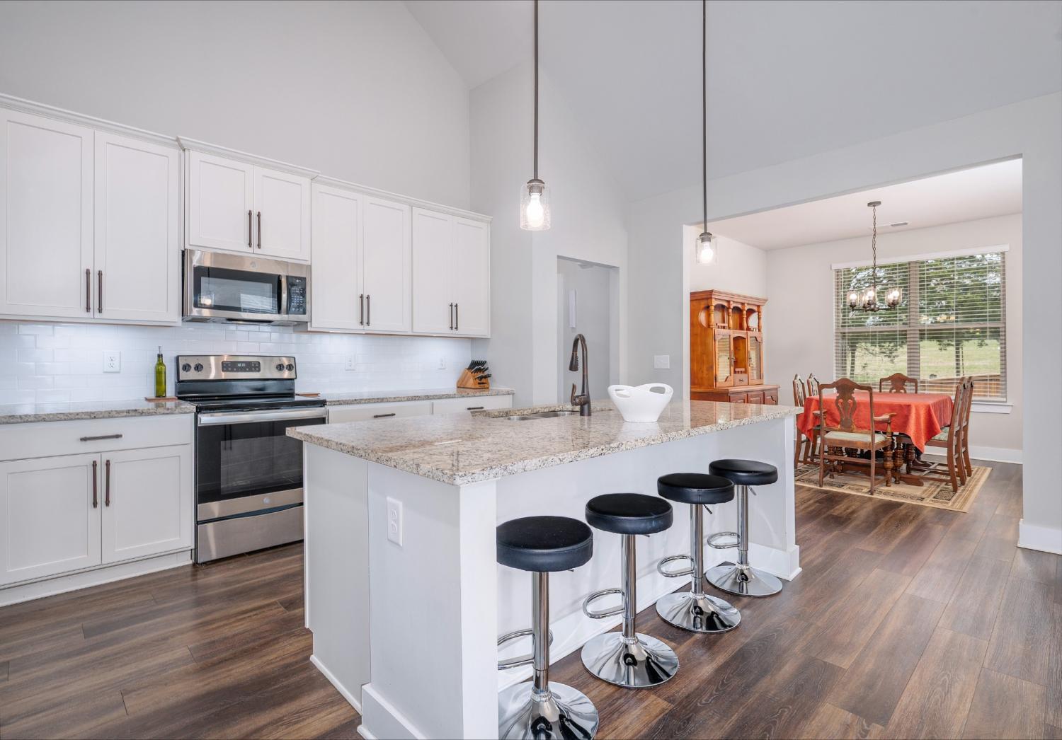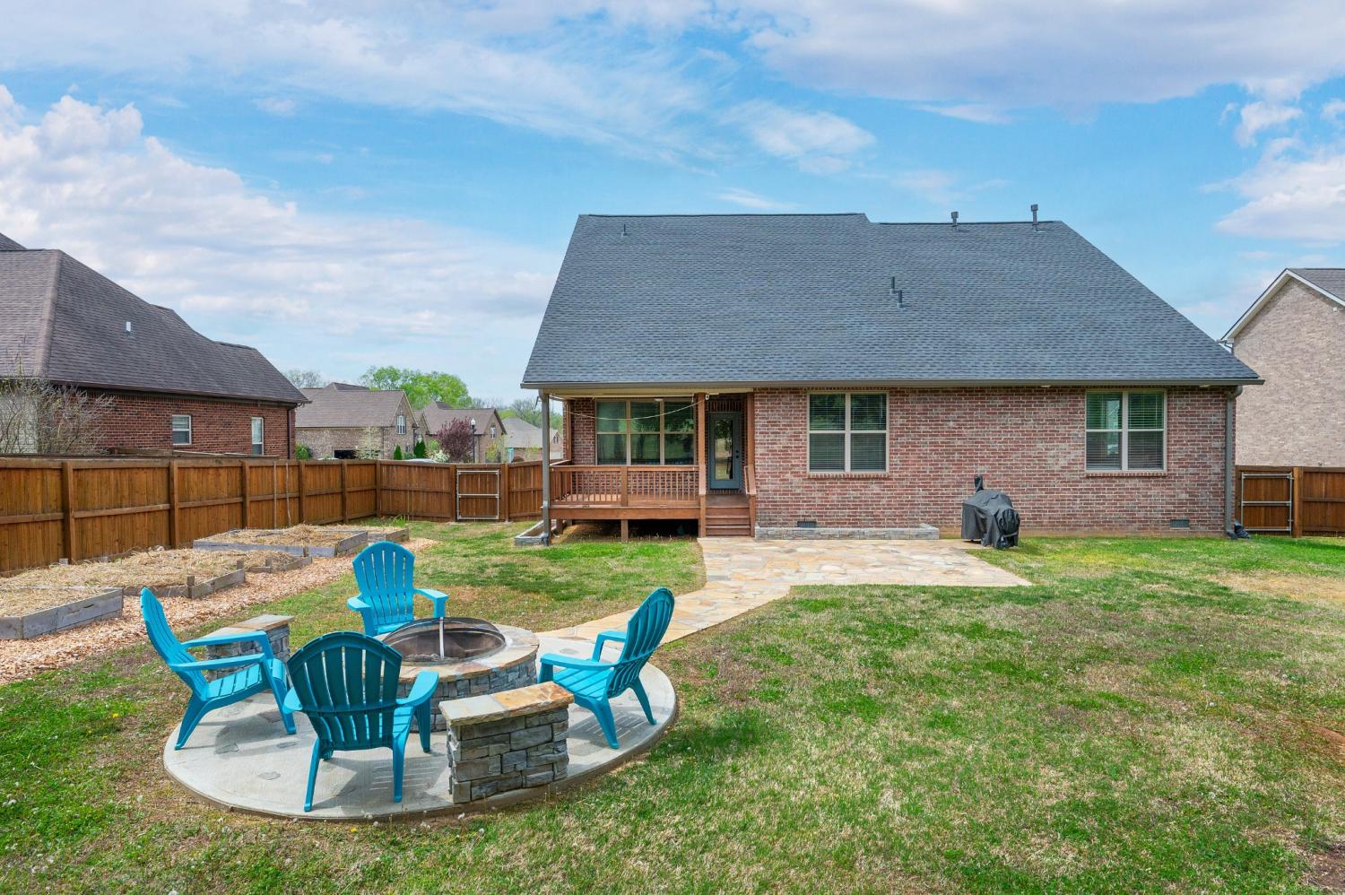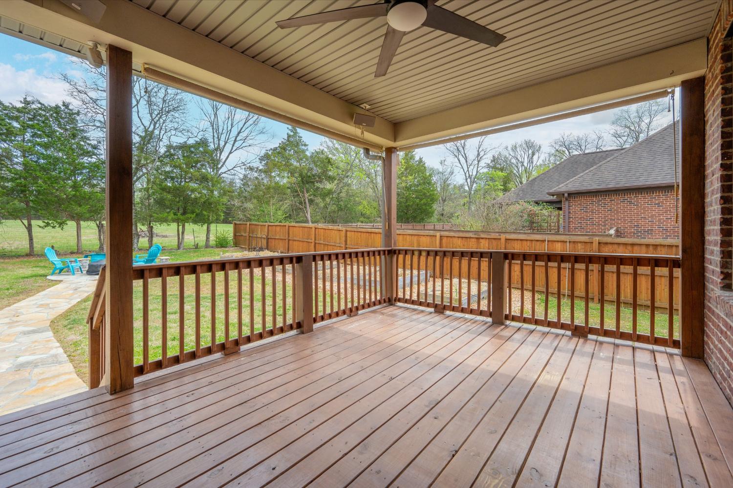 Beautifully Designed Home with Peaceful Views! This stunning home offers a perfect blend of timeless design and everyday comfort, featuring an open-concept layout with a spacious kitchen, granite countertops, tile backsplash, stainless steel appliances, and classic cabinetry. The owner’s suite is generously sized, and a functional study/flex space adds versatility for work or everyday living. Enjoy seamless indoor-outdoor living with a back patio and covered porch that invite you to slow down and take it all in. Mornings are filled with natural light pouring into the kitchen, creating the perfect start to your day, while evenings are best spent relaxing outside—listening to music and watching deer pass through the trees behind the home. With no rear neighbors, you can enjoy the view with added privacy and ease. The home’s beautiful exterior, mature surroundings, and thoughtful design create a warm, inviting setting that truly feels like home. Plus, it’s just minutes from the town’s park, charming town square, and additional shopping and dining. $5,000 concession to buyer with advantageous offer!