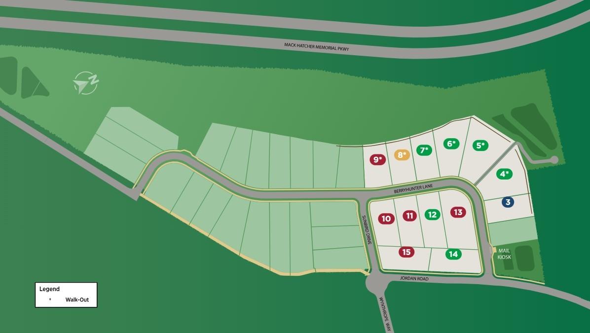 Exit 65 onto W McEwin. Turn left onto Jordan and community will be up the hill on the right.