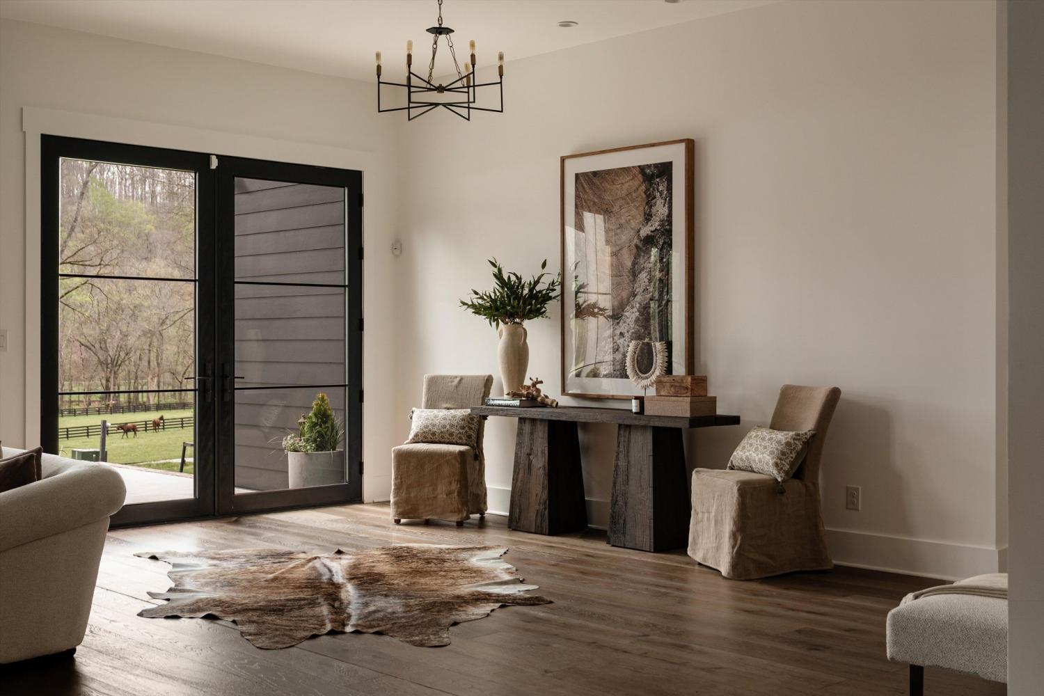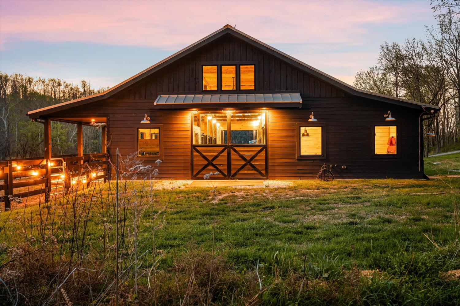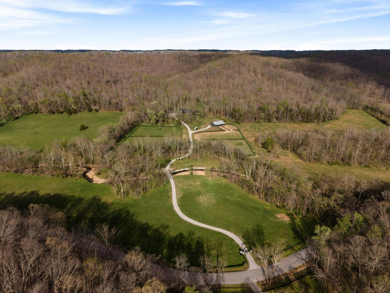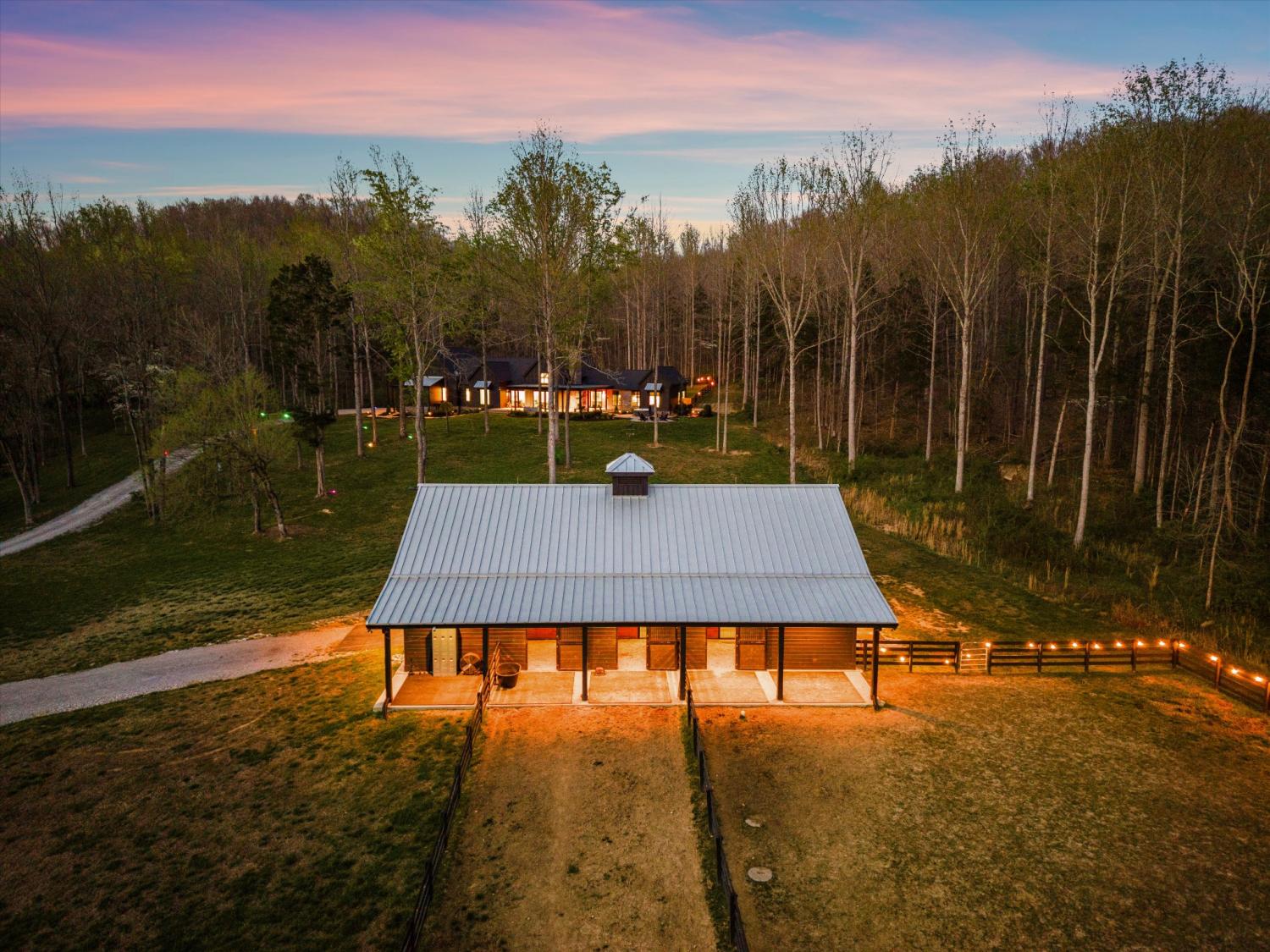 Welcome to East Fork Creek Farm, this rare legacy offering spans 31 breathtaking acres of privacy, beauty, and possibility. Gated and tucked well off the road, the custom-built home is surrounded by wildlife-filled woods, lush open pasture, and the peaceful East Fork Creek running along the property—creating a setting that feels both secluded and timeless. Approximately 15 acres are cleared and maintained—ideal for horses and recreation—while the remaining acreage is shaded by tall, majestic trees. Enjoy hiking your own wooded trails, riding horseback through rolling pasture, or simply taking in the quiet rhythm of East Fork Creek as it winds along the land. This is not just a home—it is a legacy property meant to be cherished for generations. Designed to harmonize with its natural surroundings, the one-level custom residence features 3 bedrooms and an open-concept floor plan anchored by expansive glass doors and windows that blur the line between indoors and out. Natural light pours in, and nearly every room captures serene views of the landscape beyond, reinforcing a seamless connection to the land. Equestrians will appreciate the thoughtfully constructed 6-stall horse barn, built with premium finishes including Classic Equine stall doors and Pella windows throughout. The barn also offers a comfortable lounge area, bathroom, and heated wash stall. Four paddocks provide ample turnout space, making the property exceptionally functional for horse owners while maintaining its refined aesthetic. An additional approved perk site provides the opportunity to build a guest house, offering flexibility for multi-generational living, visitors, or expanded estate potential. Accessible from HWY 96, Big East Fork Rd. gently winds through a beautiful tree-lined stretch that feels undiscovered and unspoiled. Here, tranquility, utmost privacy, and convenience to town converge—presenting a truly one-of-a-kind farm and a legacy opportunity rarely found.