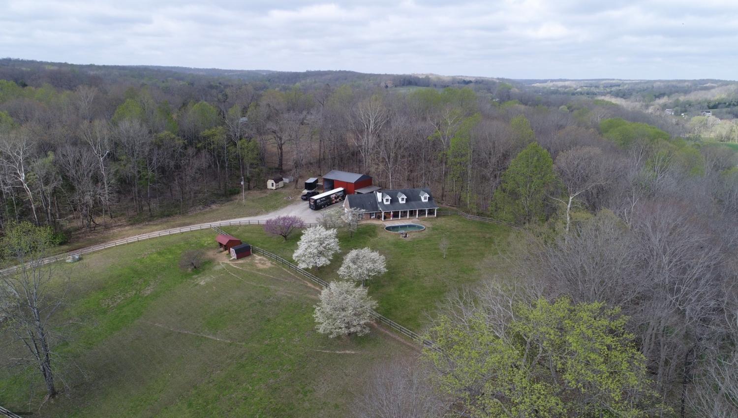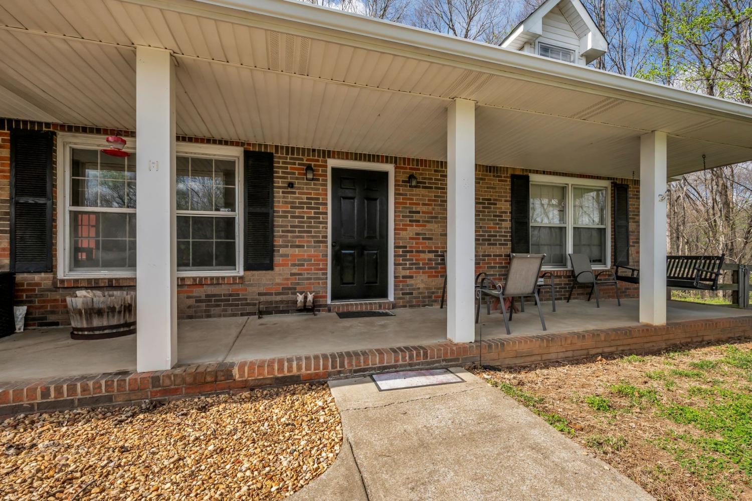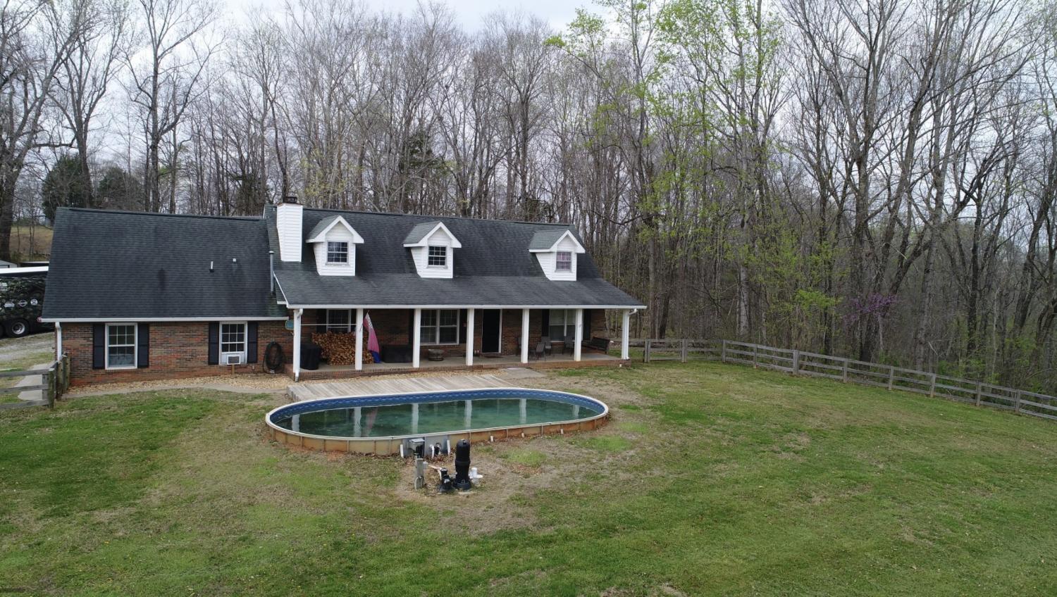 Peaceful country living on 9.68 acres! This 3 bedroom, 3 bathroom home offers the perfect blend of privacy and convenience. Enjoy a classic brick home with a covered front porch, spacious kitchen with custom cabinetry, bonus room with a full bathroom and closet, and a functional layout. Outside features a 40x30 shop with a mancave, fenced pastures, horse barn and a pool! This is a great opportunity for those looking for land, flexibility, and country living!