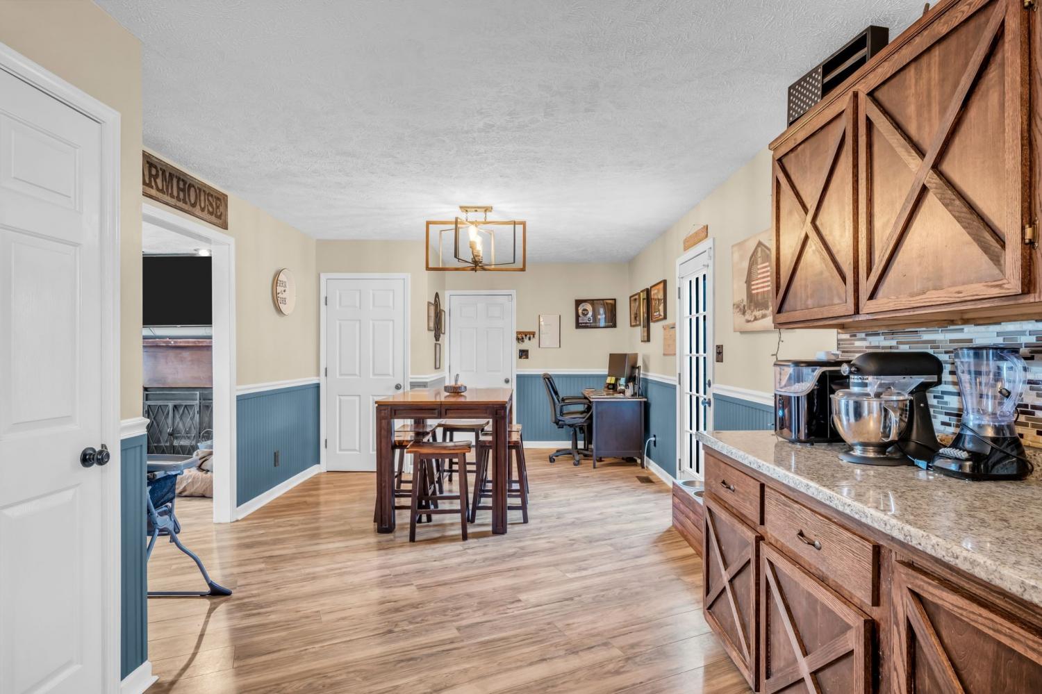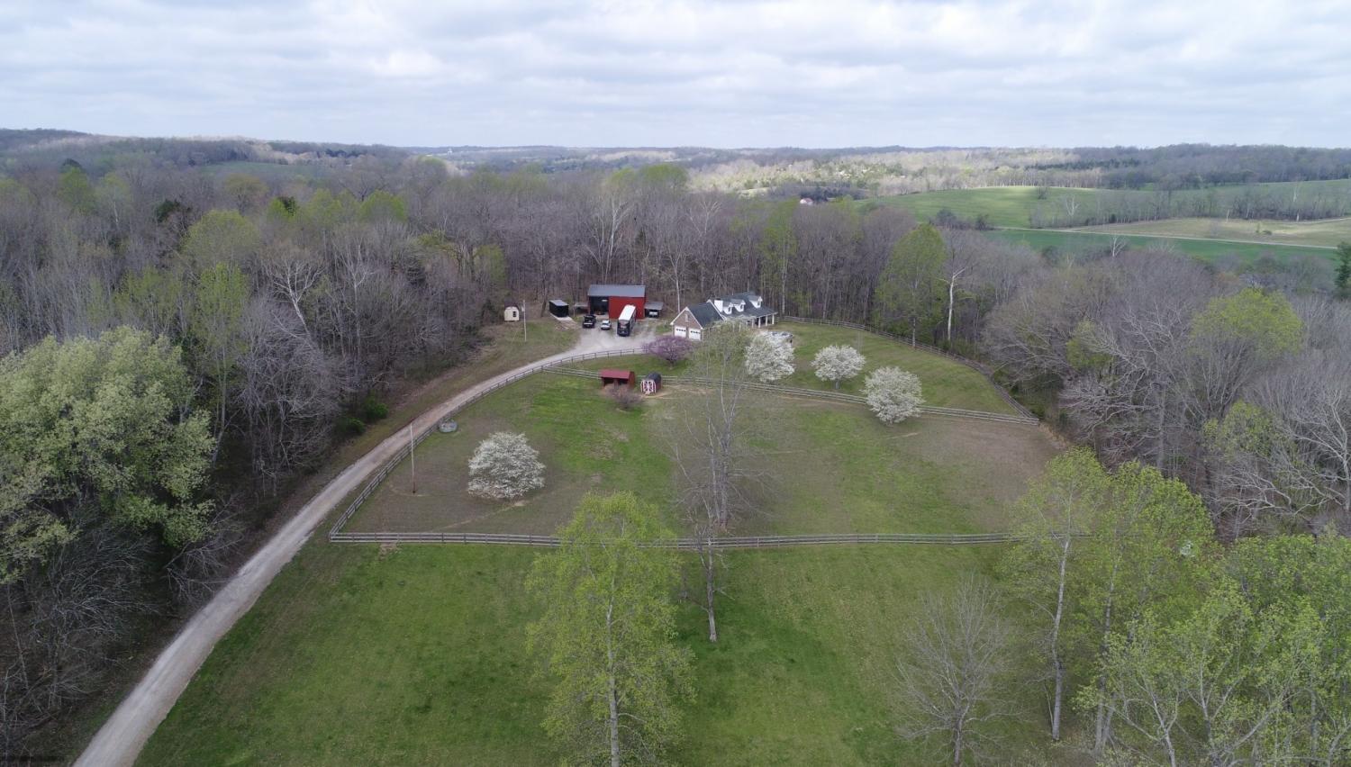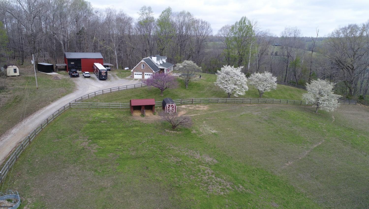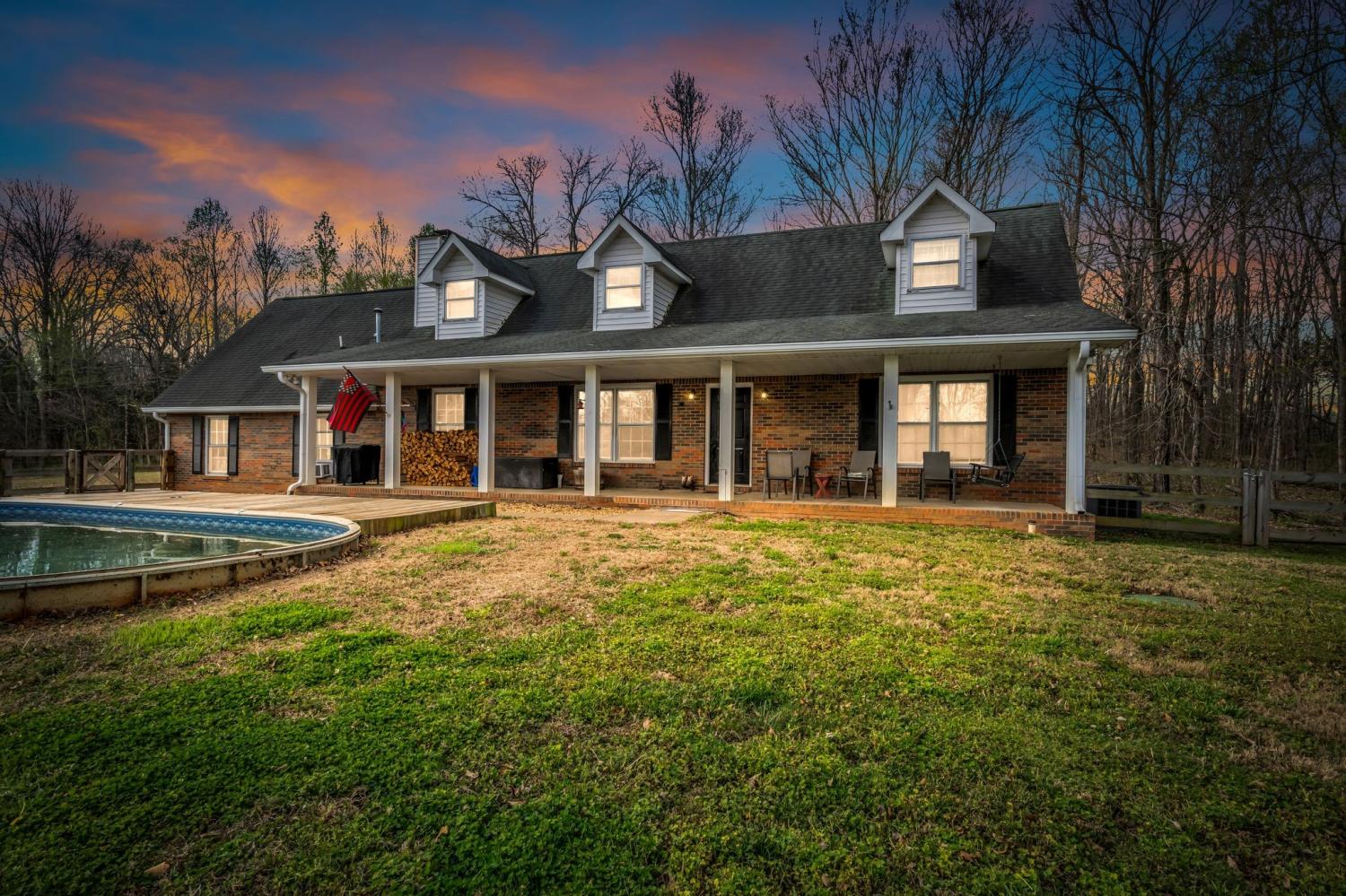 Peaceful country living on 9.68 acres! This 3 bedroom, 3 bathroom home offers the perfect blend of privacy and convenience. Enjoy a classic brick home with a covered front porch, spacious kitchen with custom cabinetry, bonus room with a full bathroom and closet, and a functional layout. Outside features a 40x30 shop with a mancave, fenced pastures, horse barn and a pool! This is a great opportunity for those looking for land, flexibility, and country living!