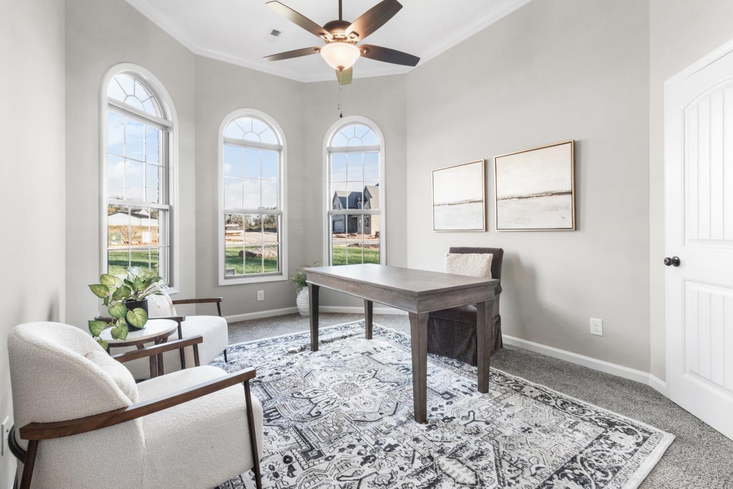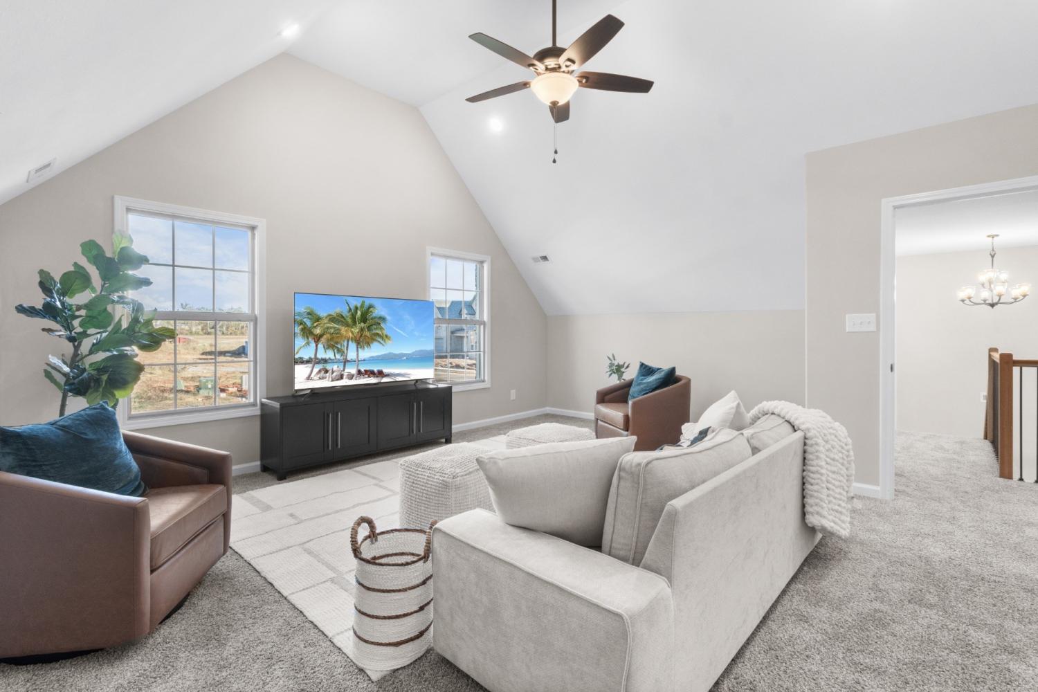 Under Construction - sample photos of home plan ONLY. Finishes may vary. Upgrades include Smart Home Technology, ceiling fans, custom tiled shower and crown molding and includes a one year builder's warranty. The Bellemeade is an elegant 2,707 sq. ft. plan with 4 bedrooms and 3 bathrooms. The two-story great room creates a bright, airy atmosphere. The main level is designed for effortless living, featuring a formal dining room, a luxurious primary suite, and a gourmet kitchen with an island and walk-in pantry. An additional main-level bedroom can serve as a cozy sitting area or home office. Upstairs, two more bedrooms and a spacious bonus room complete this beautiful home.