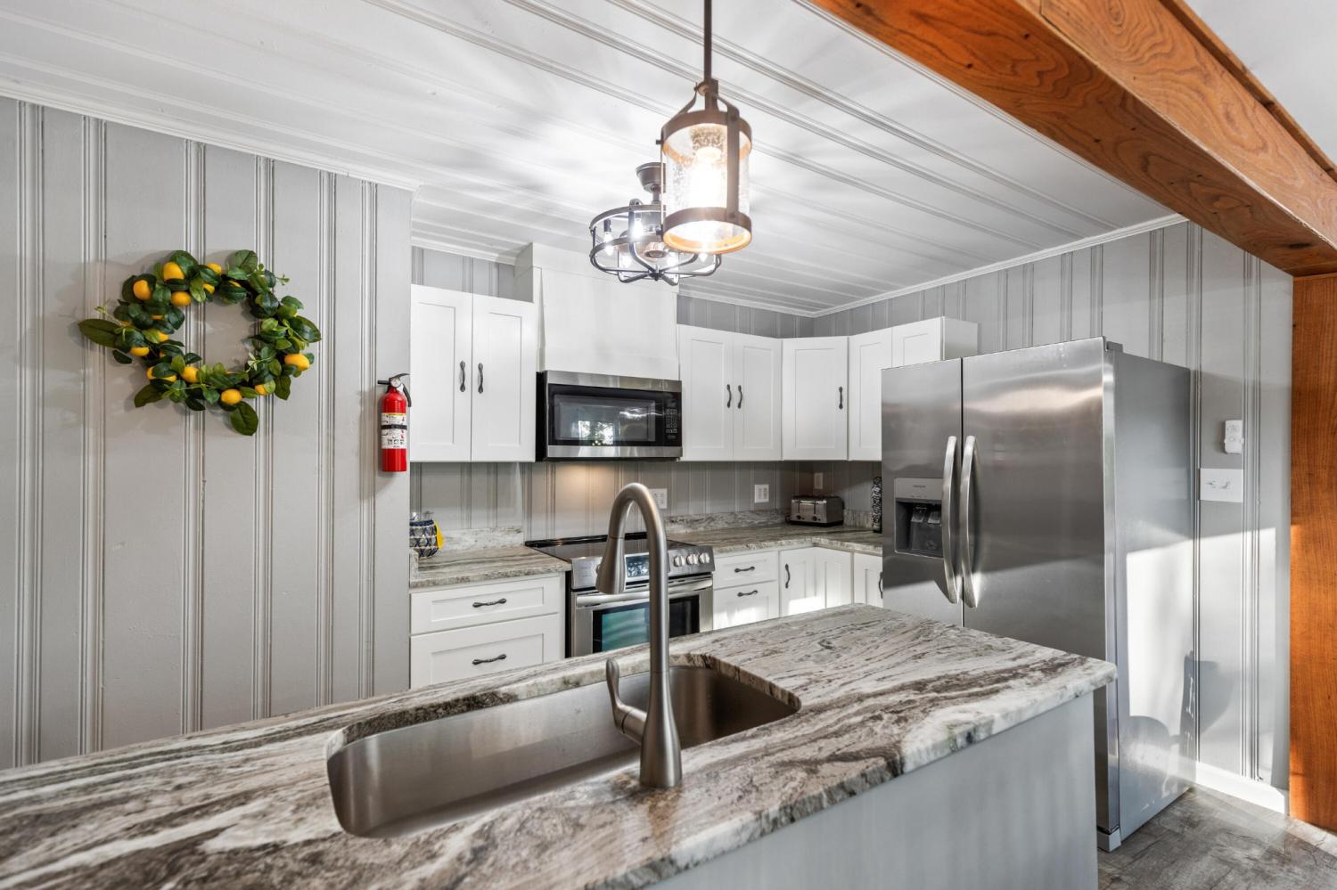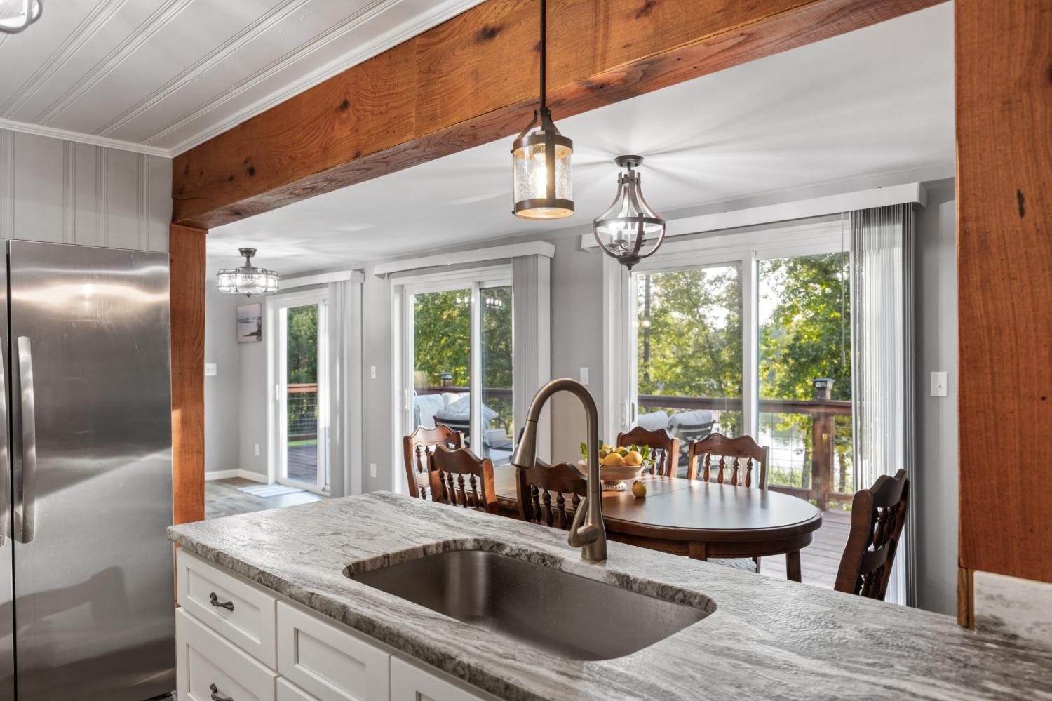 Experience the pinnacle of RIVERFRONT living on the coveted Chickamauga River that flows into Tennessee River. This meticulously updated fully furnished 3-bedroom, 2-bath sanctuary offers a rare combination of luxury and utility, featuring 194 feet of perfectly flat, manicured shoreline. Launch your boat from your private on-site ramp or spend your afternoons on the two-year-old custom dock and expansive back deck, designed specifically to capture the region's most breathtaking sunset views. The interior is a masterclass in River Chic design, boasting an open-concept floor plan with gorgeous tongue and groove ceilings, a cozy gas fireplace with custom built-ins, and luxury vinyl plank flooring throughout. The chef's kitchen shines with fresh white cabinetry, gleaming granite countertops, and premium stainless steel appliances, spacious dining are with two sets of sliding glass doors facing the water, the river is always your backdrop. The thoughtful layout includes a main level bedroom and full bath with a custom tile shower, while the upper level features a spacious bedroom and a second full bath with a beautiful tile tub/shower combo. The flexible third bedroom is currently utilized as a functional flex space/rec room with a pool table and its own sliding glass doors to capture the view. Outside, the amenities continue with a waterside firepit, a mounted swing, and a relaxing hammock by the water's edge. Whether you're cruising a few miles down to Cottonport Marina for dinner or enjoying the world class fishing from your backyard! If you are looking for your primary residentials, vacation home or short term rental this fully furnished, turnkey property is the investment of a lifetime. Come be part of the awesome River Life! Call for your private showing today!