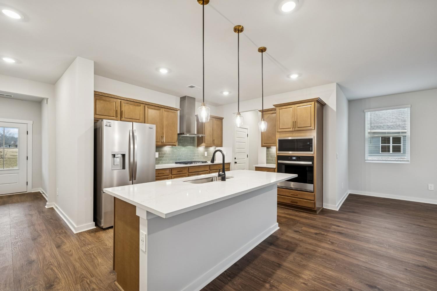 RED TAG SALE! Move in by June! The Belfort Plan offers a spacious, modern design ideal for families seeking comfort and style. This two-story home spans 2,267 sq ft and features 4 bedrooms and 2.5 bathrooms, providing plenty of space for relaxation and entertaining. The primary bedroom is conveniently located on the first floor, complete with an en-suite bath showcasing modern finishes and ample closet space. The open-concept kitchen is the heart of the home, with sleek quartz countertops that combine function and style. It flows seamlessly into the great room and dining area, creating a perfect space for gatherings or quality family time. Upstairs, three additional bedrooms and a full bathroom offer flexibility for family, guests, or a home office. The home also features a spacious bonus room upstairs, perfect for an additional living space! Equipped with smart home technology, the Belfort lets you easily control lighting, security, and climate for added convenience and peace of mind. A 2-car garage provides ample storage and vehicle space. The Belfort blends luxury, comfort, and modern convenience. Take advantage of a 4.99% fixed rate and $10k in closing costs with DHI Mortgage, our in-house lender. Come walk through this plan or call today to learn more about the Belfort at Harvest Point, Spring Hill, TN.