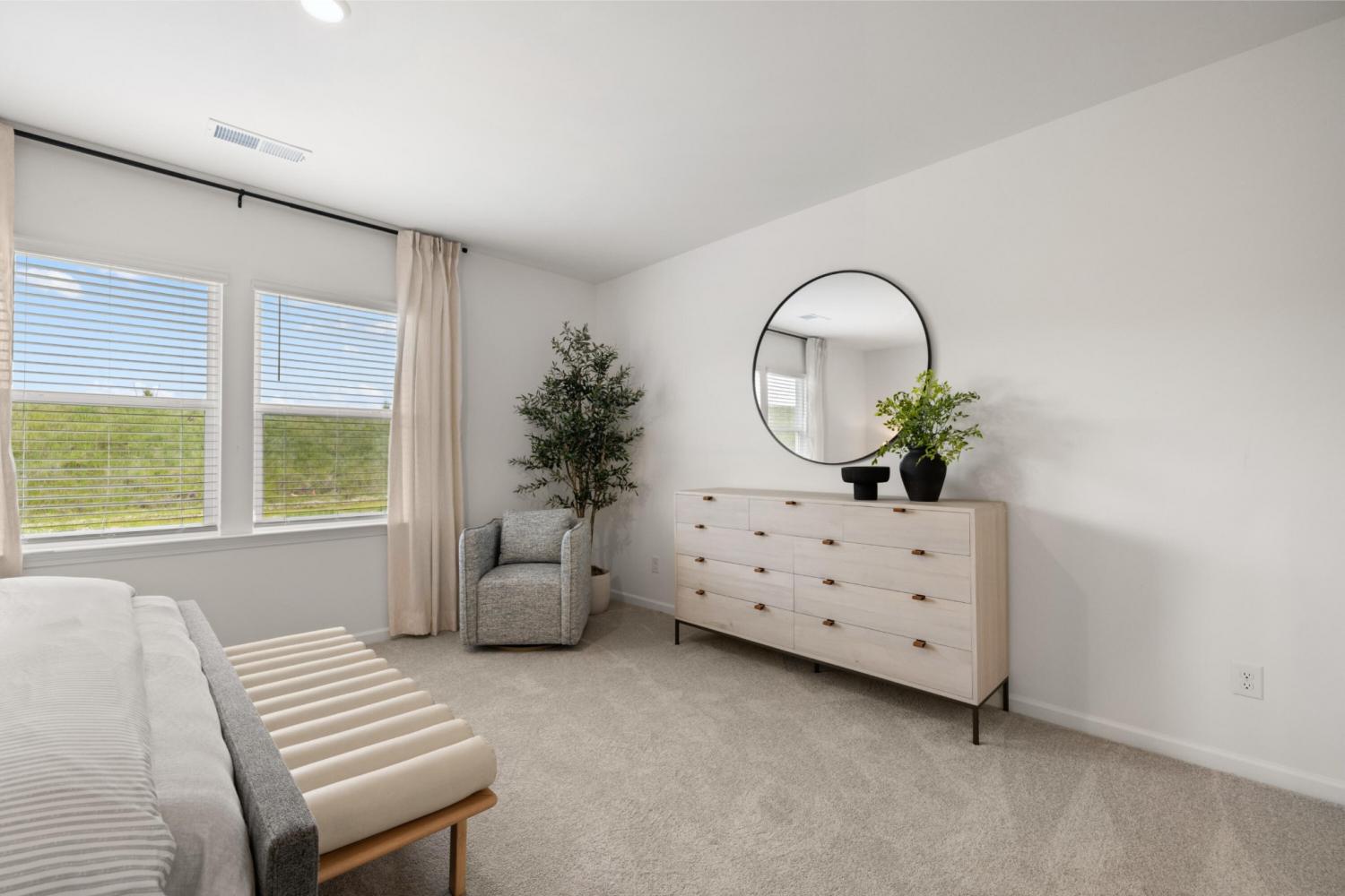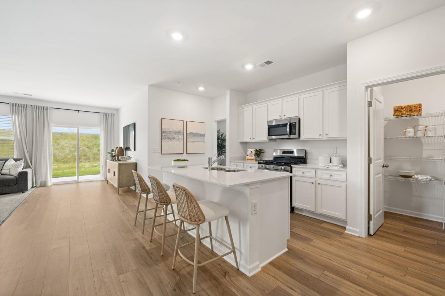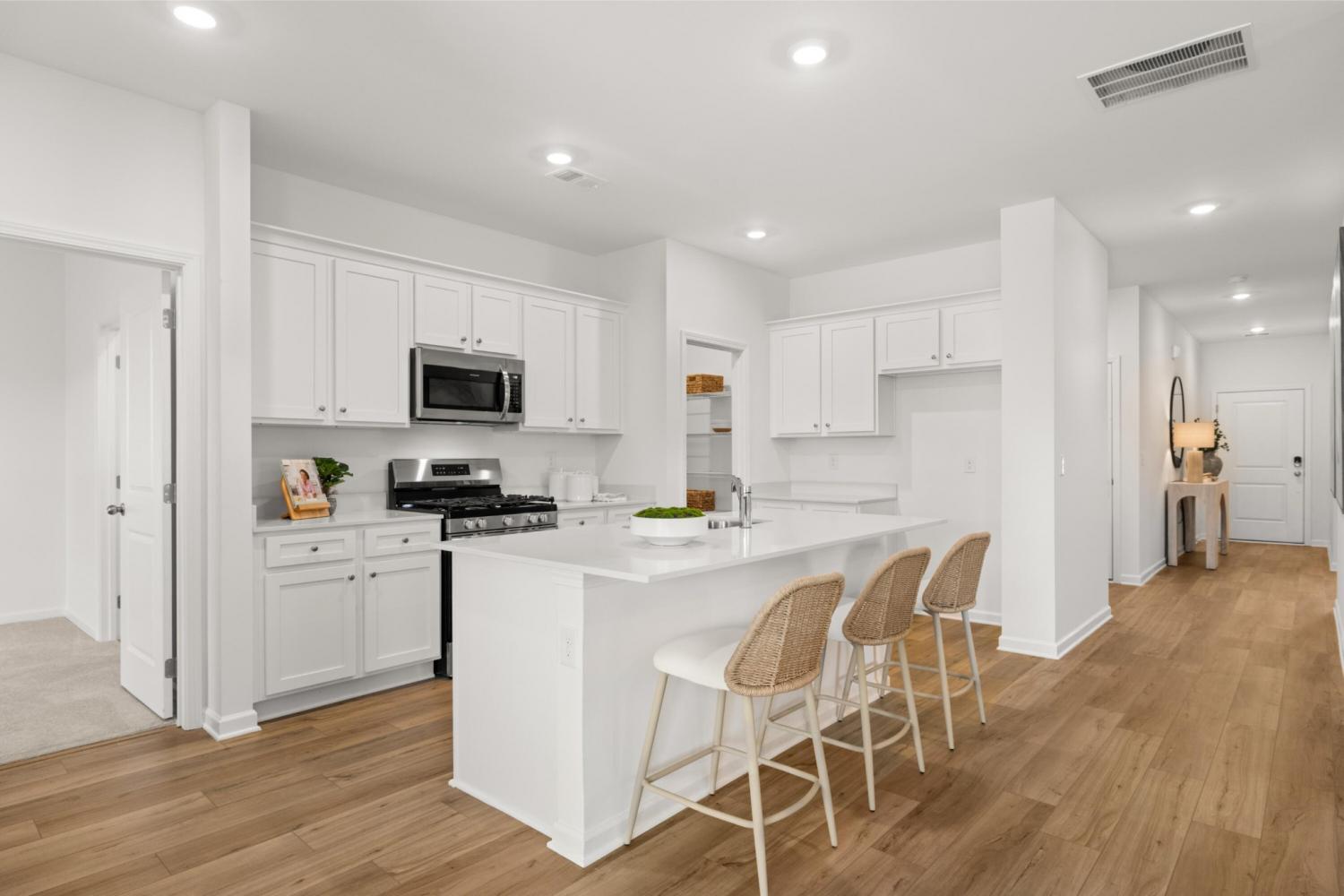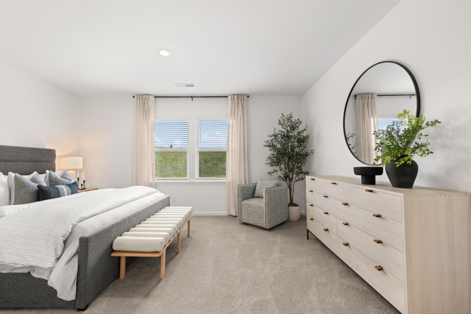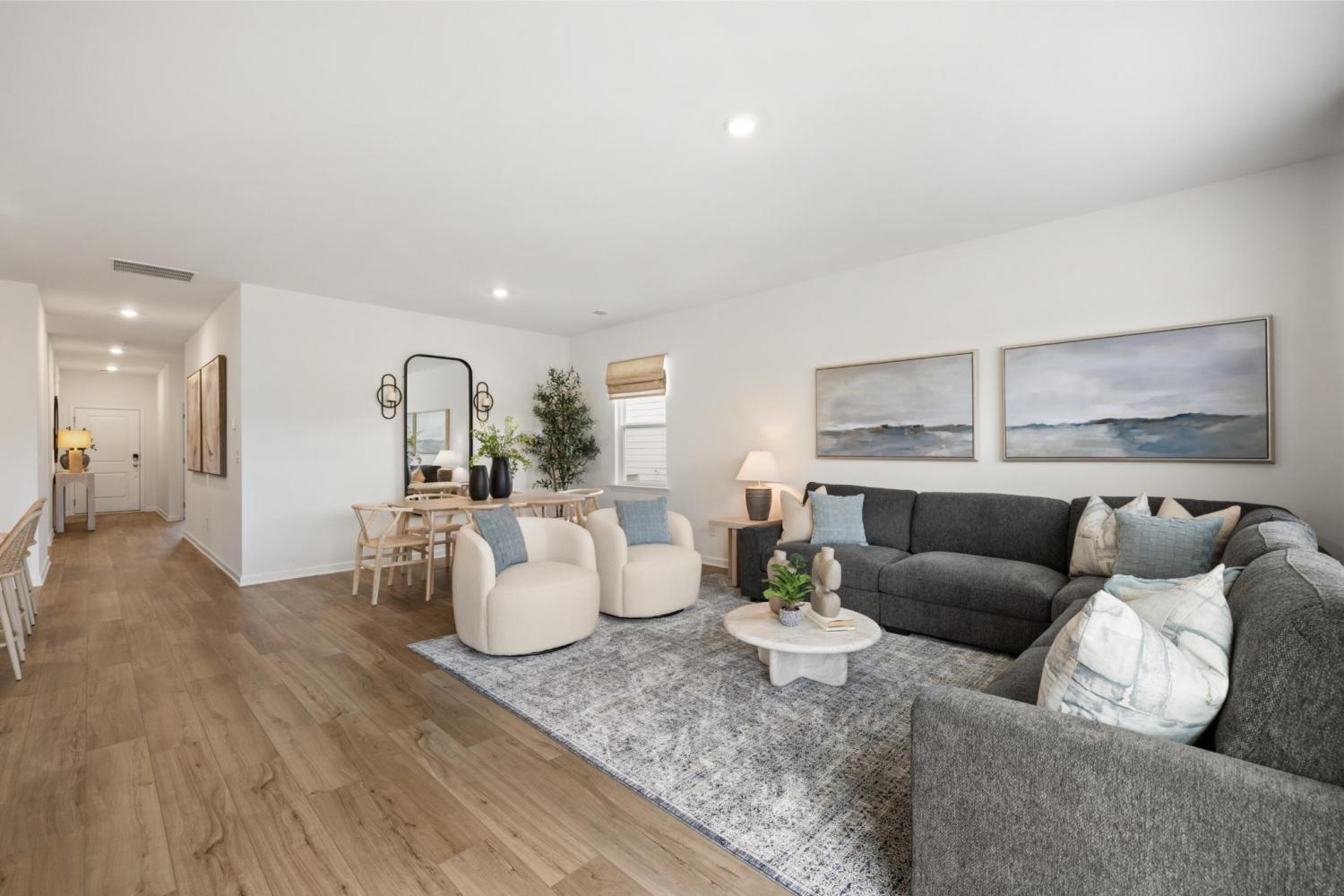 When you walk through the door of the Alan floorplan, you're welcomed by a wide, inviting entryway that immediately sets the tone for this spacious one level home. To your left, two large guest bedrooms sit alongside a well appointed guest bathroom and a conveniently located linen closet, creating a comfortable and functional front wing of the home. To your right, you'll find access to the garage, a generously sized laundry room--now complete with an included washer and dryer--and an additional coat closet, providing excellent storage and everyday practicality. As you continue forward, the home opens into an expansive, light filled living area. The kitchen features an oversized quartz island, a large walk in pantry, a gas stove, and now comes fully equipped with a refrigerator, making move in effortless. The dedicated dining area and spacious living room flow seamlessly together, perfect for hosting or relaxing. Just past the kitchen, the owner's suite offers a peaceful retreat with ample space for a king sized bed, double sinks in the bathroom, an additional linen closet, and a generous walk in closet. Perfectly situated within the community, this home places you just a short walk from the future pool--bringing convenience and outdoor enjoyment right to your doorstep. This is truly one level living at its finest. All color choices have been made, photos are of a similar home. Home will be completed approx Mid June.