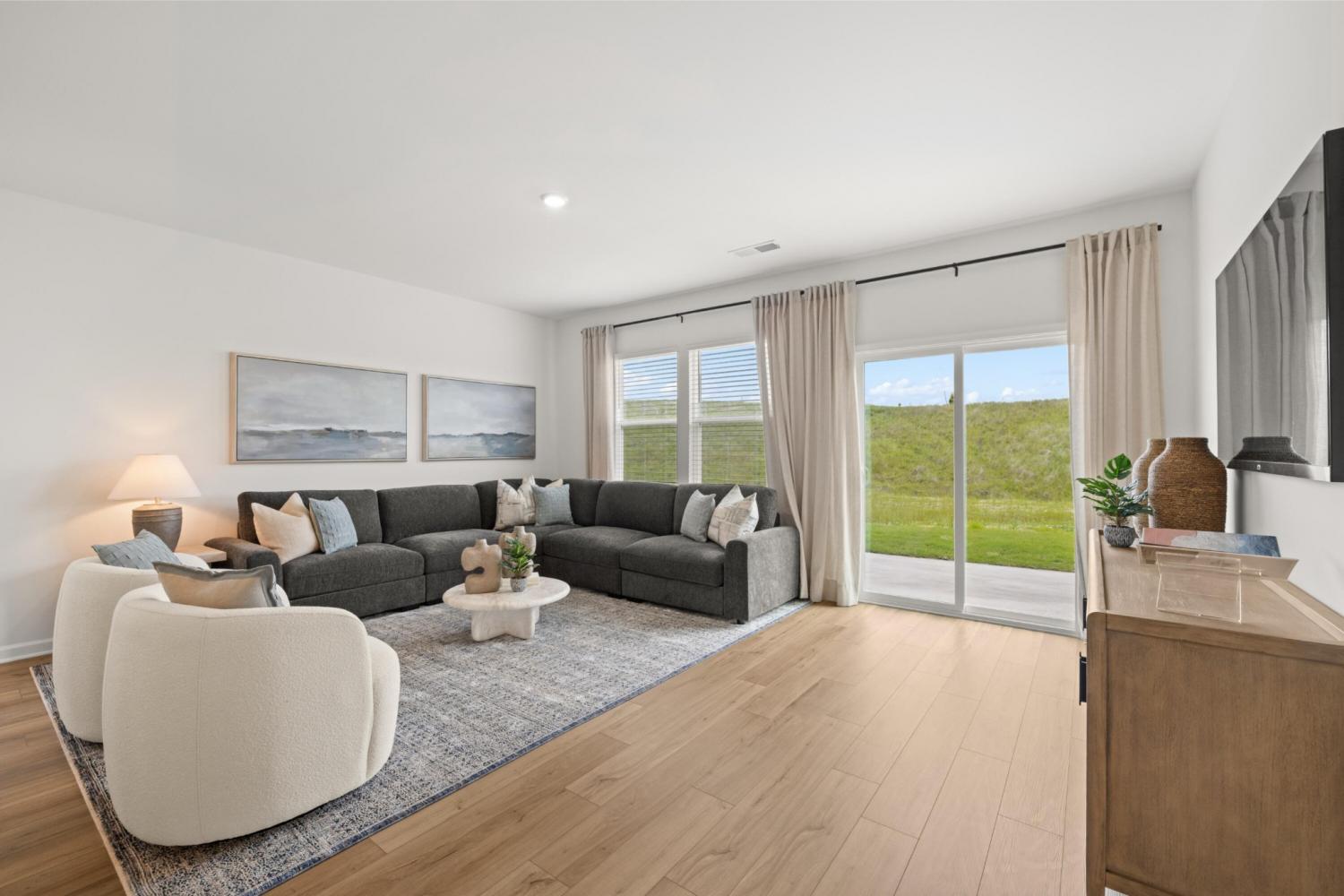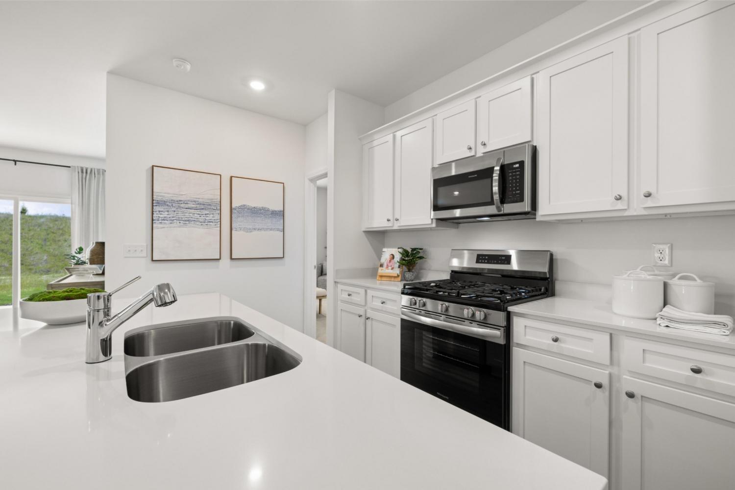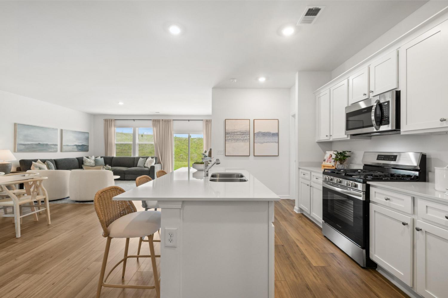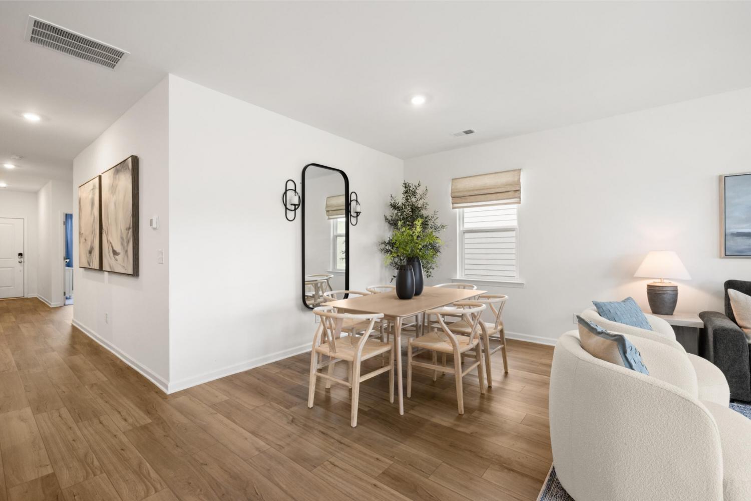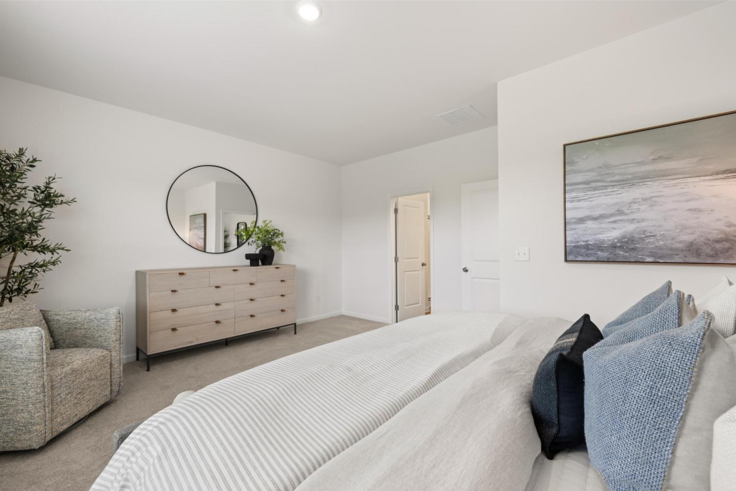 When you walk through the door of the Alan floorplan, you're welcomed by a wide, inviting entryway that immediately sets the tone for this spacious one level home. To your left, two large guest bedrooms sit alongside a well appointed guest bathroom and a conveniently located linen closet, creating a comfortable and functional front wing of the home. To your right, you'll find access to the garage, a generously sized laundry room--now complete with an included washer and dryer--and an additional coat closet, providing excellent storage and everyday practicality. As you continue forward, the home opens into an expansive, light filled living area. The kitchen features an oversized quartz island, a large walk in pantry, a gas stove, and now comes fully equipped with a refrigerator, making move in effortless. The dedicated dining area and spacious living room flow seamlessly together, perfect for hosting or relaxing. Just past the kitchen, the owner's suite offers a peaceful retreat with ample space for a king sized bed, double sinks in the bathroom, an additional linen closet, and a generous walk in closet. Perfectly situated within the community, this home places you just a short walk from the future pool--bringing convenience and outdoor enjoyment right to your doorstep. This is truly one level living at its finest. All color choices have been made, photos are of a similar home. Home will be completed approx Mid June.
