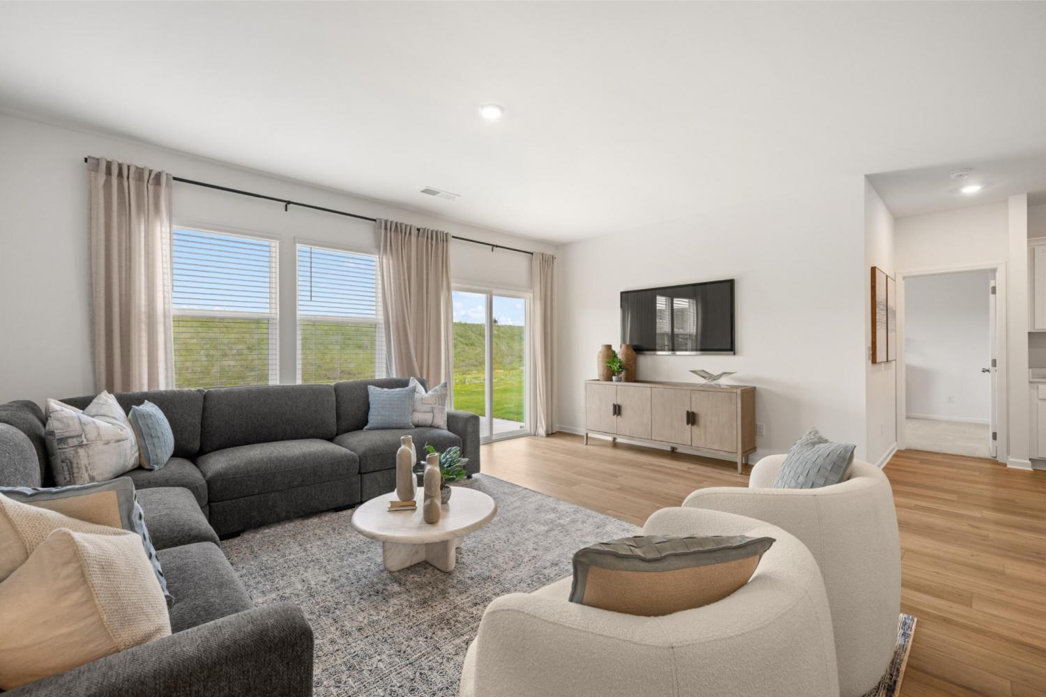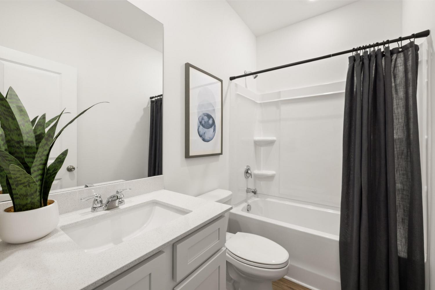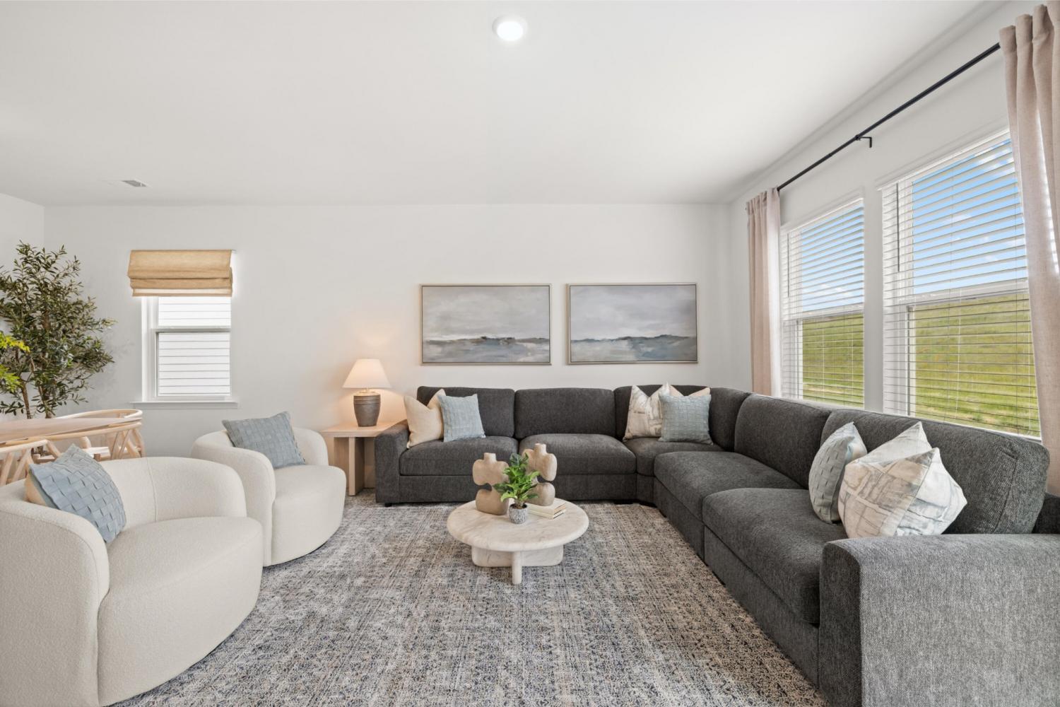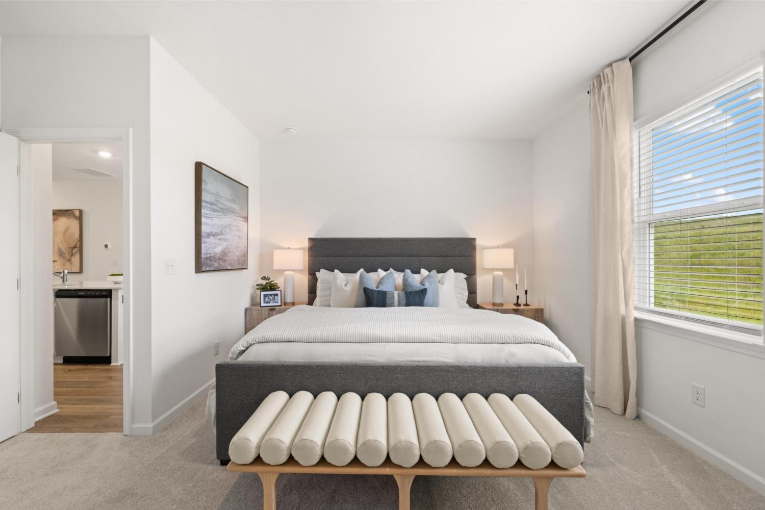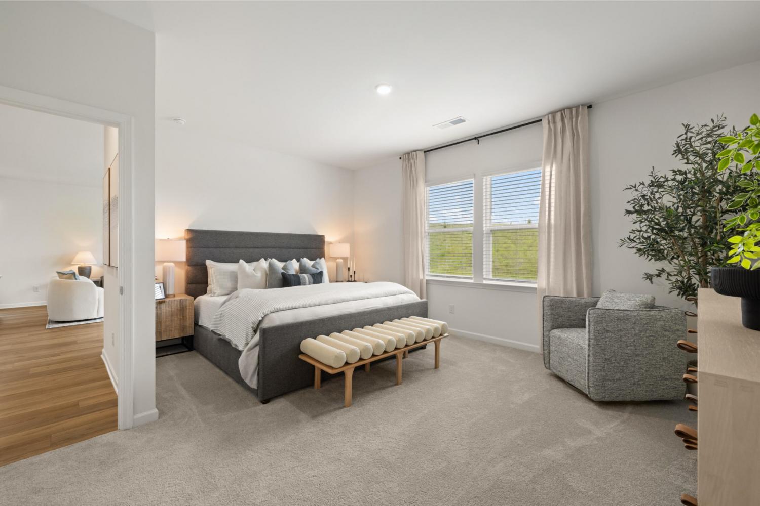 When you walk through the door of the Alan floorplan, you're welcomed by a wide, inviting entryway that immediately sets the tone for this spacious one level home. To your left, two large guest bedrooms sit alongside a well appointed guest bathroom and a conveniently located linen closet, creating a comfortable and functional front wing of the home. To your right, you'll find access to the garage, a generously sized laundry room--now complete with an included washer and dryer--and an additional coat closet, providing excellent storage and everyday practicality. As you continue forward, the home opens into an expansive, light filled living area. The kitchen features an oversized quartz island, a large walk in pantry, a gas stove, and now comes fully equipped with a refrigerator, making move in effortless. The dedicated dining area and spacious living room flow seamlessly together, perfect for hosting or relaxing. Just past the kitchen, the owner's suite offers a peaceful retreat with ample space for a king sized bed, double sinks in the bathroom, an additional linen closet, and a generous walk in closet. Perfectly situated within the community, this home places you just a short walk from the future pool--bringing convenience and outdoor enjoyment right to your doorstep. This is truly one level living at its finest. All color choices have been made, photos are of a similar home. Home will be completed approx Mid June.