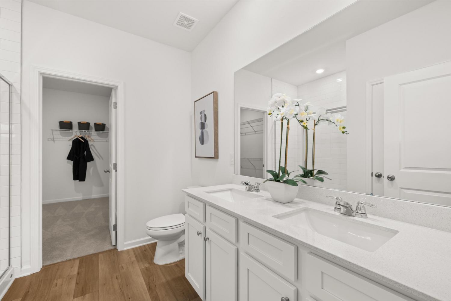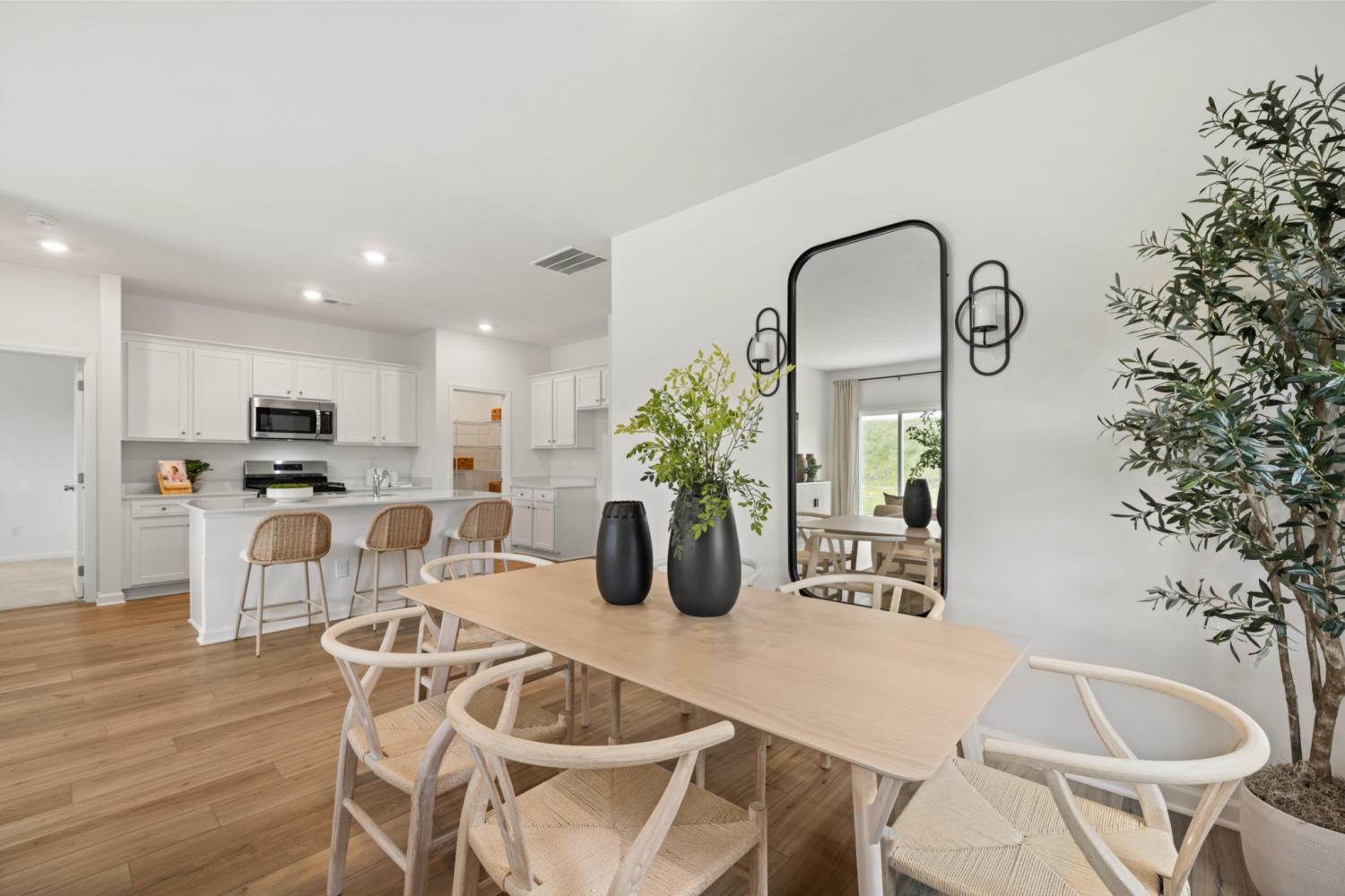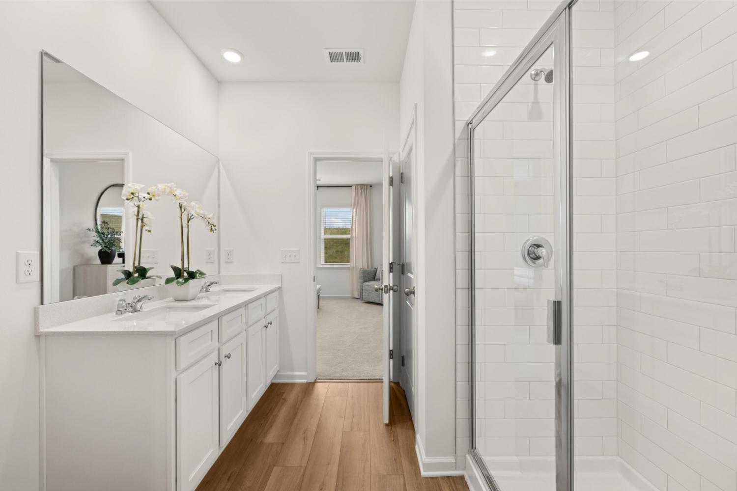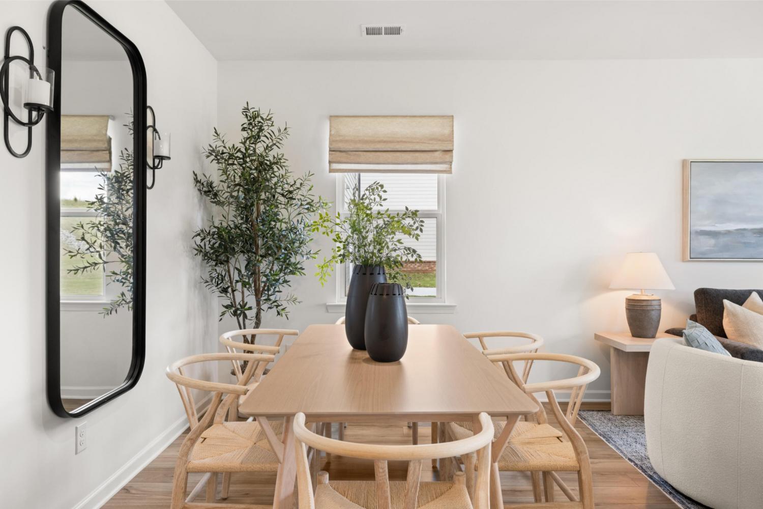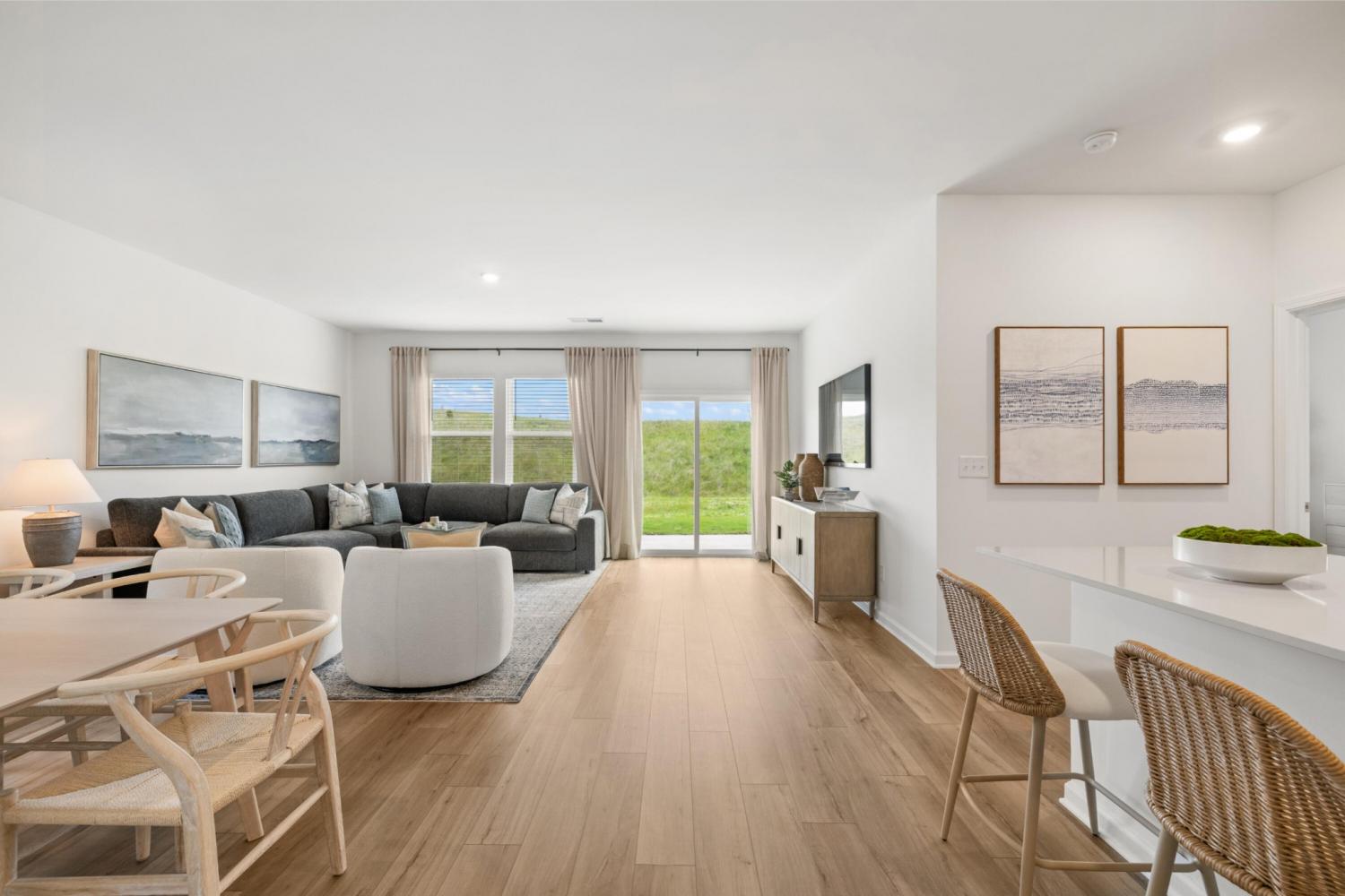 When you walk through the door of the Alan floorplan, you're welcomed by a wide, inviting entryway that immediately sets the tone for this spacious one level home. To your left, two large guest bedrooms sit alongside a well appointed guest bathroom and a conveniently located linen closet, creating a comfortable and functional front wing of the home. To your right, you'll find access to the garage, a generously sized laundry room--now complete with an included washer and dryer--and an additional coat closet, providing excellent storage and everyday practicality. As you continue forward, the home opens into an expansive, light filled living area. The kitchen features an oversized quartz island, a large walk in pantry, a gas stove, and now comes fully equipped with a refrigerator, making move in effortless. The dedicated dining area and spacious living room flow seamlessly together, perfect for hosting or relaxing. Just past the kitchen, the owner's suite offers a peaceful retreat with ample space for a king sized bed, double sinks in the bathroom, an additional linen closet, and a generous walk in closet. Perfectly situated within the community, this home places you just a short walk from the future pool--bringing convenience and outdoor enjoyment right to your doorstep. This is truly one level living at its finest. All color choices have been made, photos are of a similar home. Home will be completed approx Mid June.