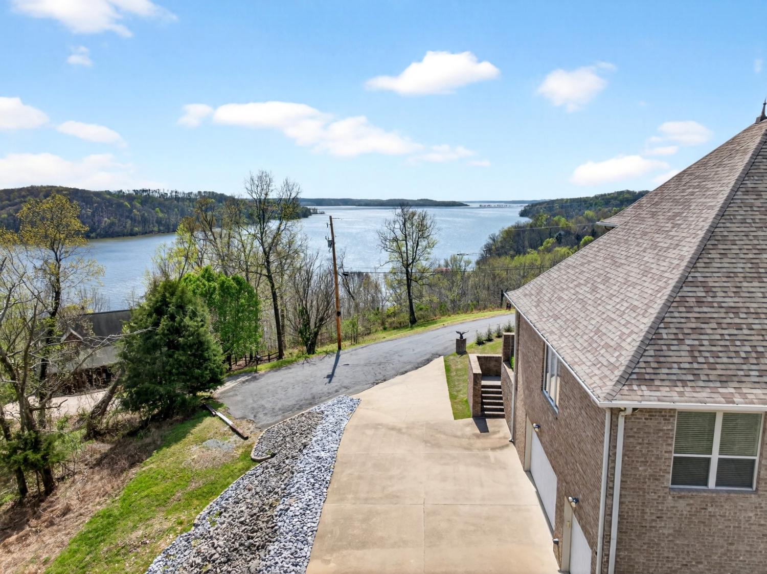 Experience luxury in this all-brick 4-bed, 3-bath home featuring a million-dollar view of the TN River. Though not waterfront, the panoramic vista creates a perfect riverside feel. The interior features etched Italian porcelain floors, Turkish marble countertops, and remote-controlled blinds for the expansive viewing windows. Recent upgrades include a one-year-old roof (135mph wind warranty), ultra-plush carpets, redone stair treads, and a built-in water filtration system that conveys. For peace of mind, the home includes a secure safe room with 2ft-thick concrete walls. Located just across the bay from Fat Daddy’s restaurant and marina, perfect for easy summer fun and breathtaking sunsets.