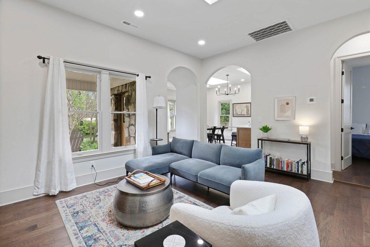 Welcome to this charming cottage in the heart of highly sought-after Historic St. Elmo! This beautifully updated 2-bedroom, 2-bath home was renovated less than two years ago and has been thoughtfully maintained, blending timeless character with modern comfort. Step inside to find soaring ceilings, abundant natural light from skylights in the living room, and a cozy decorative fireplace that anchors the space. The built-in bar adds the perfect touch for entertaining, while the open, airy feel makes the home both inviting and functional. Enjoy peaceful mornings or relaxing evenings on the spacious covered front and side porches with a fence; great for kids and pets to enjoy the yard. A private driveway offers convenient off-street parking, a rare find in this charming neighborhood. Located just a short walk to local restaurants, shops, and all that St. Elmo has to offer--and only minutes from the scenic beauty of Lookout Mountain--this home truly combines lifestyle and location. Don't miss your chance to own a piece of one of Chattanooga's most beloved communities!