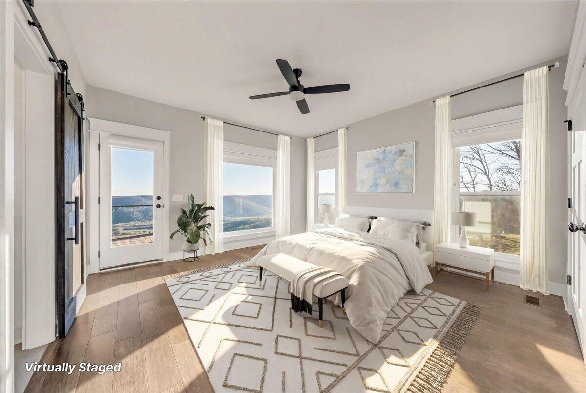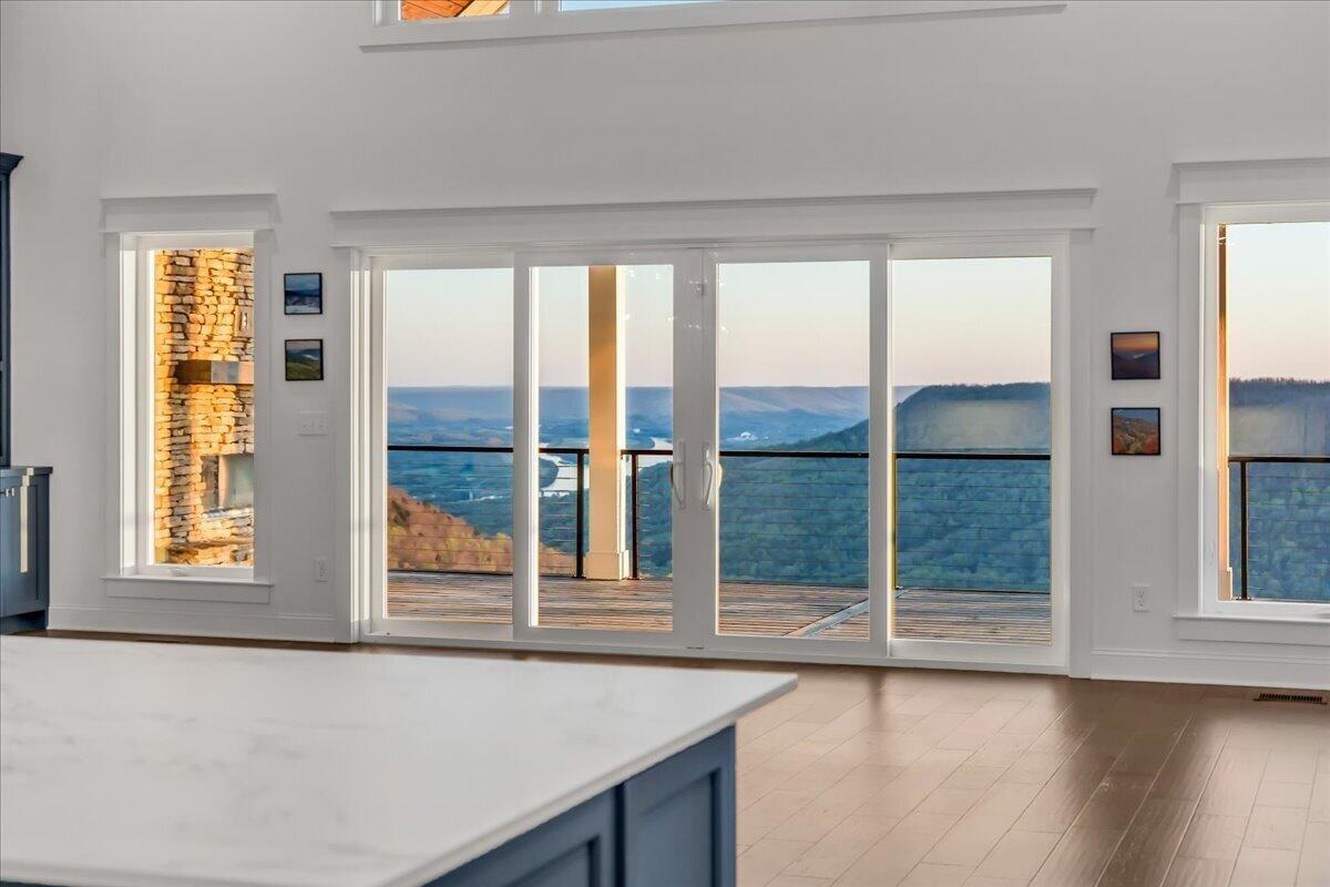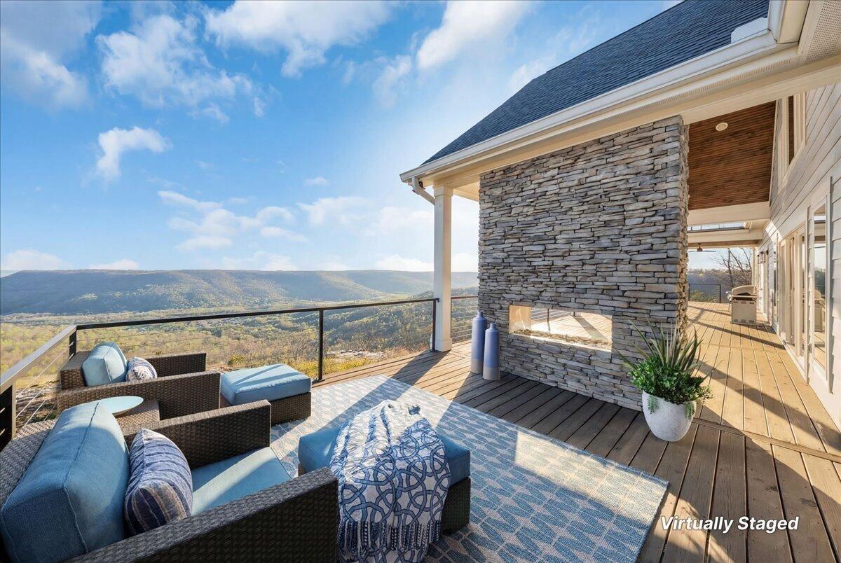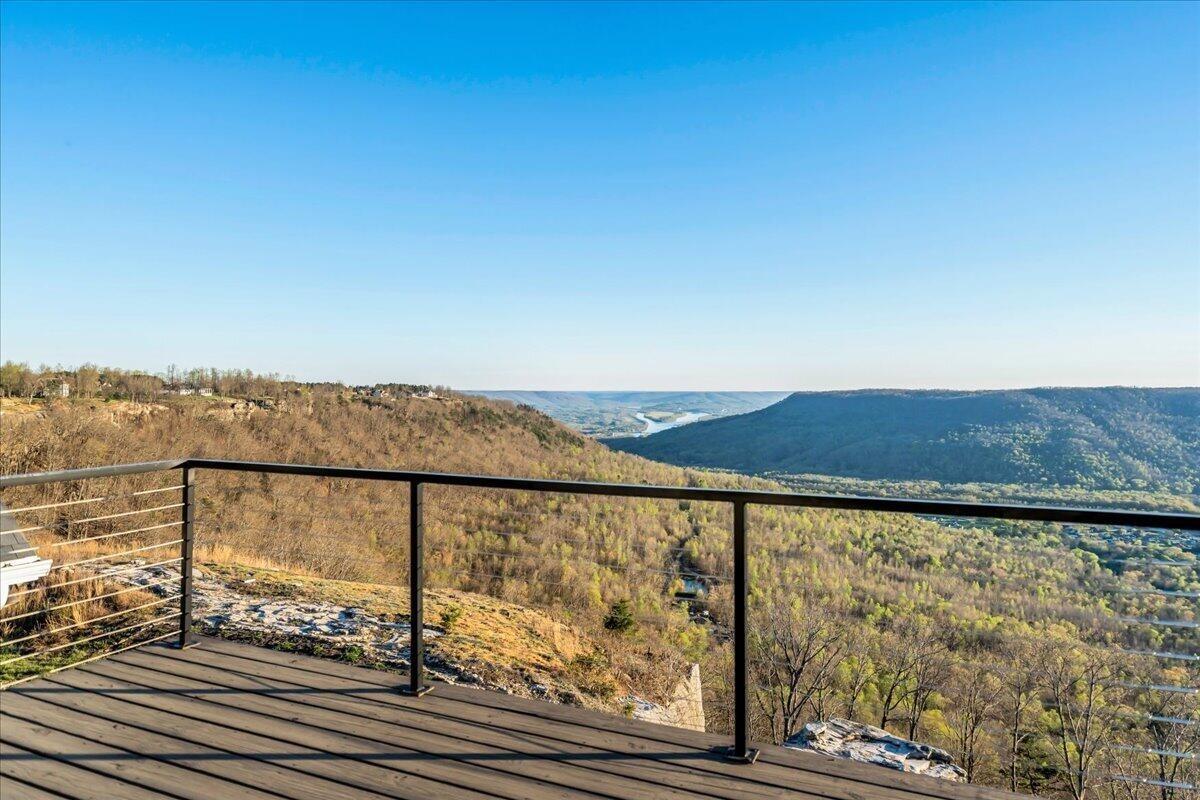 Welcome to 155 Riverview Court, a masterfully crafted 7,213-square-foot mountain estate set within the prestigious gated enclave of Jasper Highlands. Privately nestled on nearly four acres at the end of a quiet cul-de-sac, this exceptional residence is introduced by a picturesque, maple-lined drive--an elegant approach that sets the tone for the refinement and serenity that await. Here, timeless design and modern sophistication converge against a backdrop of sweeping Tennessee mountain and river vistas. Thoughtfully designed to balance grand-scale entertaining with effortless everyday living, this five-bedroom, four-and-a-half-bath residence offers a seamless flow of beautifully curated spaces. The gourmet kitchen is a statement of both form and function, featuring panel-ready appliances by Sub-Zero, Café, and Asko, a professional-grade gas range with double ovens, striking Dekton surfaces, and bespoke soft-close cabinetry. Just beyond, a spacious walk-in pantry serves as both a functional extension and a hidden luxury, complete with a built-in Miele coffee system and instant hot water. The primary suite is a sanctuary unto itself--an intimate retreat designed for comfort and indulgence. Automated blinds frame the surrounding landscape, while the spa-inspired bathroom features an oversized walk-in double shower with refined finishes. The expansive wardrobe suite, appointed with integrated cabinetry and custom dressers, offers both elegance and organization at the highest level. Throughout the home, advanced systems and thoughtful enhancements elevate the living experience, including five HVAC zones, a dedicated safe room, a tankless water heater, and a Moen Flo smart water monitoring system. A smart driveway alert system seamlessly integrates with the home's security, providing both convenience and peace of mind.
