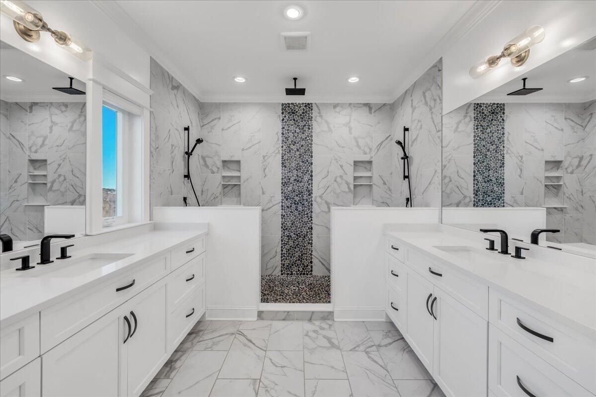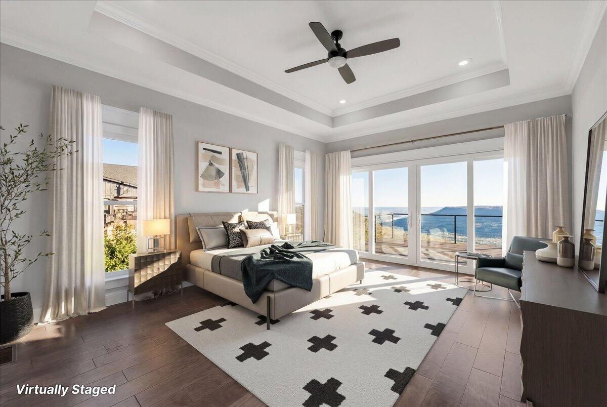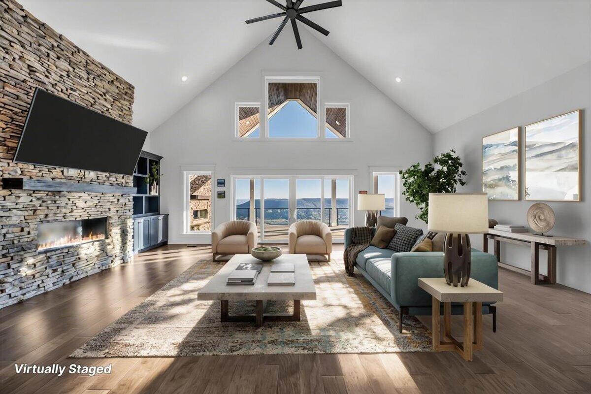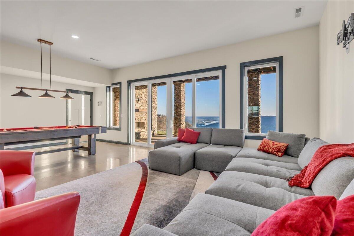 Welcome to 155 Riverview Court, a masterfully crafted 7,213-square-foot mountain estate set within the prestigious gated enclave of Jasper Highlands. Privately nestled on nearly four acres at the end of a quiet cul-de-sac, this exceptional residence is introduced by a picturesque, maple-lined drive--an elegant approach that sets the tone for the refinement and serenity that await. Here, timeless design and modern sophistication converge against a backdrop of sweeping Tennessee mountain and river vistas. Thoughtfully designed to balance grand-scale entertaining with effortless everyday living, this five-bedroom, four-and-a-half-bath residence offers a seamless flow of beautifully curated spaces. The gourmet kitchen is a statement of both form and function, featuring panel-ready appliances by Sub-Zero, Café, and Asko, a professional-grade gas range with double ovens, striking Dekton surfaces, and bespoke soft-close cabinetry. Just beyond, a spacious walk-in pantry serves as both a functional extension and a hidden luxury, complete with a built-in Miele coffee system and instant hot water. The primary suite is a sanctuary unto itself--an intimate retreat designed for comfort and indulgence. Automated blinds frame the surrounding landscape, while the spa-inspired bathroom features an oversized walk-in double shower with refined finishes. The expansive wardrobe suite, appointed with integrated cabinetry and custom dressers, offers both elegance and organization at the highest level. Throughout the home, advanced systems and thoughtful enhancements elevate the living experience, including five HVAC zones, a dedicated safe room, a tankless water heater, and a Moen Flo smart water monitoring system. A smart driveway alert system seamlessly integrates with the home's security, providing both convenience and peace of mind.