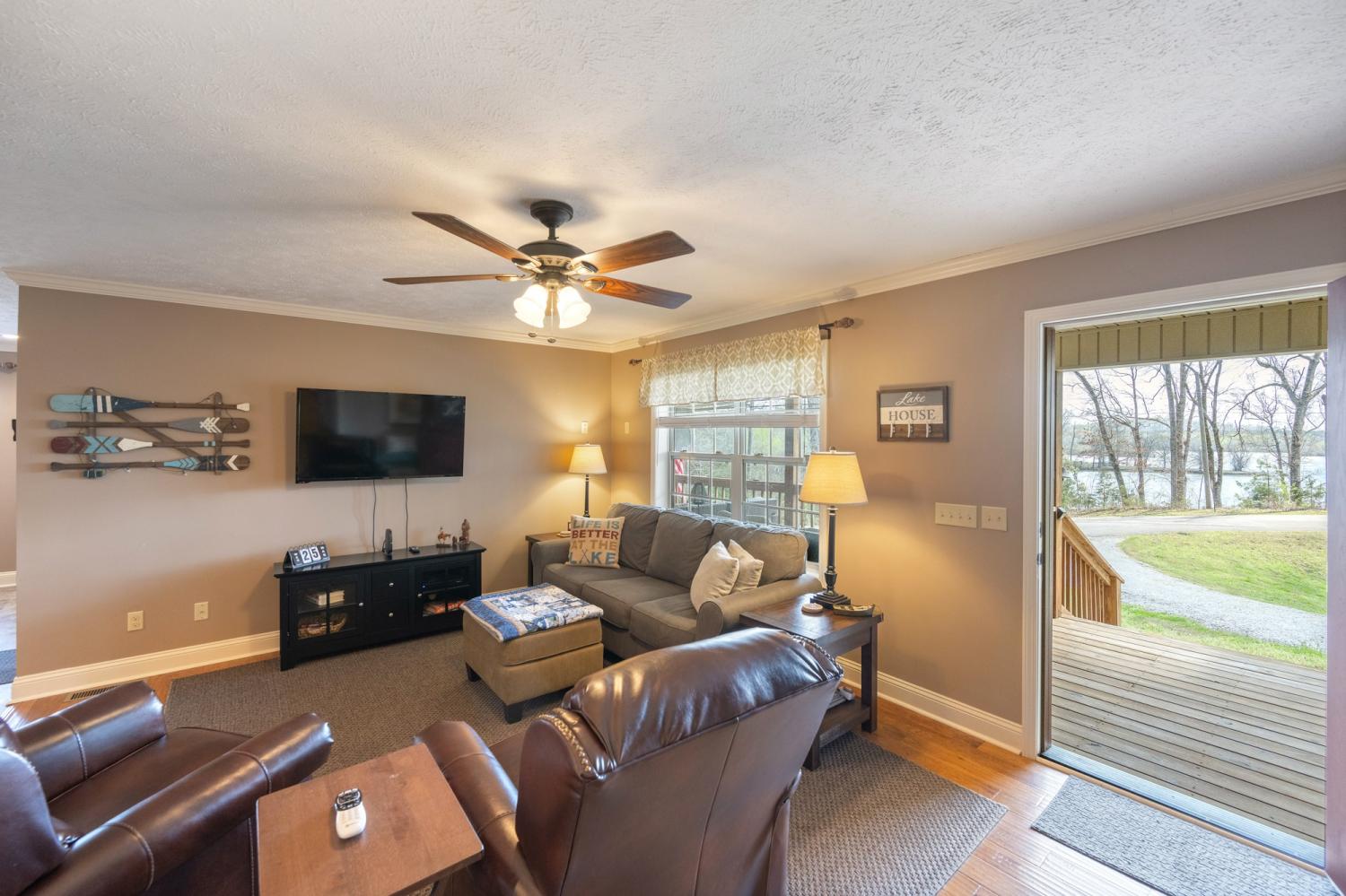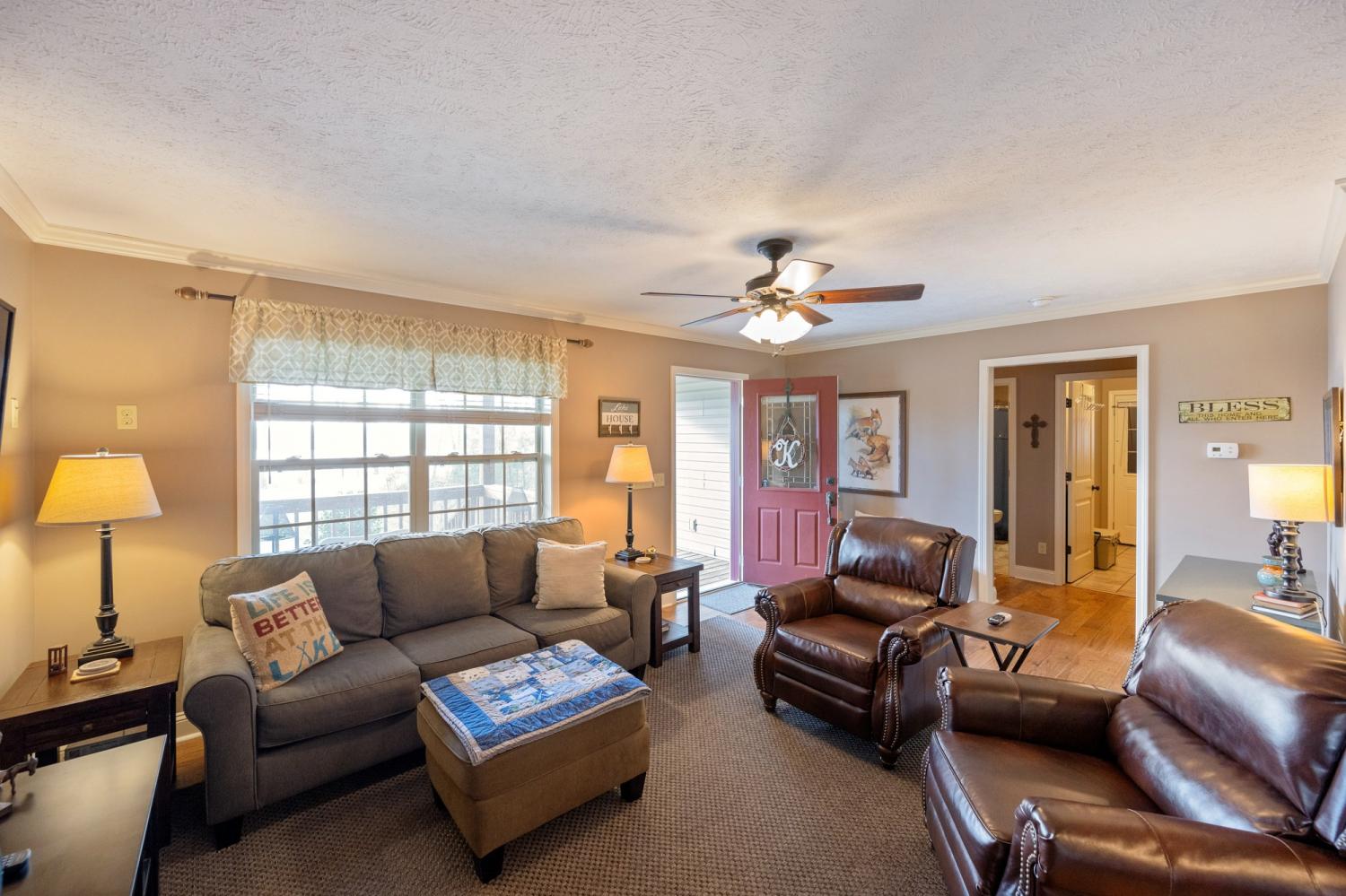Welcome to Peaceful Featherfoot Point!!—a gated countryside community nestled along the gentle Beech River where nature, privacy, and river living come together beautifully. This well-maintained home is perfectly positioned on three resort lots totaling 1.36 acres, offering elevated river views while remaining outside the floodplain—yet just a short walk to the water’s edge. Outdoor living shines here, with a wraparound porch capturing unobstructed water views and cool breezes, a cozy firepit area, and a private rear sun deck featuring a unique stock tank pool—perfect for relaxing and entertaining. The setting is peaceful and wildlife-rich, with frequent sightings of eagles, pelicans and deer. Inside, the open floor plan is filled with natural light and river views, featuring a comfortable living area, spacious dining, and a well-appointed kitchen with breakfast bar, ample cabinetry, and all appliances included. The primary suite offers a walk-in shower, while the guest bedroom enjoys scenic water views and access to a full bath with tub/shower combo. A dedicated laundry room with washer and dryer adds convenience. Additional highlights include a whole-house generator, select furnishings included, and an oversized attached garage with two insulated doors—ideal for vehicles, boats, golf carts, or equipment. Beautiful landscaping completes the property. Located just minutes from Parsons and within easy reach of I-40 between Memphis and Nashville, this property offers both seclusion and accessibility. Two nearby boat launches provide quick access to the Beech River and an easy ride to the Tennessee River. Whether you're looking for a full-time residence or weekend retreat this one checks all the boxes for Tennessee river living!