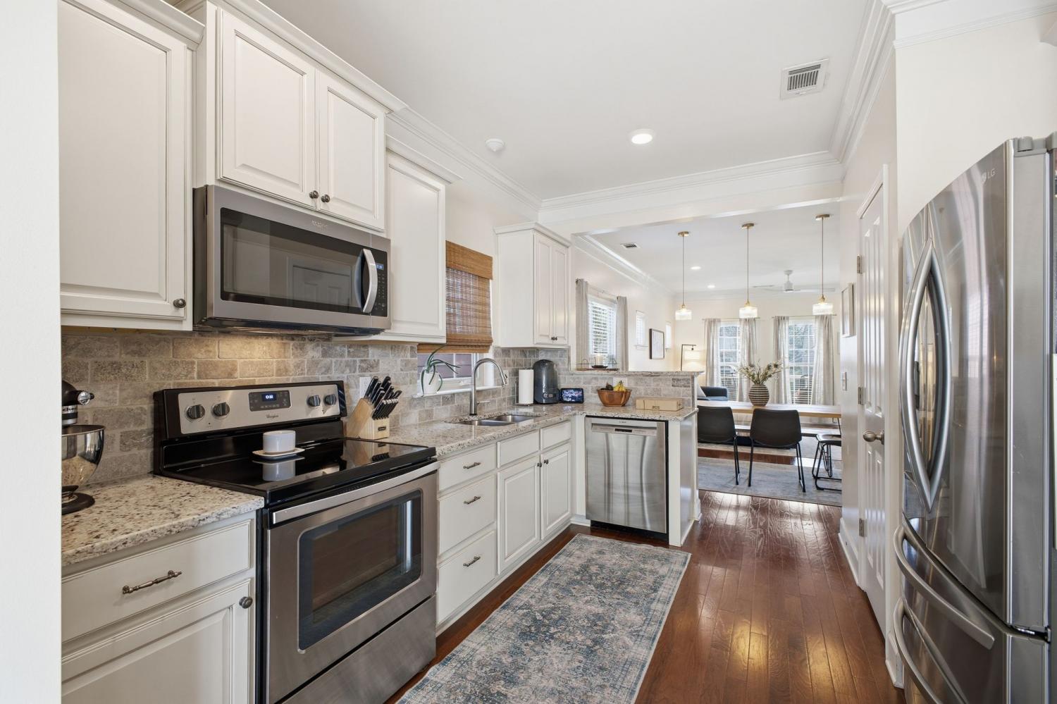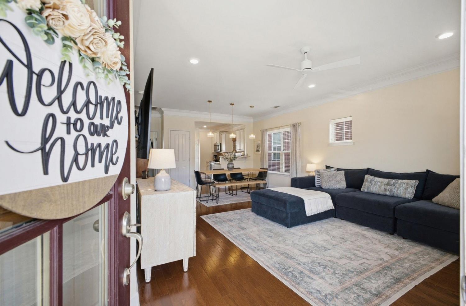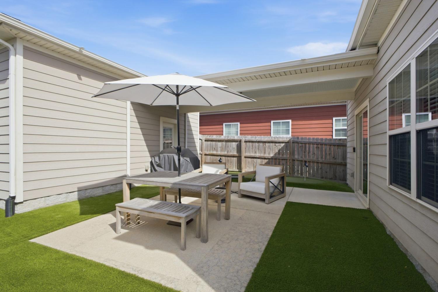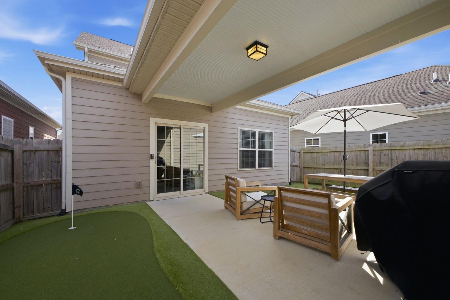 Welcome to this beautifully updated townhome in the highly desirable Burkitt Springs community—where thoughtful upgrades and effortless style come together. From the moment you enter, you’ll notice seamless laminate hardwood flooring and refined finishes throughout. The main level offers a bright, open layout enhanced by crown molding and quality details that add warmth and character, while the kitchen features a stylish stone backsplash and upgraded soft-close cabinetry and drawers, flowing effortlessly into the living and dining spaces. The primary suite serves as a comfortable retreat with a newly updated vanity and elevated finishes. Upstairs, additional bedrooms are complemented by a versatile flex space—perfect for a home office, media room, or play area. Step outside to a private, fenced backyard with fresh turf and a custom putting green, ideal for relaxing or entertaining, along with a 2-car garage and a covered walkway providing convenient access into the home. With new lighting fixtures and thoughtful updates throughout, this home offers both style and functionality in a prime location, easy access to shopping, dining, and everything Burkitt Springs has to offer.