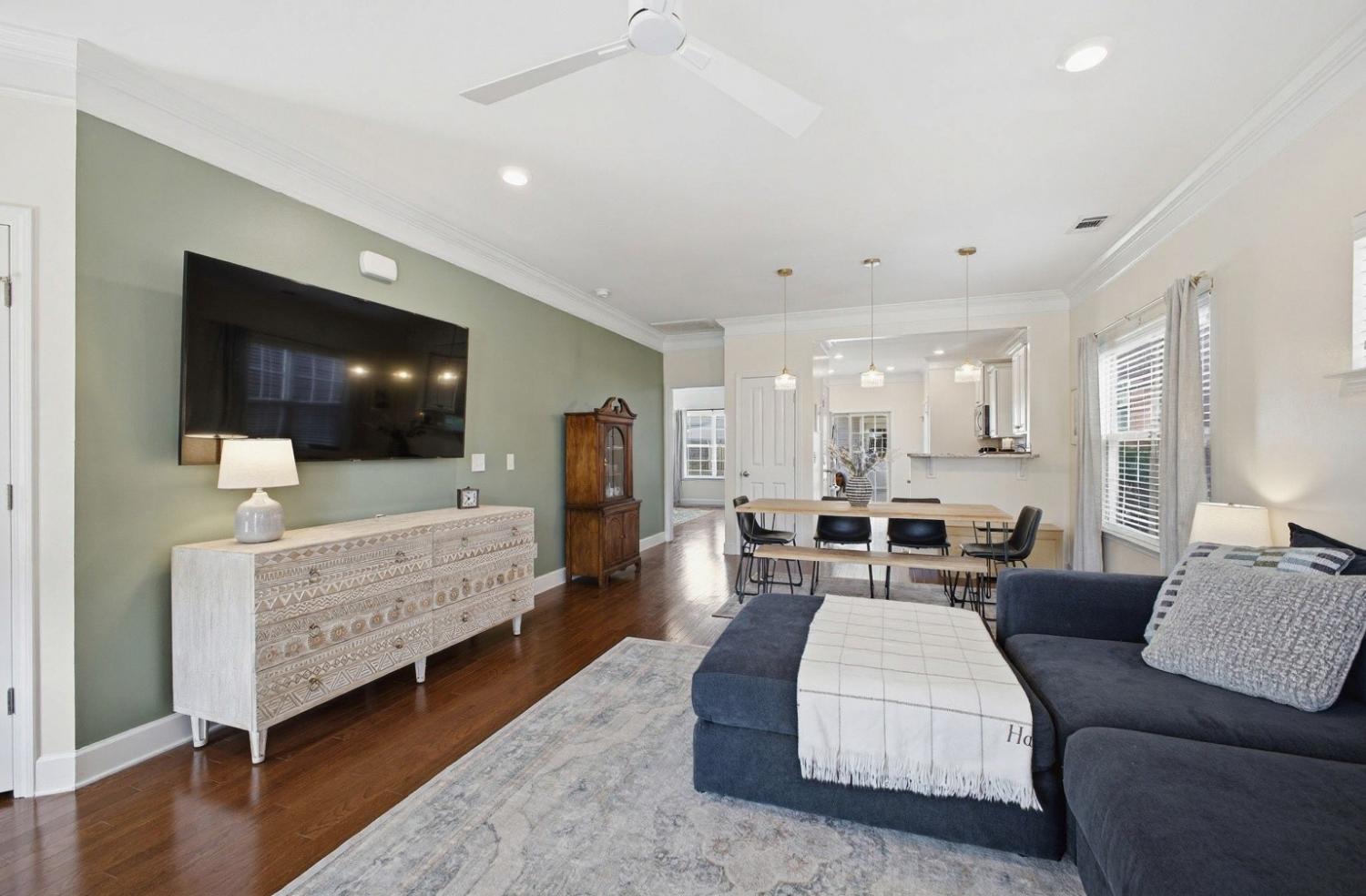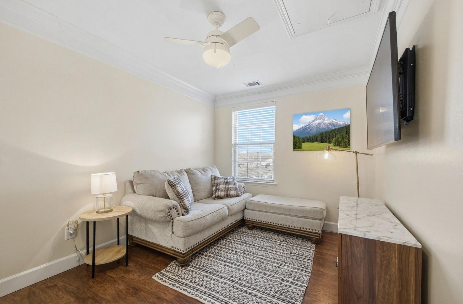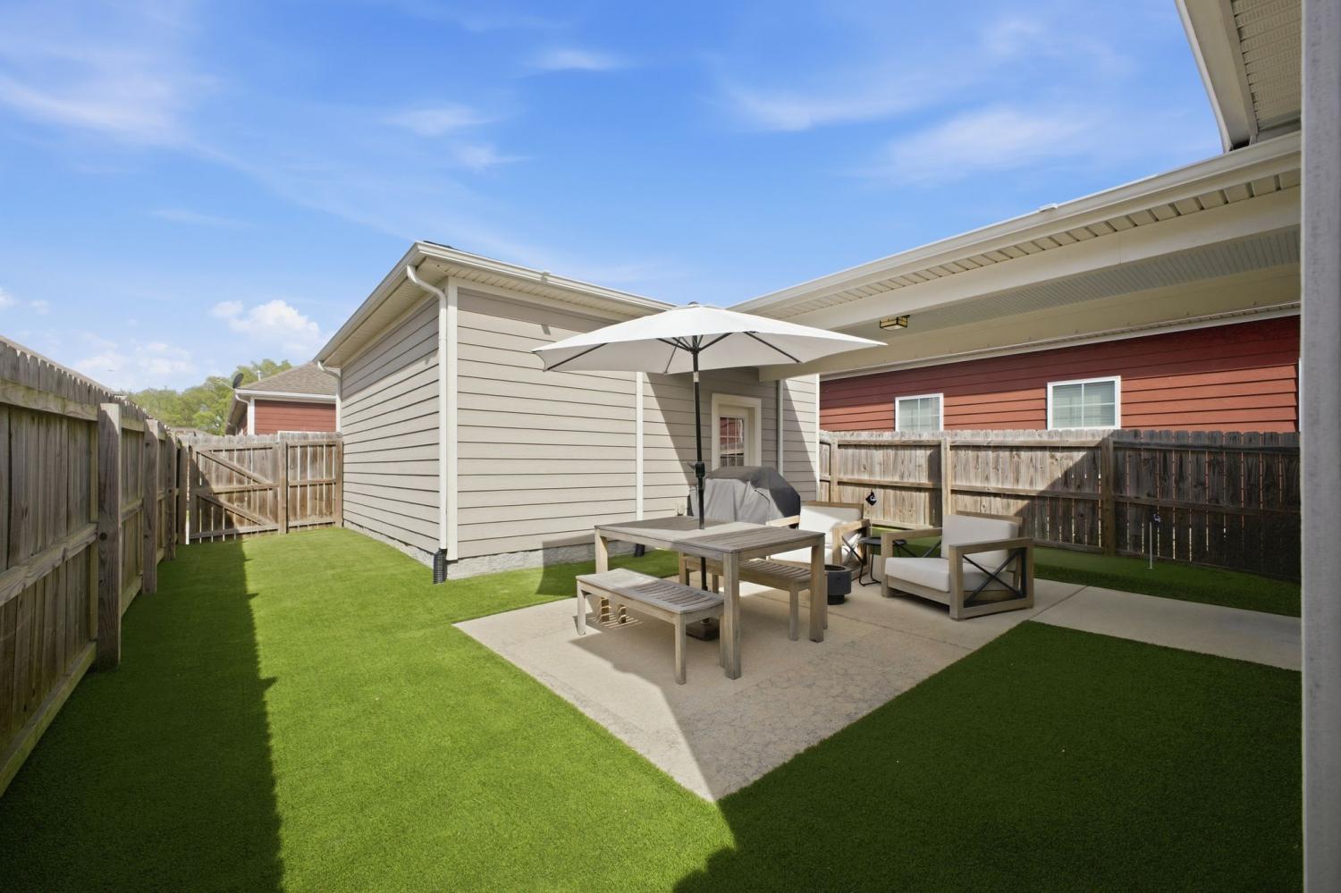 Welcome to this beautifully updated townhome in the highly desirable Burkitt Springs community—where thoughtful upgrades and effortless style come together. From the moment you enter, you’ll notice seamless laminate hardwood flooring and refined finishes throughout. The main level offers a bright, open layout enhanced by crown molding and quality details that add warmth and character, while the kitchen features a stylish stone backsplash and upgraded soft-close cabinetry and drawers, flowing effortlessly into the living and dining spaces. The primary suite serves as a comfortable retreat with a newly updated vanity and elevated finishes. Upstairs, additional bedrooms are complemented by a versatile flex space—perfect for a home office, media room, or play area. Step outside to a private, fenced backyard with fresh turf and a custom putting green, ideal for relaxing or entertaining, along with a 2-car garage and a covered walkway providing convenient access into the home. With new lighting fixtures and thoughtful updates throughout, this home offers both style and functionality in a prime location, easy access to shopping, dining, and everything Burkitt Springs has to offer.