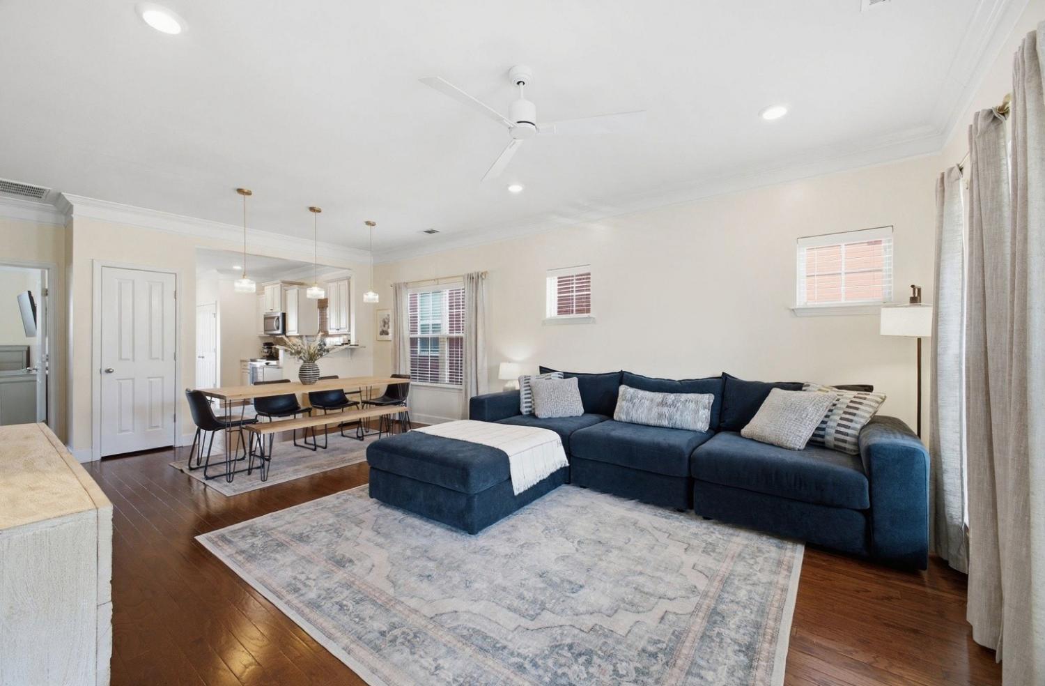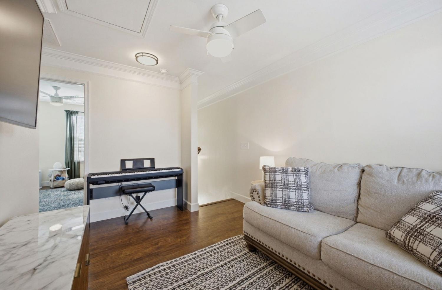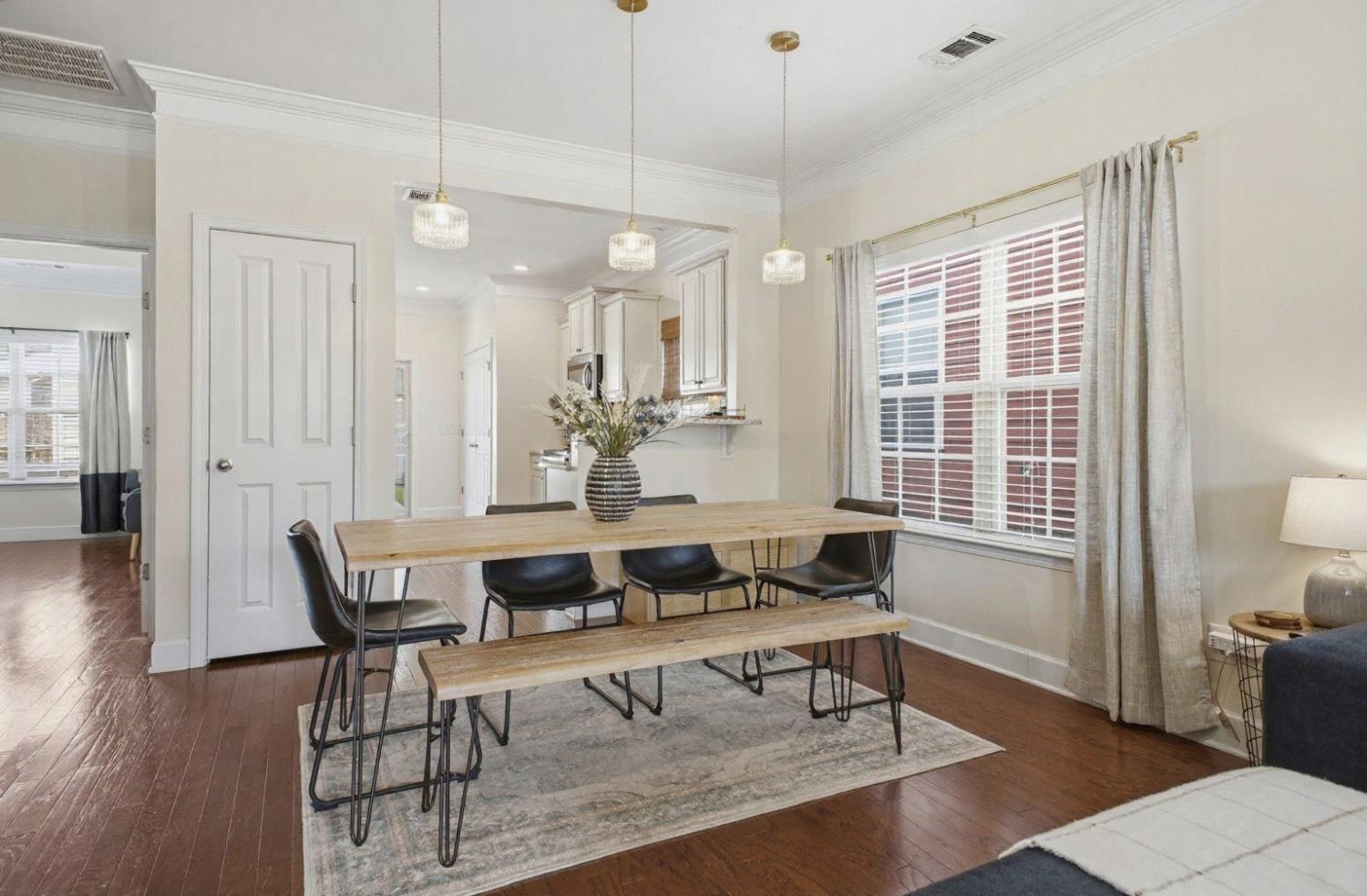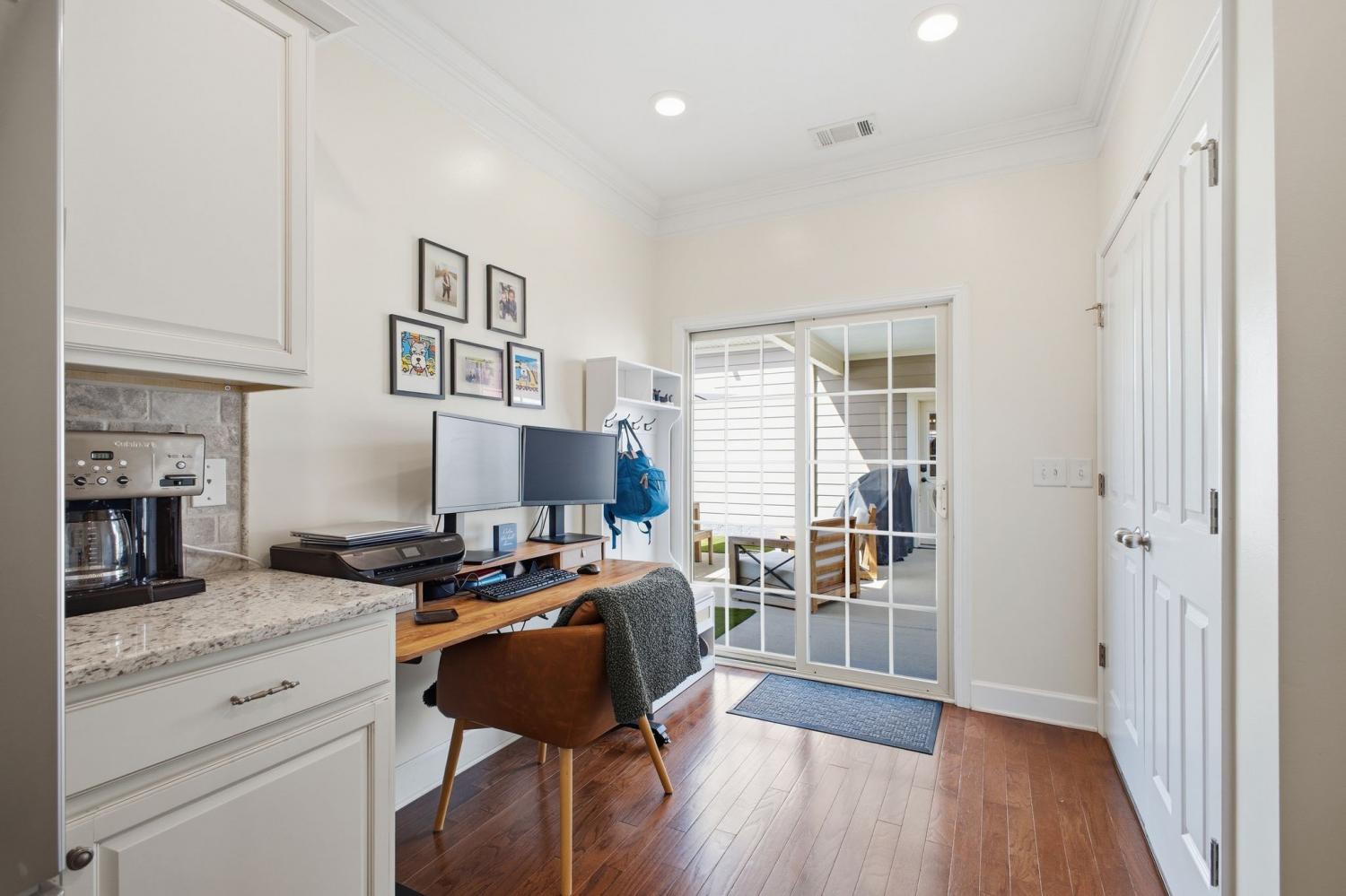 Welcome to this beautifully updated townhome in the highly desirable Burkitt Springs community—where thoughtful upgrades and effortless style come together. From the moment you enter, you’ll notice seamless laminate hardwood flooring and refined finishes throughout. The main level offers a bright, open layout enhanced by crown molding and quality details that add warmth and character, while the kitchen features a stylish stone backsplash and upgraded soft-close cabinetry and drawers, flowing effortlessly into the living and dining spaces. The primary suite serves as a comfortable retreat with a newly updated vanity and elevated finishes. Upstairs, additional bedrooms are complemented by a versatile flex space—perfect for a home office, media room, or play area. Step outside to a private, fenced backyard with fresh turf and a custom putting green, ideal for relaxing or entertaining, along with a 2-car garage and a covered walkway providing convenient access into the home. With new lighting fixtures and thoughtful updates throughout, this home offers both style and functionality in a prime location, easy access to shopping, dining, and everything Burkitt Springs has to offer.