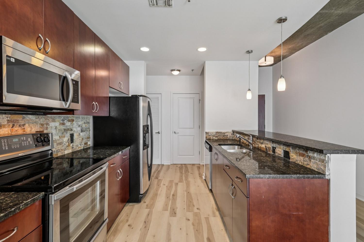 Step into upscale downtown living at the Encore Condominiums, one of SoBro’s premier high-rise communities. This modern 9th-floor one-bedroom offers breathtaking skyline views through floor-to-ceiling windows and from your private balcony — the perfect place to enjoy morning coffee or the sparkling city lights at night. Inside, you’ll find thoughtfully updated features including wide-plank oak LVP flooring, a custom entry built-in, and a sleek, contemporary kitchen with stainless steel appliances, granite countertops, a stone backsplash, and a space-saving breakfast bar. The bedroom offers ensuite bath access, a walk-in closet with custom built-ins, and a convenient laundry area with additional storage. Perfectly positioned on 3rd Avenue and Demonbreun Street, directly across from the Schermerhorn Symphony Center, Encore places you in the heart of downtown Nashville’s most walkable district. Enjoy resort-style amenities including 24-hour concierge, a stunning outdoor pool and lounge deck, grilling stations, a residents’ clubroom, and a state-of-the-art fitness center. From Encore, you can walk to Bridgestone Arena, Ascend Amphitheater, Broadway honky-tonks, Nissan Stadium, and the vibrant restaurant scenes of The Gulch and SoBro. Local favorites like Frothy Monkey, Pinewood Social, Bakersfield, The Southern, and Starbucks Reserve are just steps away. Whether you're seeking a low-maintenance lock-and-leave condo, a stylish urban retreat, or a premium high-rise with unbeatable walkability, this Encore residence delivers the ideal downtown Nashville lifestyle — where dining, entertainment, nightlife, and culture are all at your doorstep. *Mortgage savings may be available for buyers of this listing.*