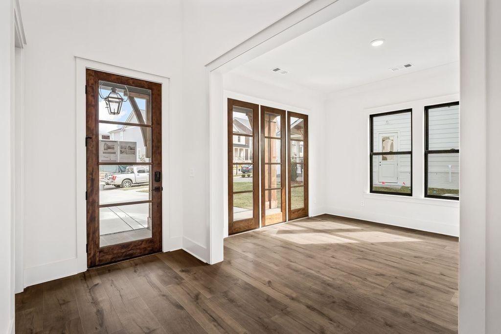 Welcome to the highly anticipated community Garrett Farms, ideally located just minutes from I-840 and I-65 for ultimate convenience. This spacious 5-bedroom, 4.5-bath home is thoughtfully designed with both comfort and style in mind. The primary suite is located on the main level, offering privacy and ease of access. The gourmet kitchen is a true centerpiece, featuring high-end finishes and an open layout that flows seamlessly into the family room, complete with a cozy fireplace—perfect for gathering and entertaining. A versatile flex room on the first floor provides the ideal space for a home office, study, or additional living area. Step outside through the large sliding doors to a covered patio with its own outdoor fireplace, creating the perfect setting for year-round relaxation. Upstairs, you'll find a generously sized bonus area, ideal for a media room or play space. All secondary bedrooms are oversized and include walk-in closets, providing ample storage and comfort for family or guests. The second floor also features additional walk-in storage for added convenience. With its open floorplan, premium features, and unbeatable location, this home offers the perfect blend of luxury and everyday functionality. Don’t miss the opportunity to make it yours. All photos are stock photos and will vary in colors and selections.