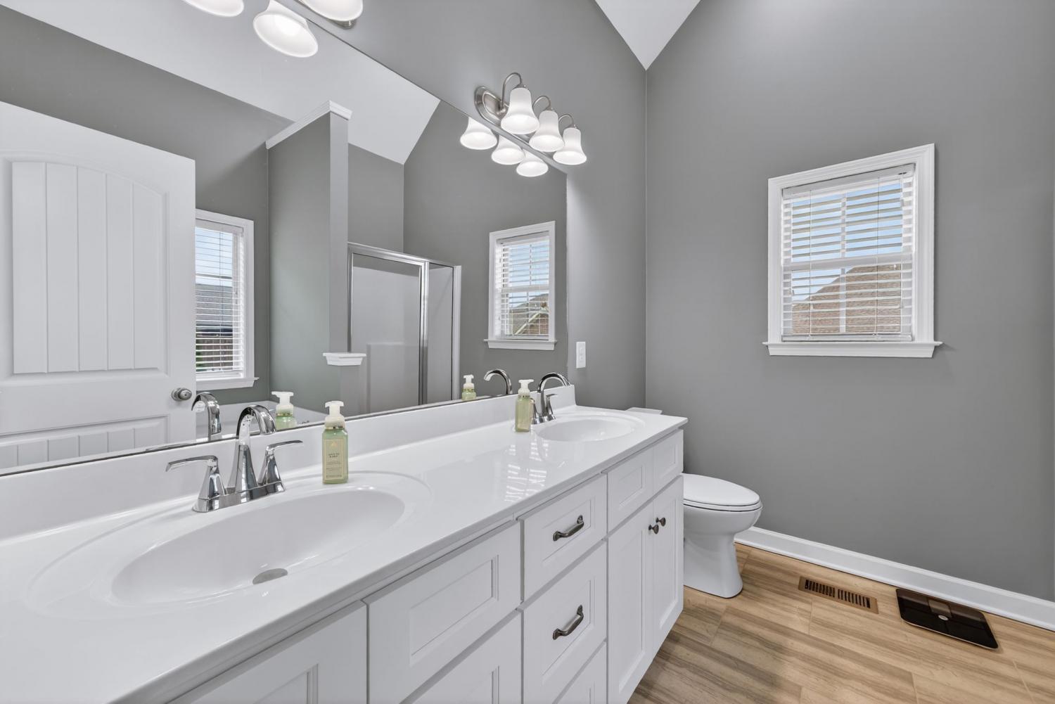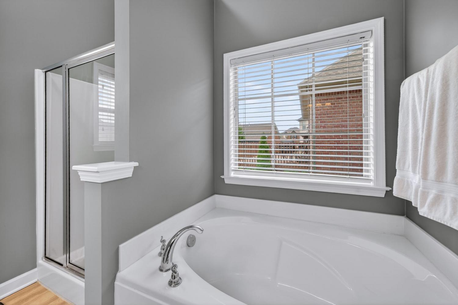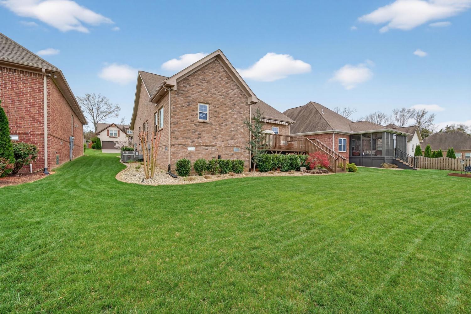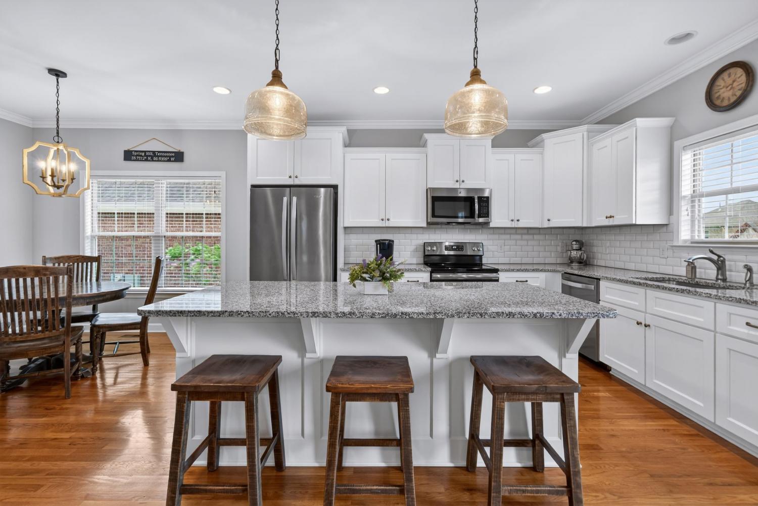 Welcome home to this incredible all brick 4 bedroom, 2 bath home in the highly desirable Wade’s Grove community. This home offers the perfect blend of comfort, style, and functionality. Step inside to find hardwood floors, high ceilings, and an inviting open-concept living space anchored by a cozy gas fireplace. The kitchen features granite countertops, stainless steel appliances, subway tile backsplash, pantry, and a large island with bar seating ideal for both everyday living and entertaining. The main-level primary suite offers a private retreat with double vanities, a separate shower and soaking tub, and a spacious walk-in closet. Two additional bedrooms on the main level provide flexibility for guests, family, or a home office, while the upstairs bonus/bedroom creates the perfect space for a media room, playroom, or private guest suite. Enjoy outdoor living at its best with gorgeous landscaping, a covered front porch perfect for morning coffee and a spacious elevated deck overlooking the backyard ideal for relaxing, grilling, or hosting gatherings. Located in Wade’s Grove, residents enjoy access to a community pool, playground, and sidewalks, all just minutes from I-65, June Lake development, shopping, dining, and top-rated Williamson County schools.