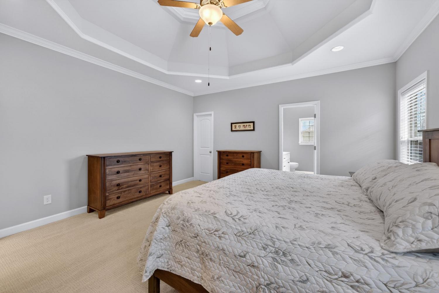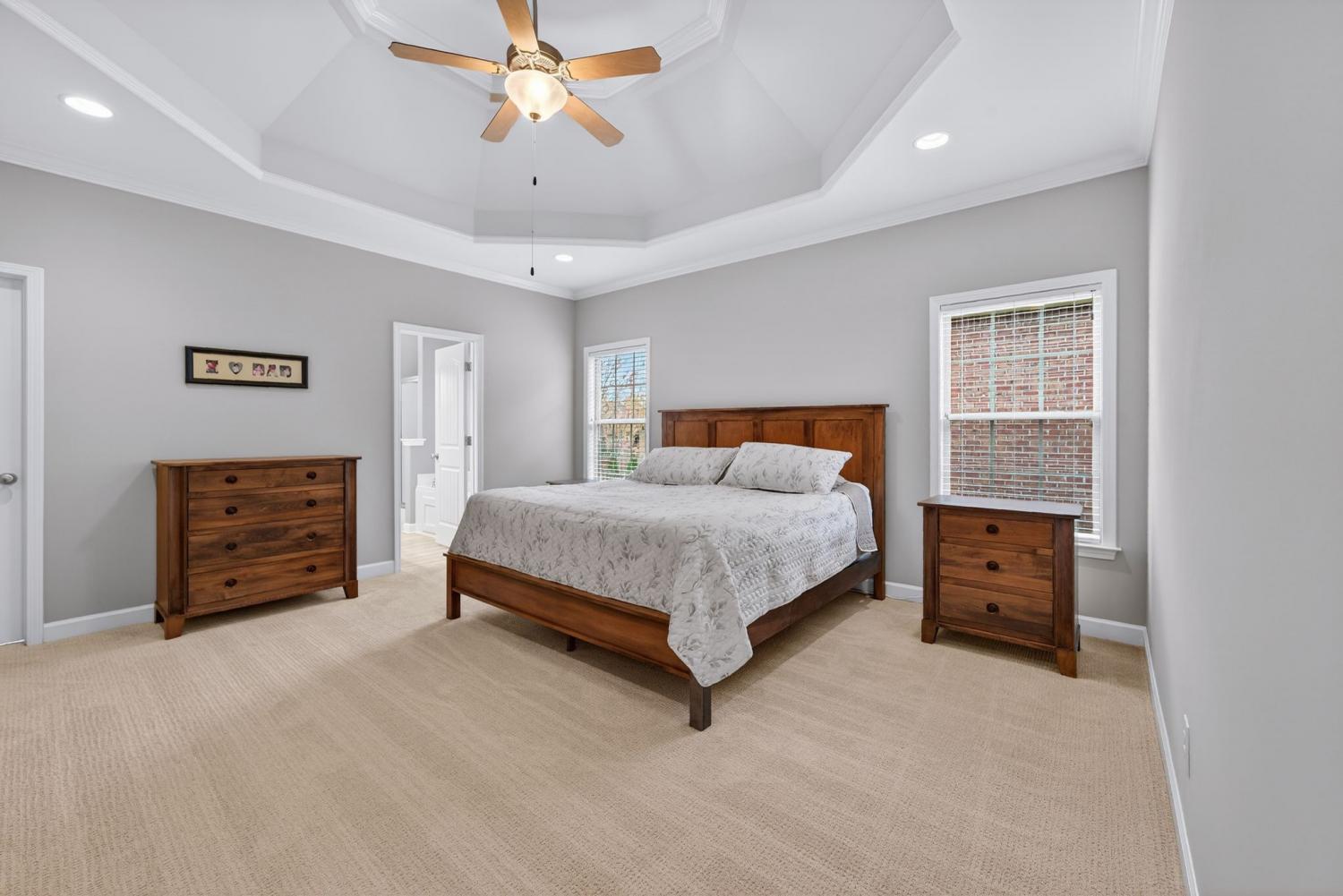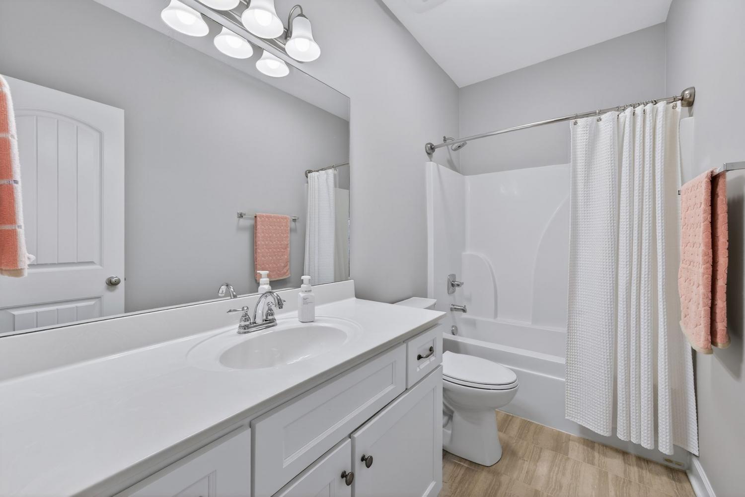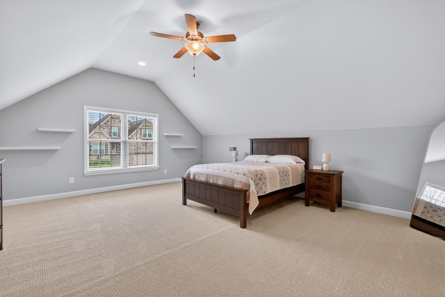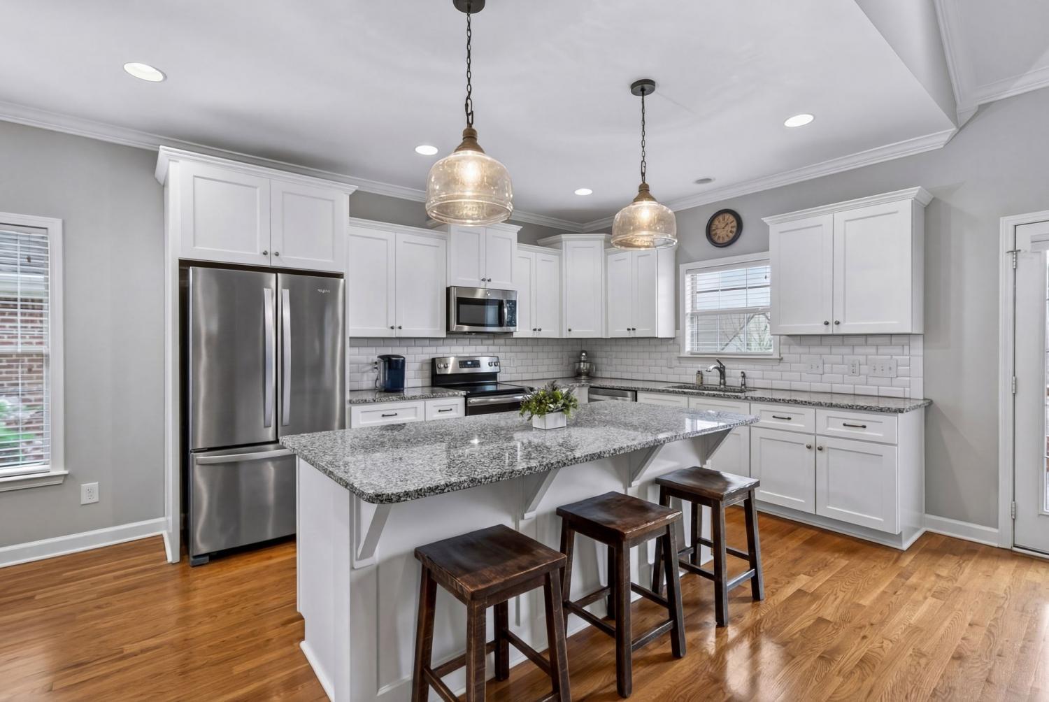 Welcome home to this incredible all brick 4 bedroom, 2 bath home in the highly desirable Wade’s Grove community. This home offers the perfect blend of comfort, style, and functionality. Step inside to find hardwood floors, high ceilings, and an inviting open-concept living space anchored by a cozy gas fireplace. The kitchen features granite countertops, stainless steel appliances, subway tile backsplash, pantry, and a large island with bar seating ideal for both everyday living and entertaining. The main-level primary suite offers a private retreat with double vanities, a separate shower and soaking tub, and a spacious walk-in closet. Two additional bedrooms on the main level provide flexibility for guests, family, or a home office, while the upstairs bonus/bedroom creates the perfect space for a media room, playroom, or private guest suite. Enjoy outdoor living at its best with gorgeous landscaping, a covered front porch perfect for morning coffee and a spacious elevated deck overlooking the backyard ideal for relaxing, grilling, or hosting gatherings. Located in Wade’s Grove, residents enjoy access to a community pool, playground, and sidewalks, all just minutes from I-65, June Lake development, shopping, dining, and top-rated Williamson County schools.