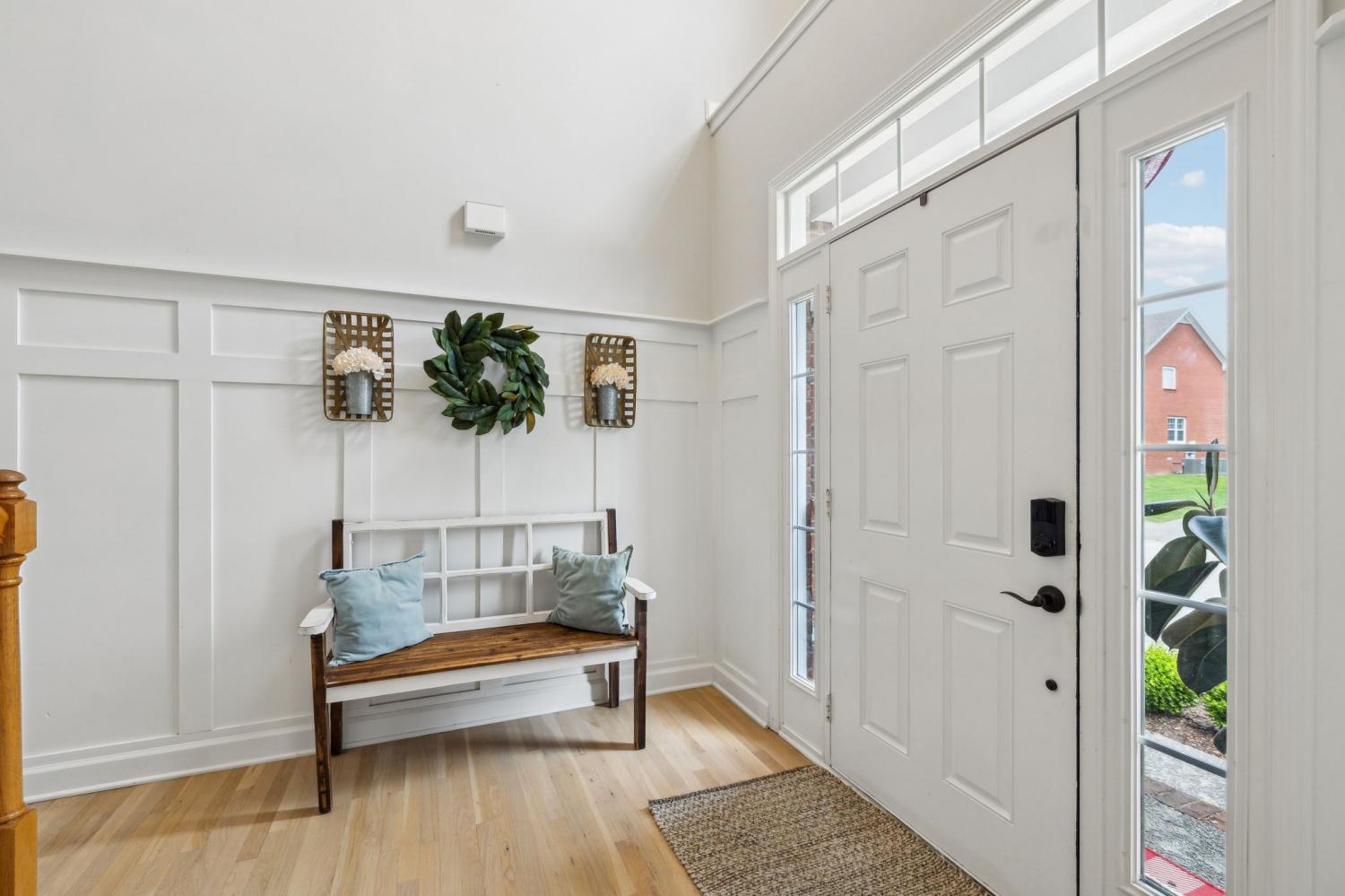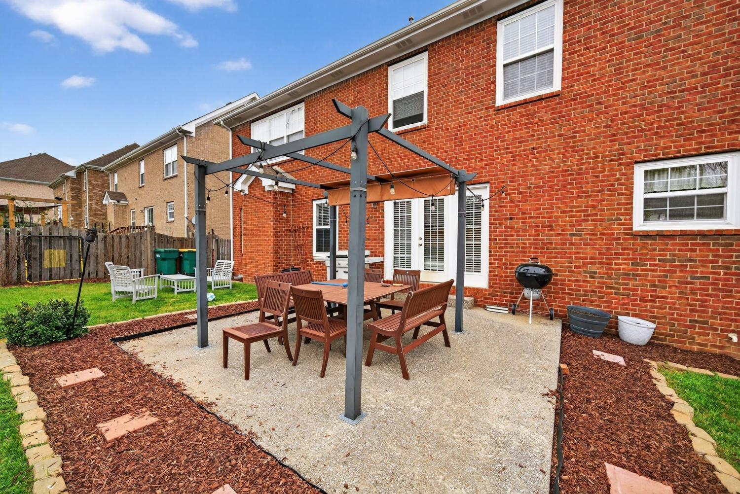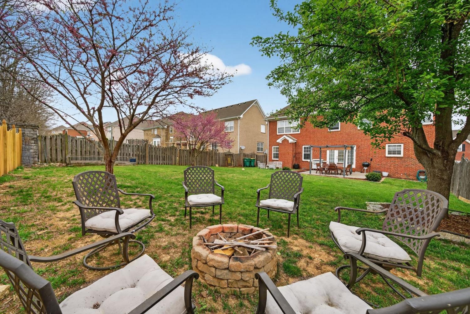 Welcome Home to this all brick 5-bedroom home in the highly desirable Wade’s Grove community. This home combines flexibility, comfort, and inviting indoor-outdoor living. The main level welcomes you with an inviting foyer and a versatile front room that can serve as a formal dining space or private home office, filled with natural light and offering direct access to the covered front porch. The kitchen is the heart of the home, featuring a large center island, double ovens, gas range, pantry, abundant cabinetry, and a spacious eat-in area perfect for gathering with family and friends. The adjoining living room offers a warm and inviting feel with hardwood floors, crown molding, and a cozy fireplace. Upstairs, the owner’s suite impresses with a vaulted ceiling, dual vanities, a soaking tub, separate shower, and walk-in closet. Three additional bedrooms, a versatile firth bedroom (or bonus room), and a convenient walk-in laundry room complete the upper level. Step outside to your private backyard retreat complete with a pergola-covered patio, fire pit area, and an expansive, fully fenced yard ideal for relaxing, entertaining, or play. Additional highlights include an oversized two-car garage and recent updates such as newer HVAC, carpet, and refinished hardwood floors. Located in Wade’s Grove, residents enjoy exceptional community amenities including a pool, playground, basketball court, and pavilion. Conveniently situated near award-winning Williamson County schools, June Lake, and the I-65 interchange, this home offers the perfect blend of space, style, and location.