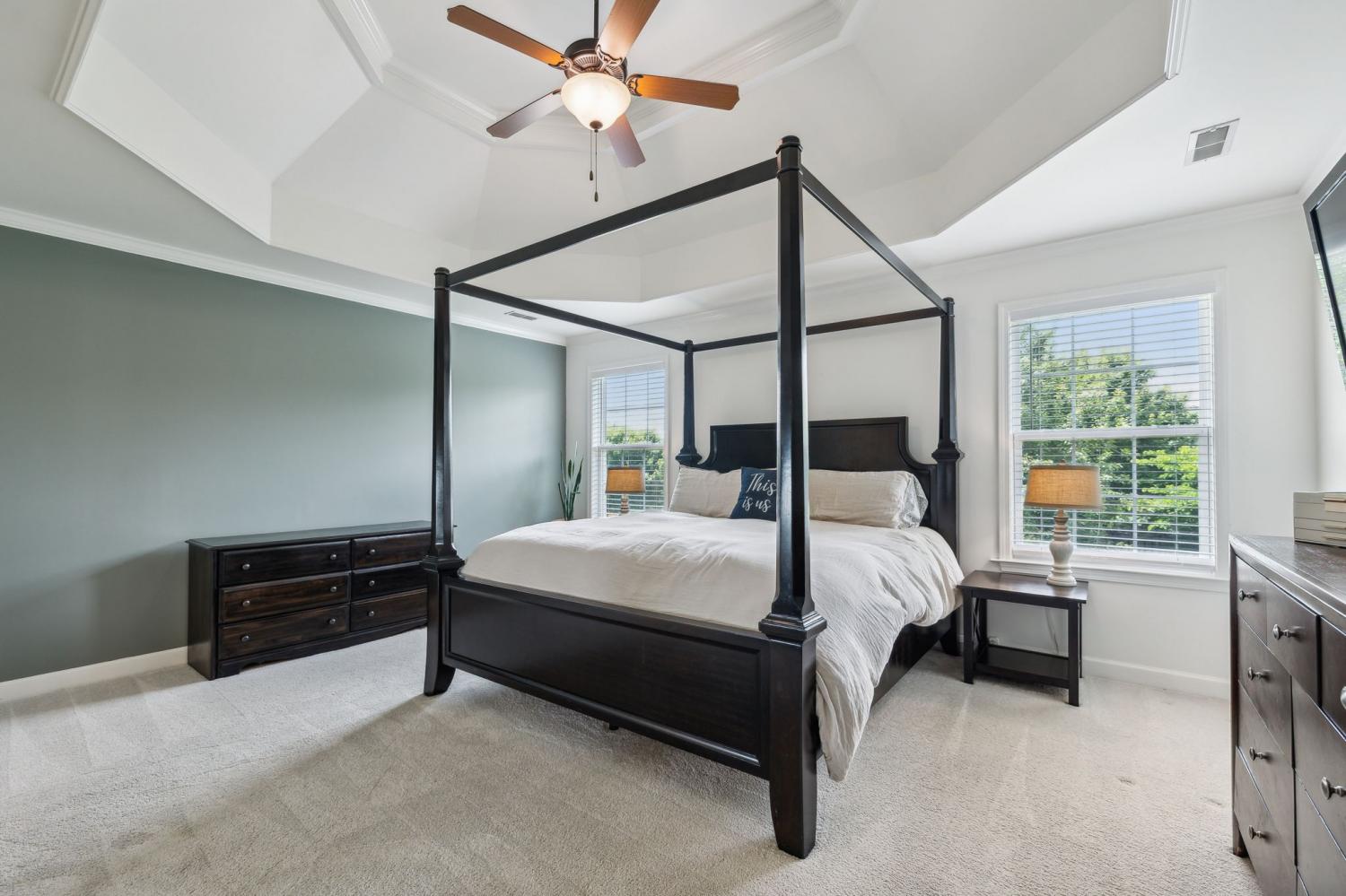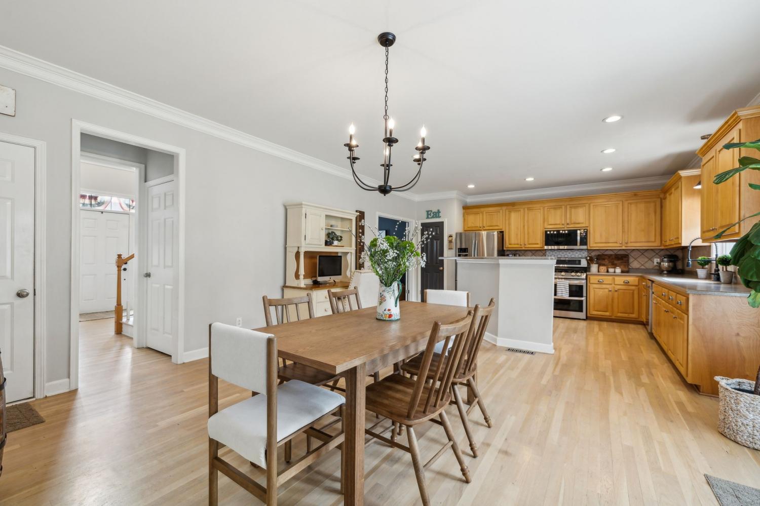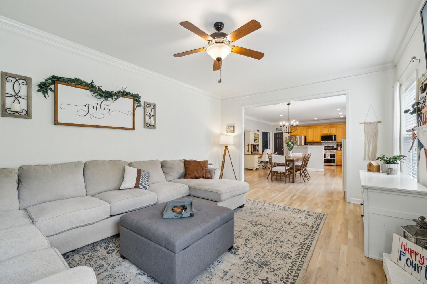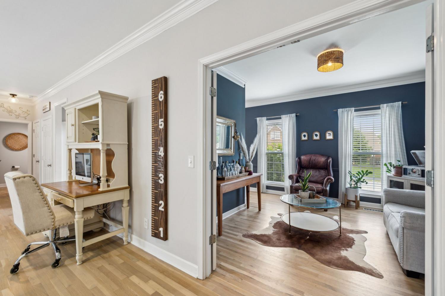 Welcome Home to this all brick 5-bedroom home in the highly desirable Wade’s Grove community. This home combines flexibility, comfort, and inviting indoor-outdoor living. The main level welcomes you with an inviting foyer and a versatile front room that can serve as a formal dining space or private home office, filled with natural light and offering direct access to the covered front porch. The kitchen is the heart of the home, featuring a large center island, double ovens, gas range, pantry, abundant cabinetry, and a spacious eat-in area perfect for gathering with family and friends. The adjoining living room offers a warm and inviting feel with hardwood floors, crown molding, and a cozy fireplace. Upstairs, the owner’s suite impresses with a vaulted ceiling, dual vanities, a soaking tub, separate shower, and walk-in closet. Three additional bedrooms, a versatile firth bedroom (or bonus room), and a convenient walk-in laundry room complete the upper level. Step outside to your private backyard retreat complete with a pergola-covered patio, fire pit area, and an expansive, fully fenced yard ideal for relaxing, entertaining, or play. Additional highlights include an oversized two-car garage and recent updates such as newer HVAC, carpet, and refinished hardwood floors. Located in Wade’s Grove, residents enjoy exceptional community amenities including a pool, playground, basketball court, and pavilion. Conveniently situated near award-winning Williamson County schools, June Lake, and the I-65 interchange, this home offers the perfect blend of space, style, and location.