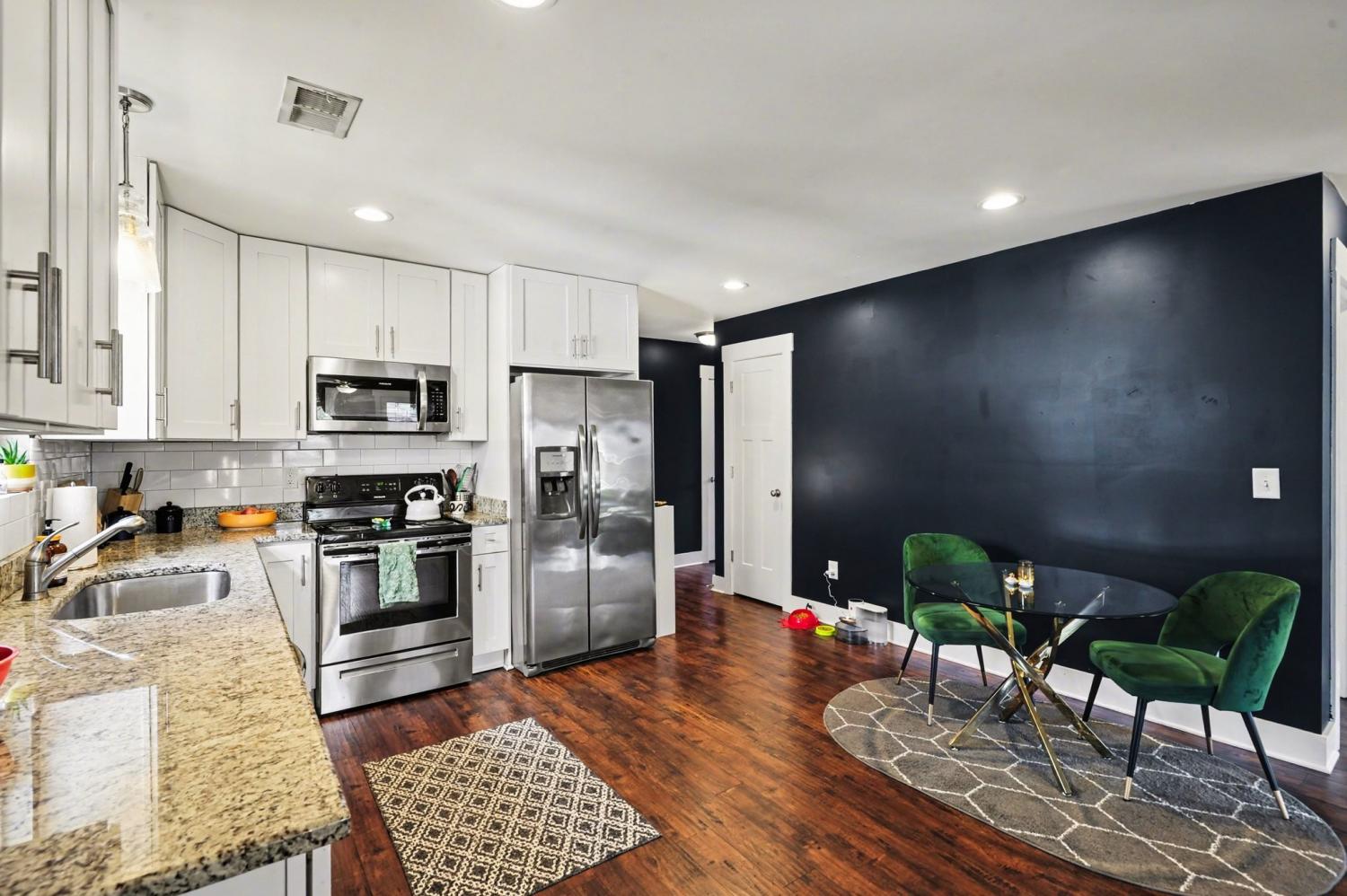 Priced to move and packed with style, this 2019-built home makes an immediate impression with its bold, earthy green exterior and eye-catching double gables. Inside, fresh designer paint and moody tones create a modern, creative vibe that feels both elevated and inviting. The airy, free-flowing layout with soaring ceilings is ideal for hosting or unwinding, connecting seamlessly to a chef-inspired kitchen featuring shaker cabinetry, stainless steel appliances, granite countertops, and a sleek subway tile backsplash. Brand new ultra-plush carpeting adds comfort throughout. Tucked privately at the rear, the spacious owner’s suite offers a peaceful retreat with a spa-like bath, double vanity, and generous closet space. Set along sought-after Old Hickory Boulevard, you’re just minutes from the waterfront lifestyle of Old Hickory Lake, local favorites at The Village, and an easy drive to all the energy of downtown Nashville. Whether it’s boating, dining, live music, or weekend hangouts, this location puts you right in the middle of it all. Turn-key, stylish, and perfectly located—this is the one buyers have been waiting for.