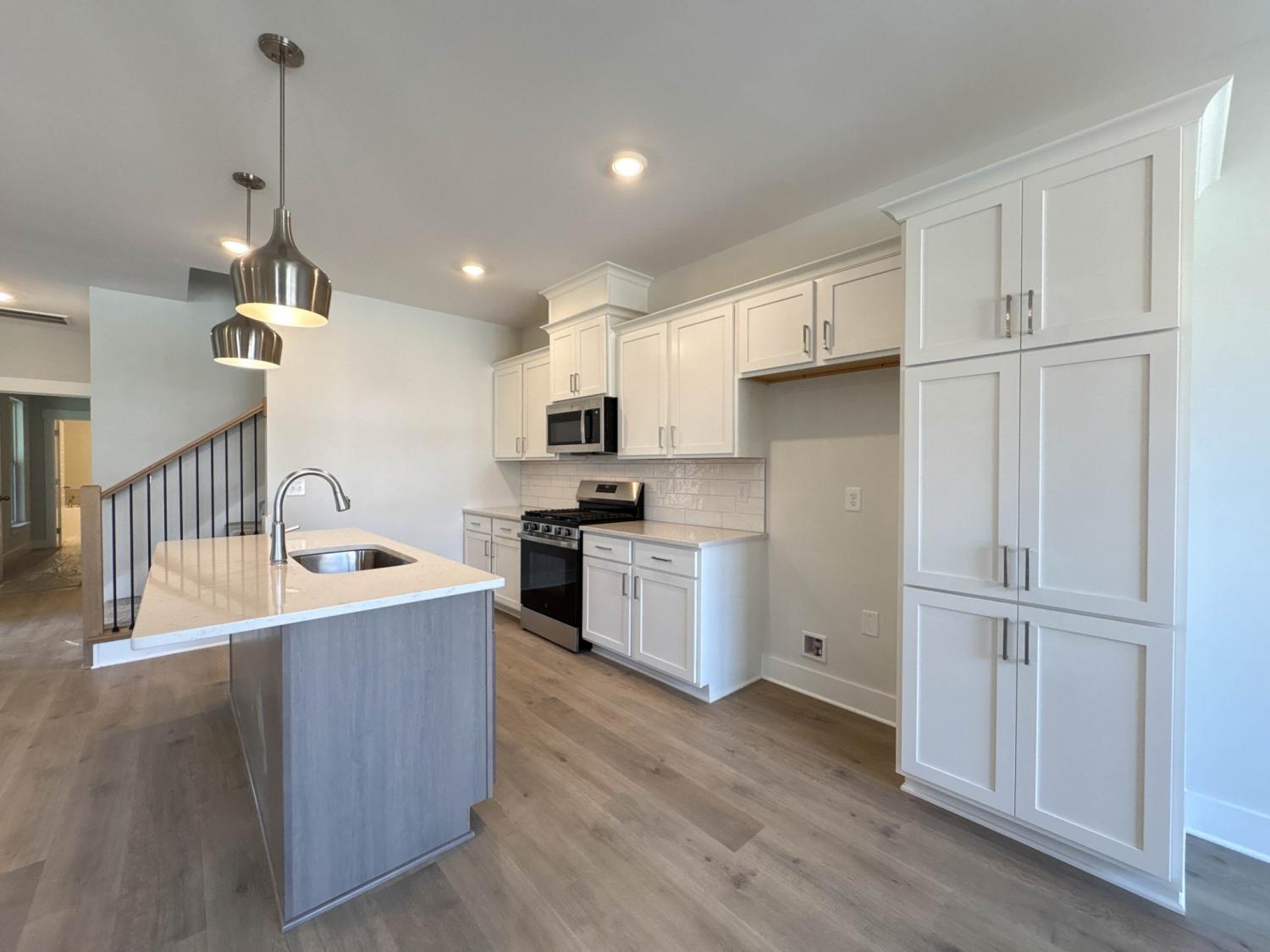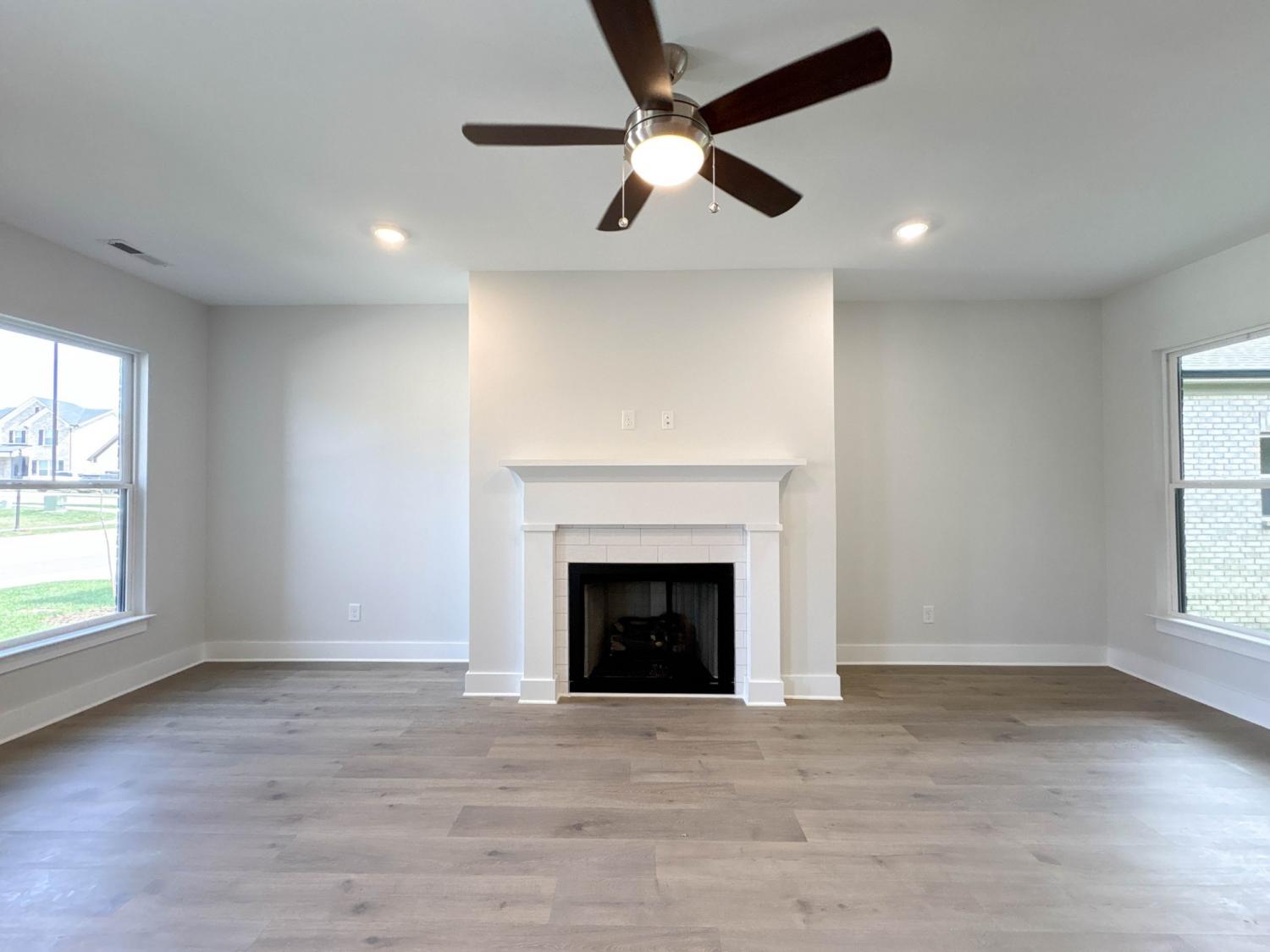 Buyer Incentives up to $11,500 ! Charming and versatile, this 3-bed, 2-bath, 1,967 sq ft all-brick home in The Paddock at Kennesaw Farms offers thoughtful design and upgraded finishes. The kitchen features quartz countertops, designer tile backsplash, upgraded cabinetry, and stainless appliances, opening to a dining area and spacious living room with a gas fireplace. Durable laminate flooring enhances the main level, while plush carpet adds comfort upstairs and tile accents each bath. The primary suite includes a soaking tub, tiled shower, and dual vanities, while two additional bedrooms and a rec room provide flexible living options. A rear-entry 2-car garage, neutral paint, and upgraded finishes complete the home. Residents of The Paddock enjoy neighborhood charm, green space, and a convenient location near Station Camp schools, shopping, and commuter routes. HOA includes lawn maintenance and sprinklers for low-maintenance living.