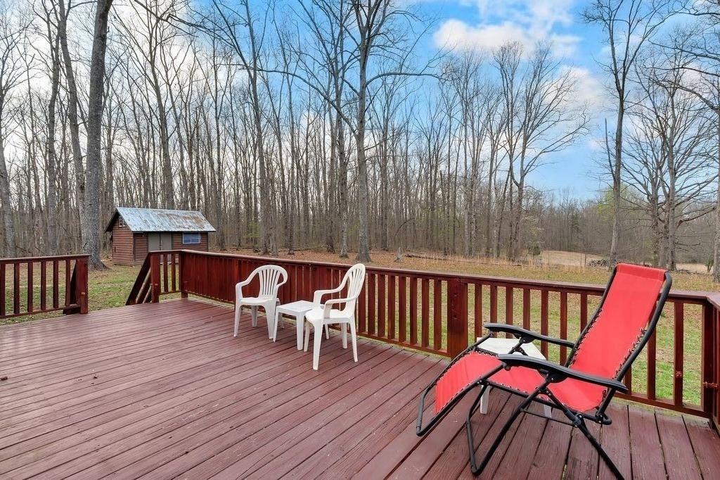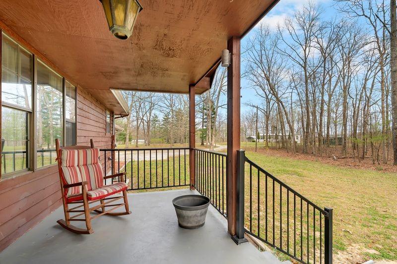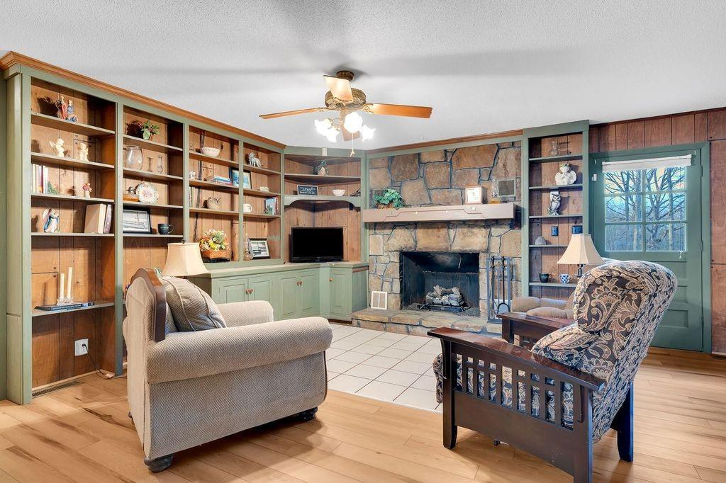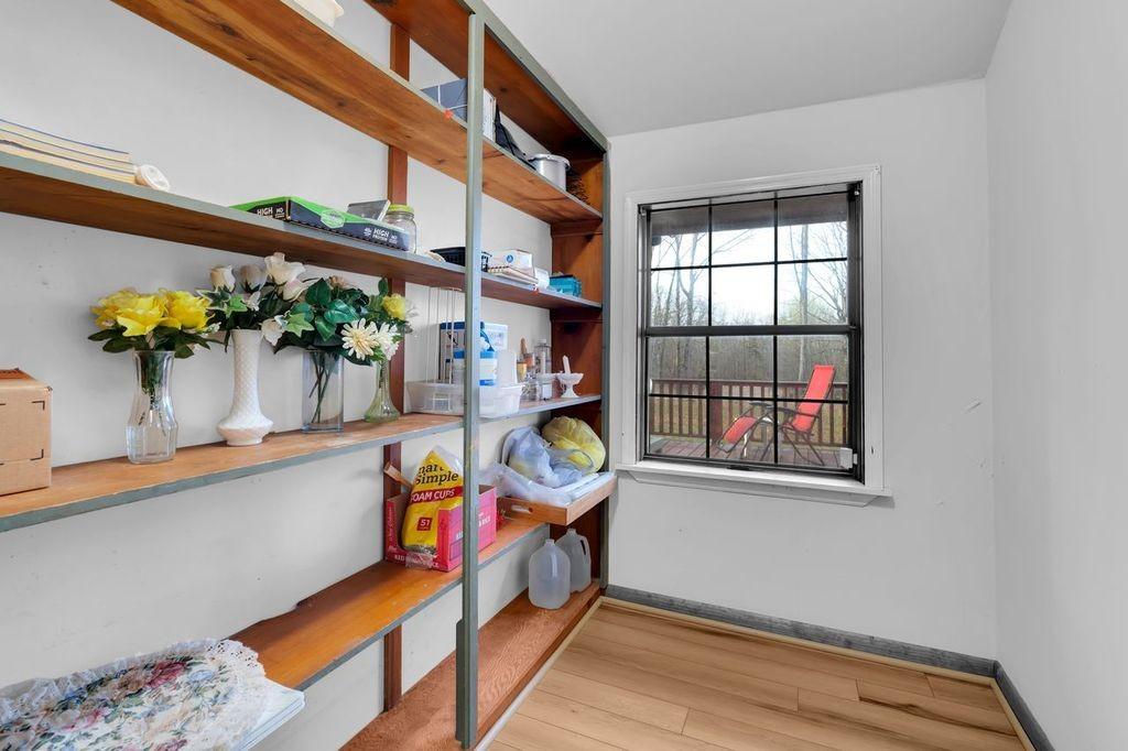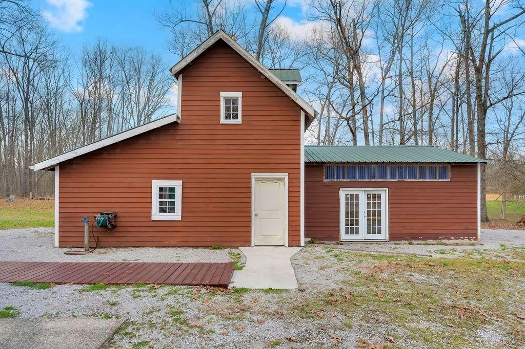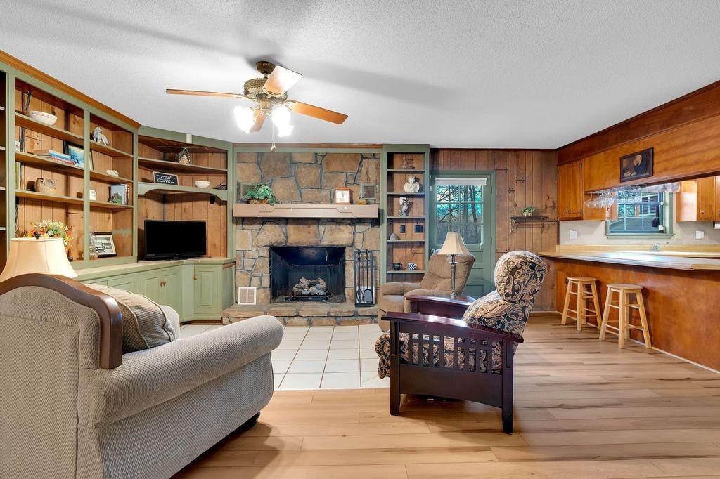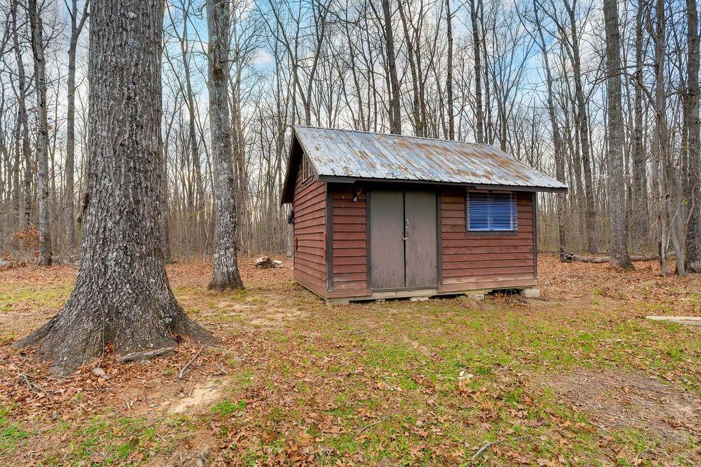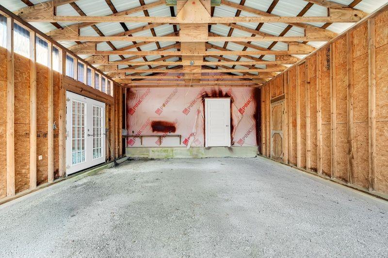 The home is set back from the road and this property has so many options for you! Plenty of sunny space for a garden and a huge workshop for all your projects! Home has an open floor place and a beautiful stone fireplace in the living room and tons of built in storage plus bookcases surround it. Large walk in pantry is just off the kitchen with a build in hutch and shelving, oversize laundry room and a mud room just off the double garage. Main bedroom has a big walk in closet and bath attached. There are 3 bedrooms and two baths plus front porch and a big rear deck. Home faces the side so you can enjoy your porch and deck looking into the woods. The workshop/barn has water and electricity plus separate storage areas for gardening and workshop things plus there is a large loft area as well. It also has another double garage attached to it, you have space for 4 plus cars and trucks to be covered and enclosed. There is also a small storage building on the property in the rear of the home.