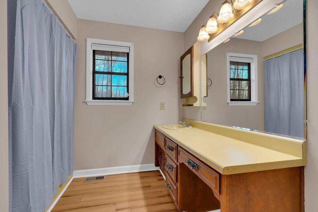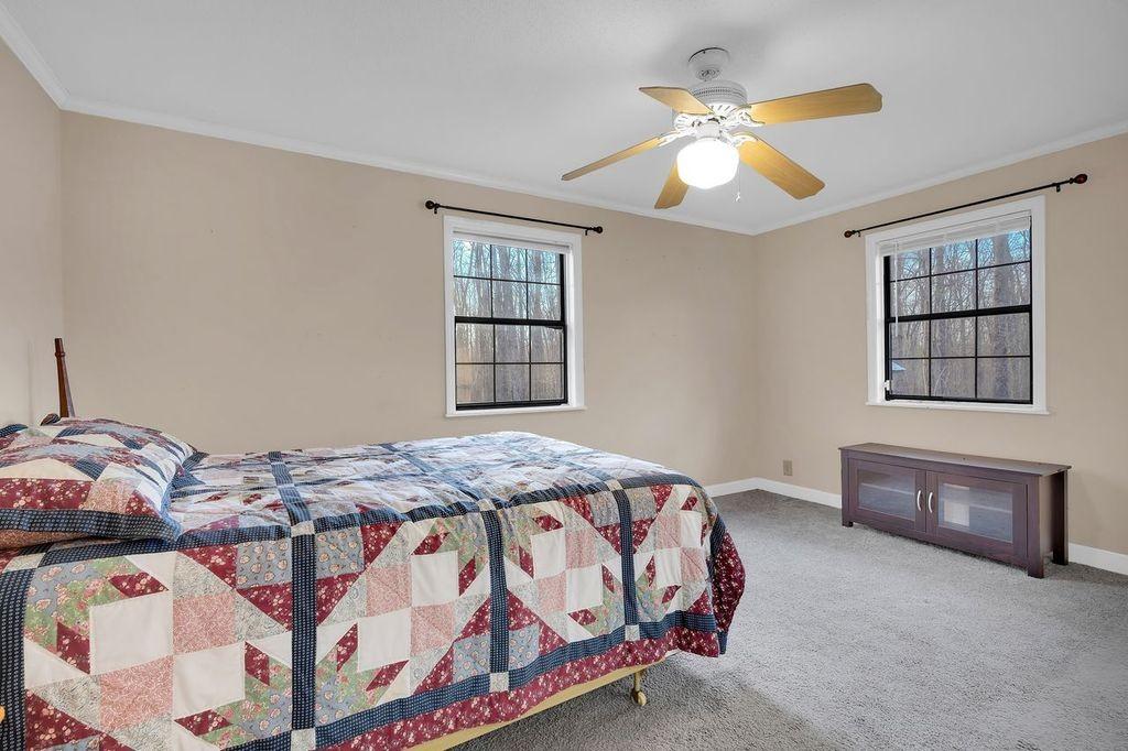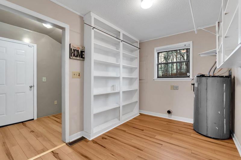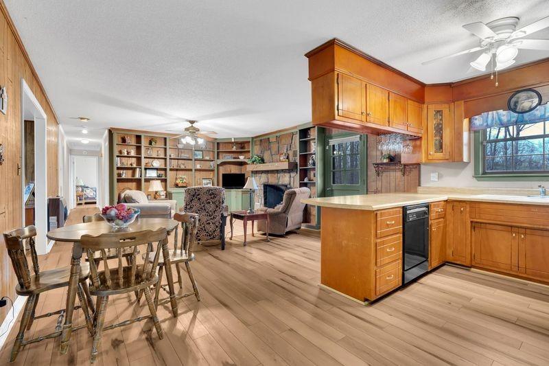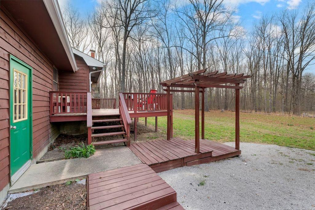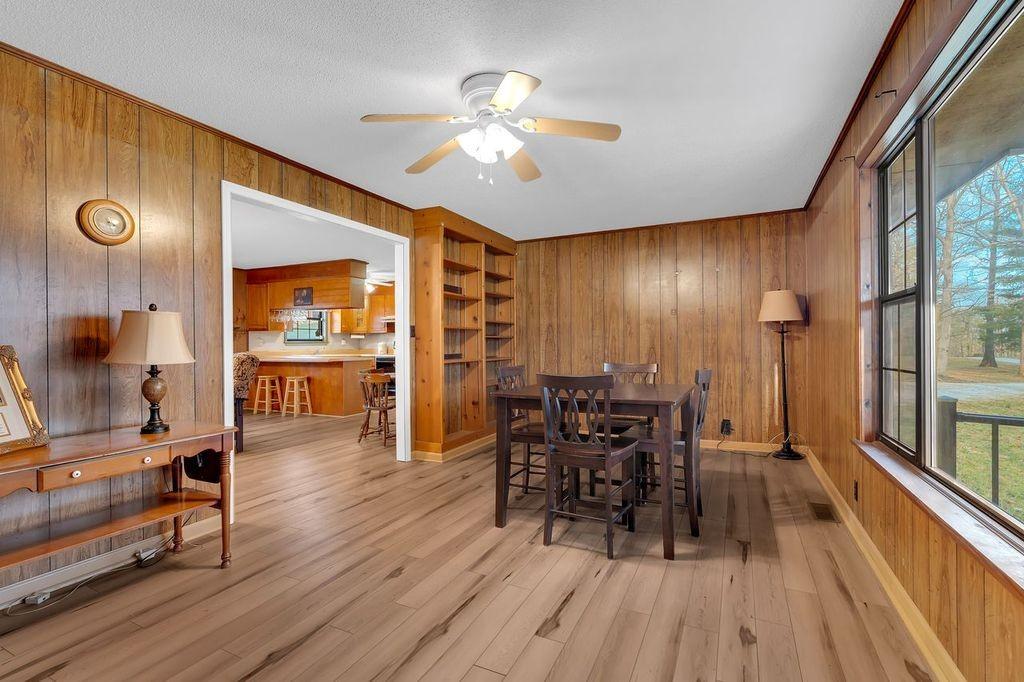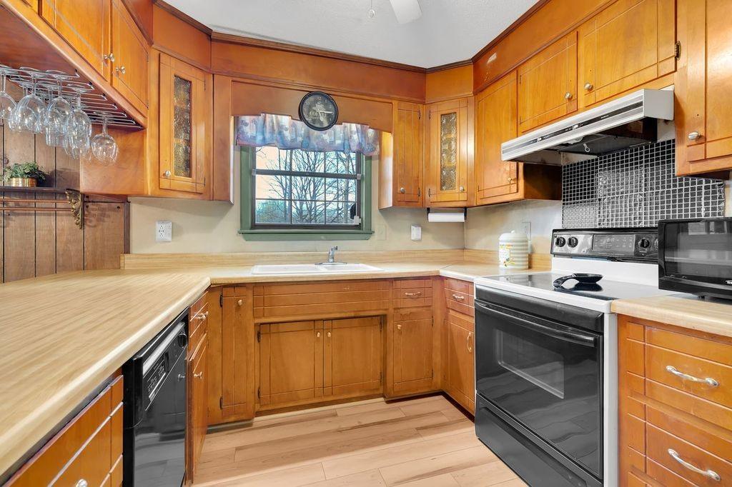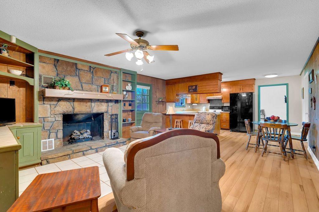 The home is set back from the road and this property has so many options for you! Plenty of sunny space for a garden and a huge workshop for all your projects! Home has an open floor place and a beautiful stone fireplace in the living room and tons of built in storage plus bookcases surround it. Large walk in pantry is just off the kitchen with a build in hutch and shelving, oversize laundry room and a mud room just off the double garage. Main bedroom has a big walk in closet and bath attached. There are 3 bedrooms and two baths plus front porch and a big rear deck. Home faces the side so you can enjoy your porch and deck looking into the woods. The workshop/barn has water and electricity plus separate storage areas for gardening and workshop things plus there is a large loft area as well. It also has another double garage attached to it, you have space for 4 plus cars and trucks to be covered and enclosed. There is also a small storage building on the property in the rear of the home.