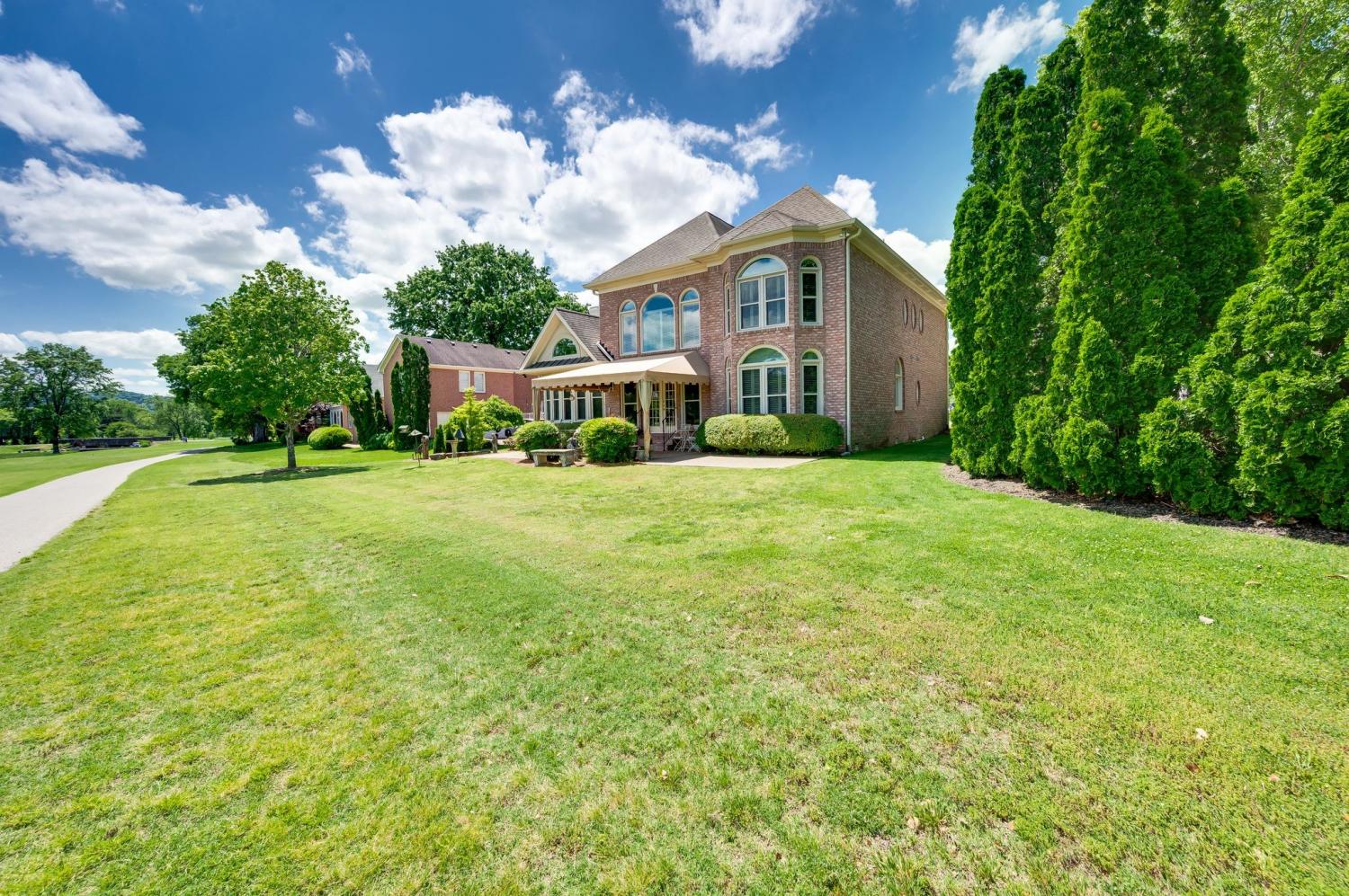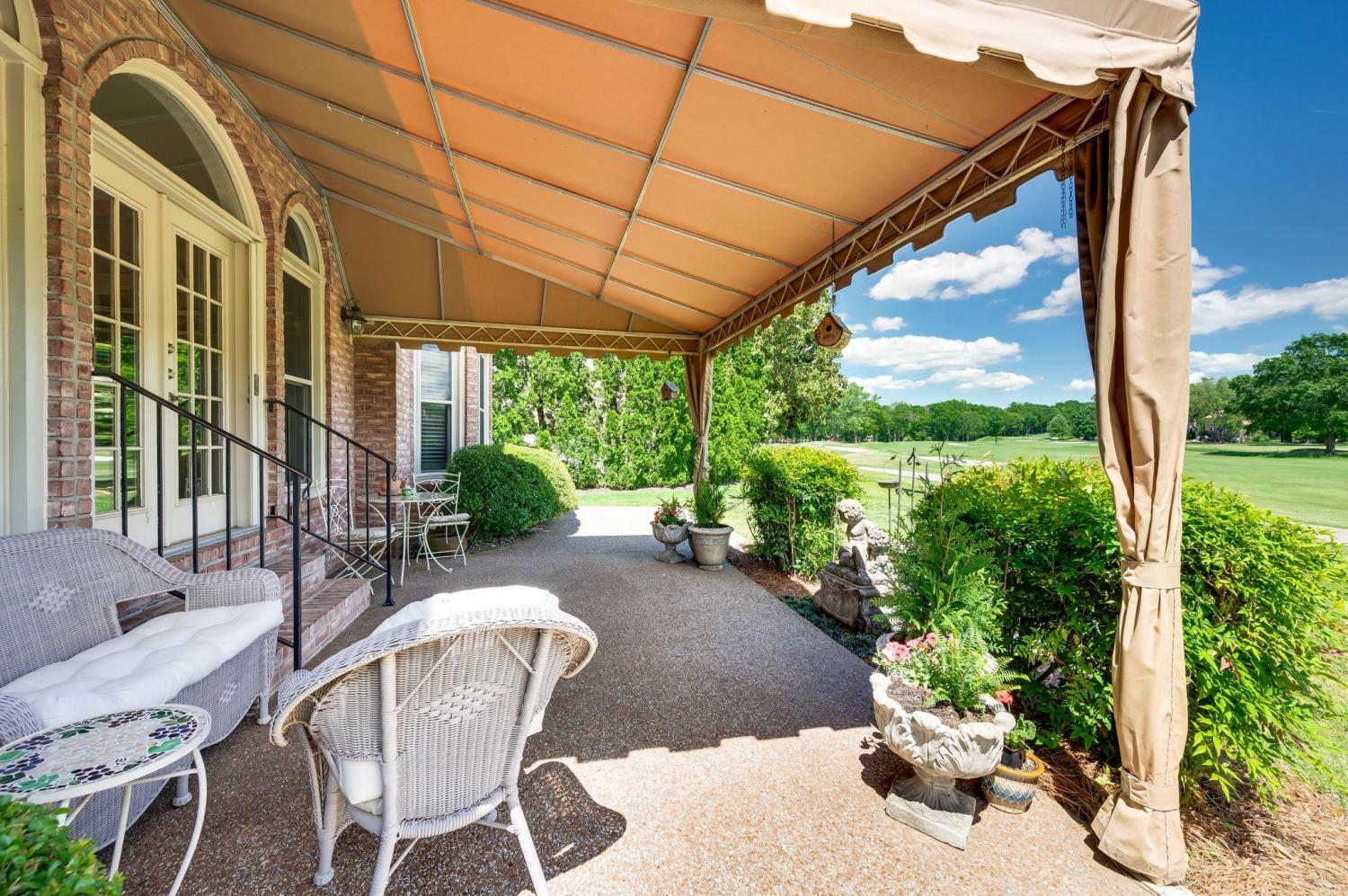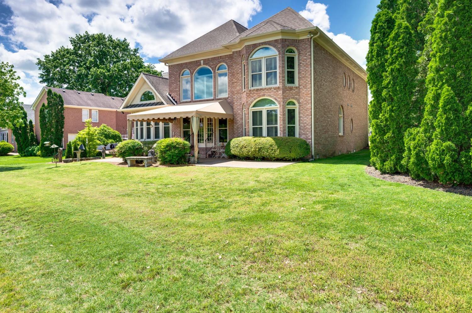 Prime location meets timeless elegance in this all-brick sanctuary, perfectly positioned on a highly sought-after cul-de-sac lot overlooking the 3rd and 8th fairways of Brentwood Country Club. Enjoy breathtaking golf course views and serene living at its finest. This beautifully maintained 4-bedroom, 5-bathroom home offers a thoughtfully designed floor plan that blends comfort, functionality, and classic charm. The oversized kitchen features a spacious eat-in area and is equipped with premium appliances, including a Sub-Zero refrigerator, Viking gas cooktop, custom drawer microwave, and double ovens—ideal for both everyday living and entertaining. The home boasts hardwood flooring throughout both levels, fresh interior paint, and abundant natural light. Each bedroom includes a private en-suite bath and walk-in closet, with custom built-ins featured in three of the bathrooms for added convenience and storage. The primary suite is a true retreat, complete with a custom California Closet system and new windows. Additional upgrades include a tankless water heater, plantation shutters throughout, and a fully renovated garage featuring vented air, custom built-in cabinetry, plantation shutters , and professionally installed epoxy flooring system. Designed for both formal and casual living, the home includes a formal living room and dining room, a spacious great room with a fireplace on the main level, and a large bonus room upstairs with a second fireplace. A dedicated flex space is perfect for a home office. The impressive two-story foyer and family room create a grand entrance, while the newly added patio awning enhances outdoor living and entertaining. This exceptional property offers unmatched quality, space, and views—truly a rare opportunity in one of Brentwood’s most desirable locations.
